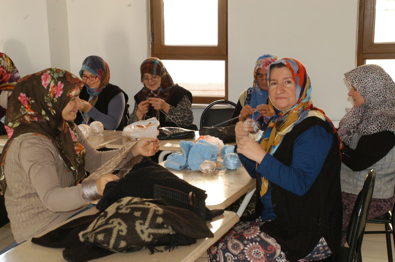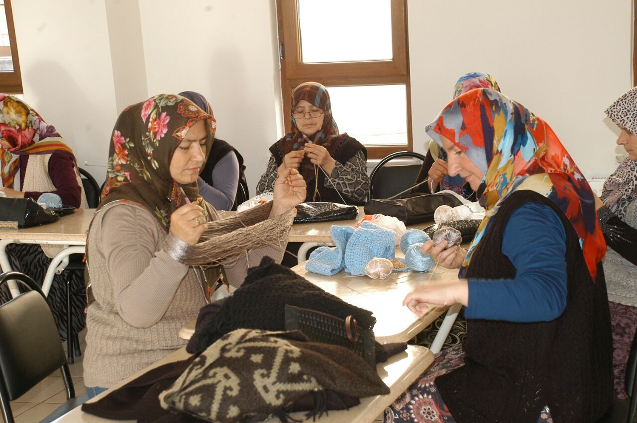 - ‘Bursa İpeği Yeniden Hayat Bulacak’ projesiyle Keles’te hayata geçirilen ‘İpek Triko Üretim ve Tasarım Atölyesi’ne gelen kadınlar, yerli üretim ipek iplerle örgü örüyor.