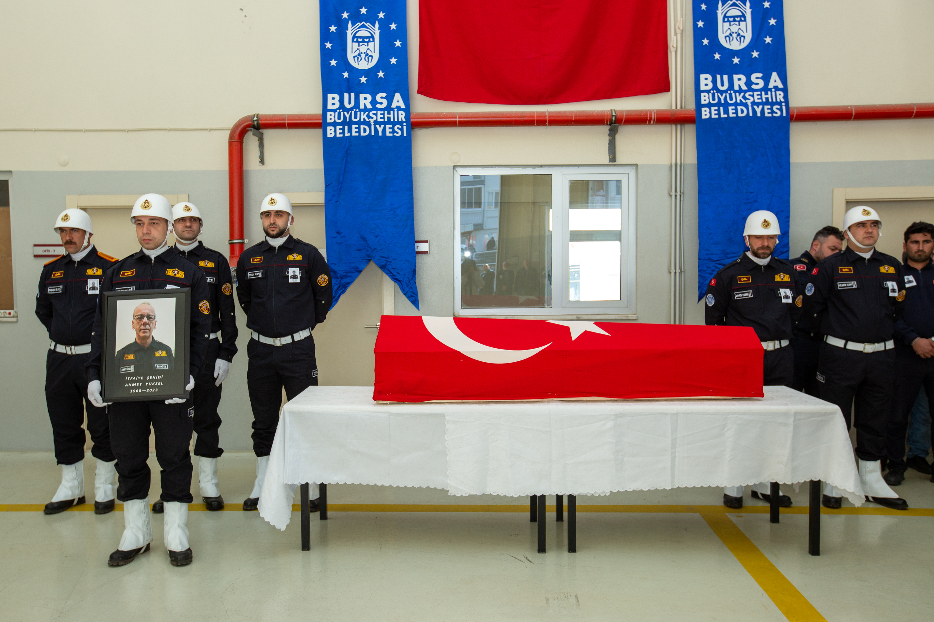 BURSA – Bursa Büyükşehir Belediyesi itfaiyesinde 26 yıldır görev yapan ve göreve giderken kalp krizi geçirmesi sonucu hayatını kaybeden Ahmet Yüksel, son yolculuğuna uğurlandı.