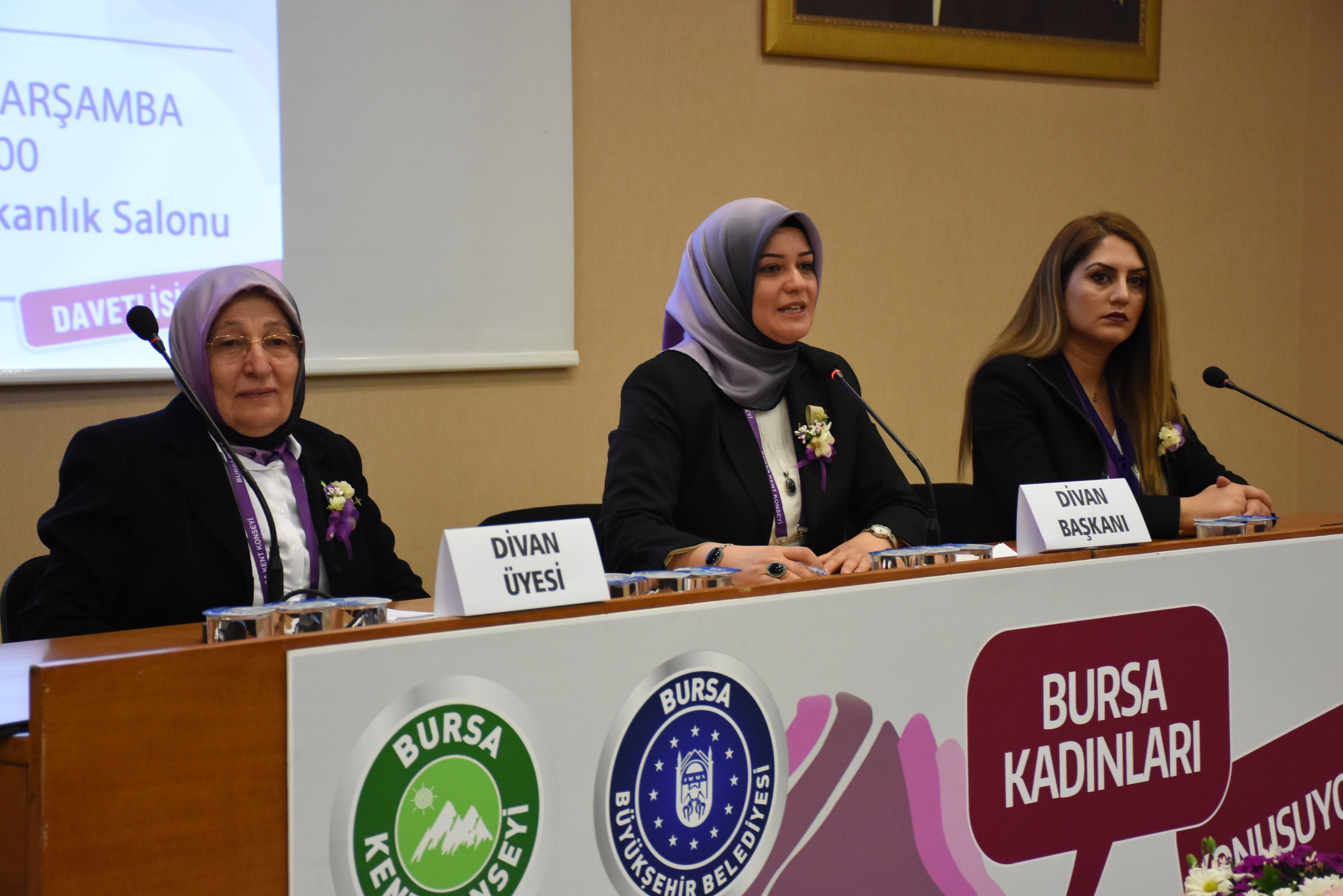 Divan Başkanlığı’nı Bursa Kent Konseyi Kadın Meclisi Başkanı Mihrimah Kocabıyık, divan üyeliklerini Bursa Kent Konseyi Kadın Meclisi Başkan Yardımcıları Mecbure Altun ve Sevil Gökşel Şen’in yürüttüğü programın ikinci bölümde ise, katılımcılara tek tek söz verildi.