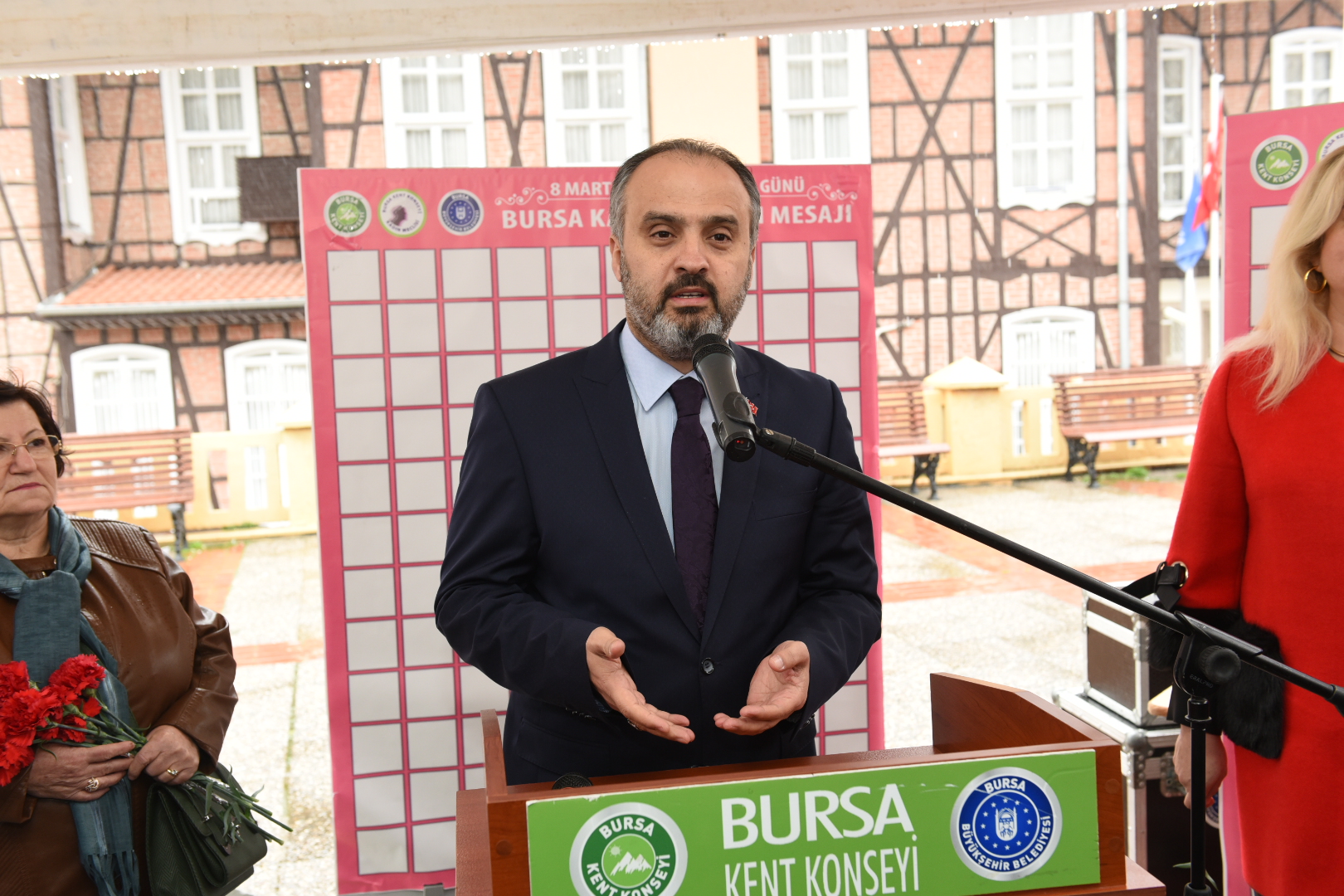 Başkan Alinur Aktaş, Bursa Kent Konseyi Kadın Meclisi tarafından ‘8 Mart Dünya Kadınlar Günü’ etkinlikleri kapsamında düzenlenen ‘Bursa Kadınlarının Mesajı Var’ konulu programda kadınların dileklerine tercüman oldu. Aktaş, Heykel’de Ressam Şefik Bursalı Sanat Galerisi üzerindeki alanda bulunan panoya, “Kadın anadır, kadın eştir. Kadın, hayatın en önemli unsurudur. Erkeğin varlık nedenidir. İyi ki varsınız. Tüm kadınlarımızın 8 Mart Dünya Kadınlar Günü kutlu olsun” cümlelerini yazdı.