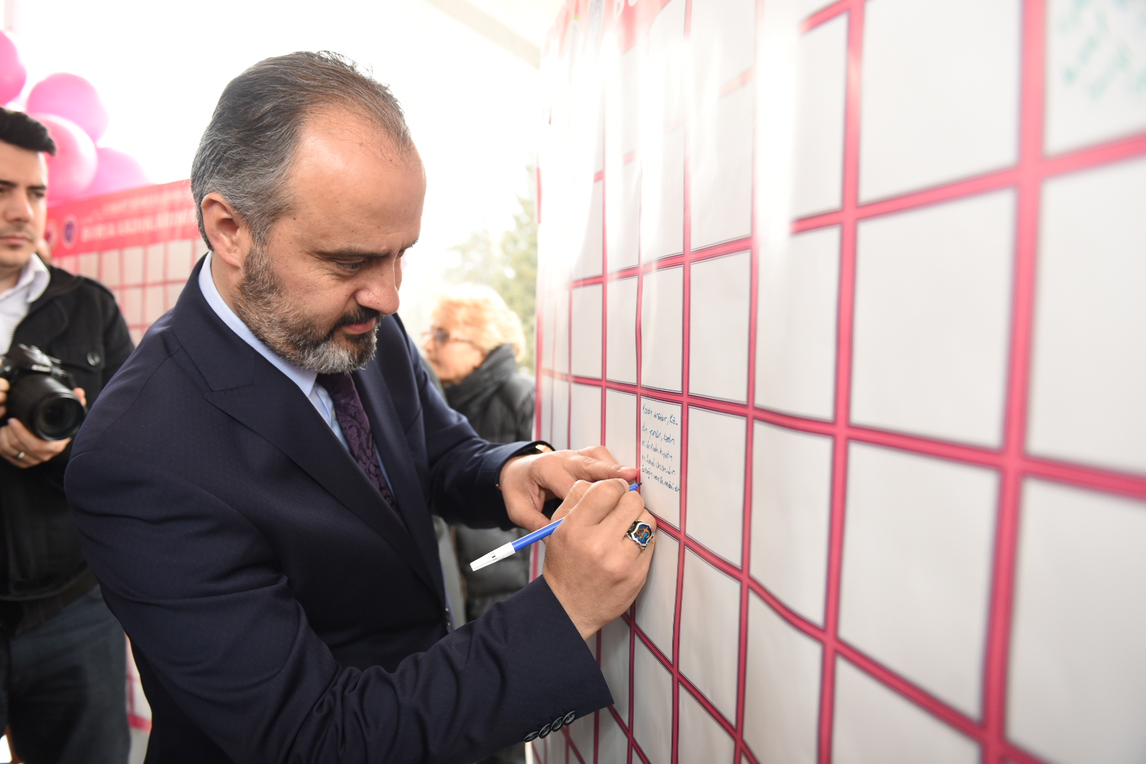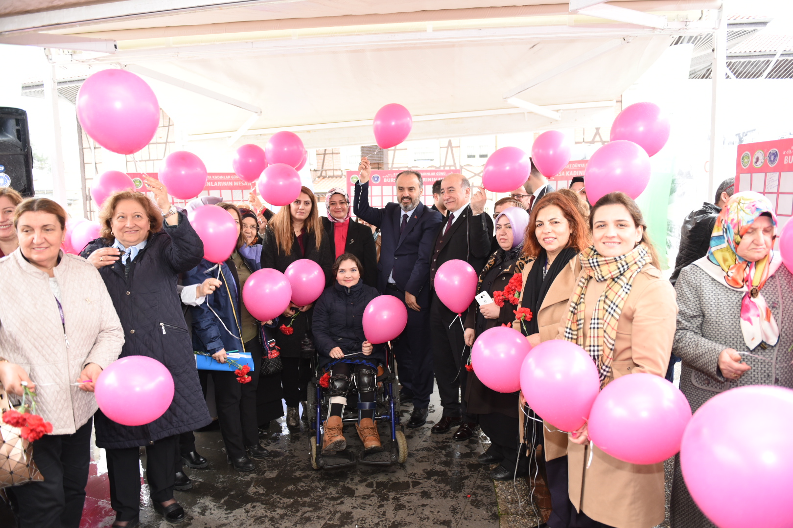 Bursa Kent Konseyi Kadın Meclisi Başkanı Mihrimah Kocabıyık ise kadınların özverili yaşamalarına rağmen dünyanın her yerinde şiddete ve ayrımcılığa uğradığına, siyasette, ekonomide, eğitimde hak ettiği konuma gelemediğine değindi. Kocabıyık, kadınların sosyal, siyasal ve ekonomik yaşamda daha iyi temsil edebilmeleri gerektiğini de belirtti. Panoya beklentilerin, umutların ve düşüncelerin yazıldığı etkinlikte Başkan Aktaş ve programa katılan kadınlar gökyüzüne pembe balon bıraktı.