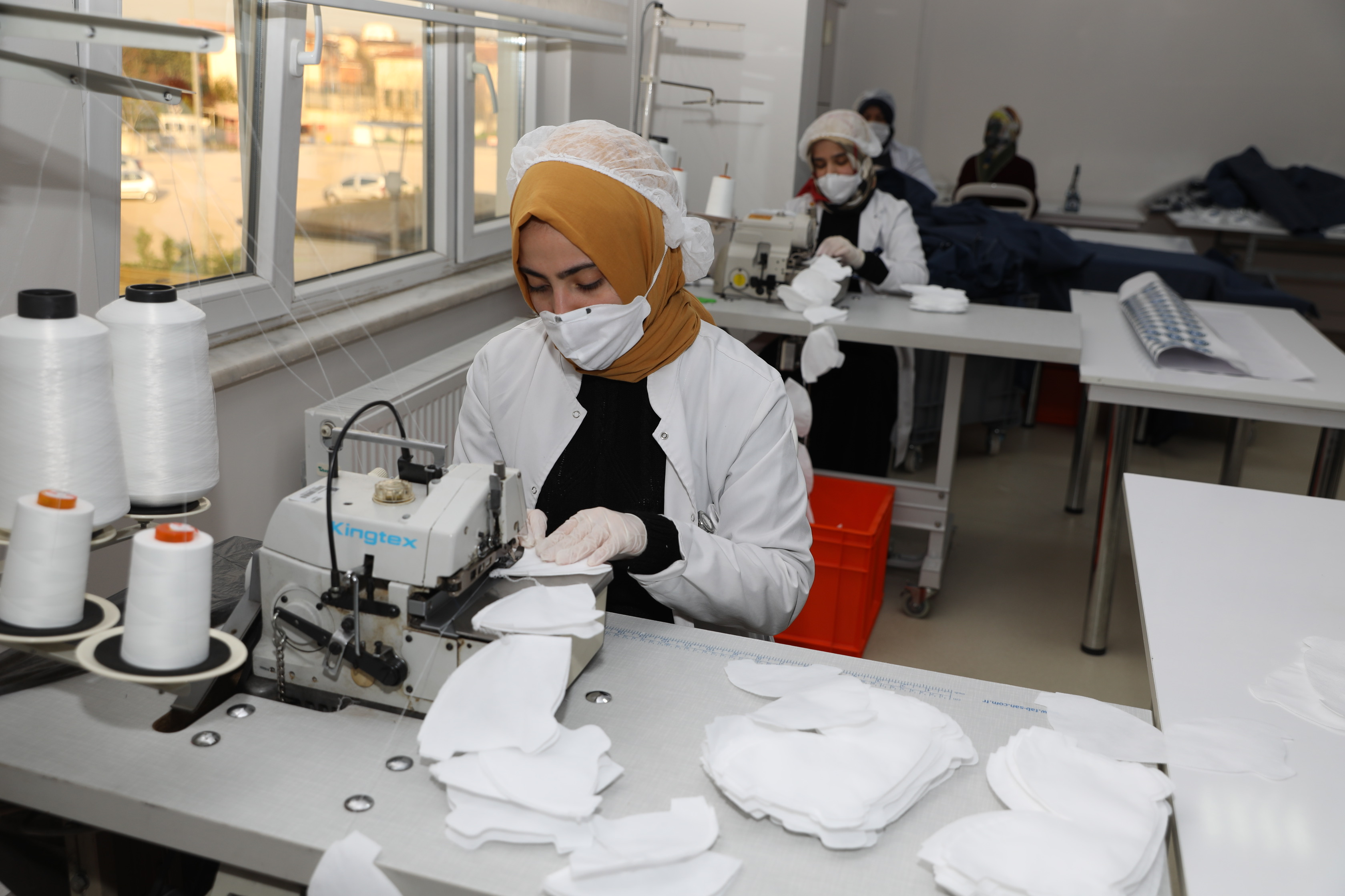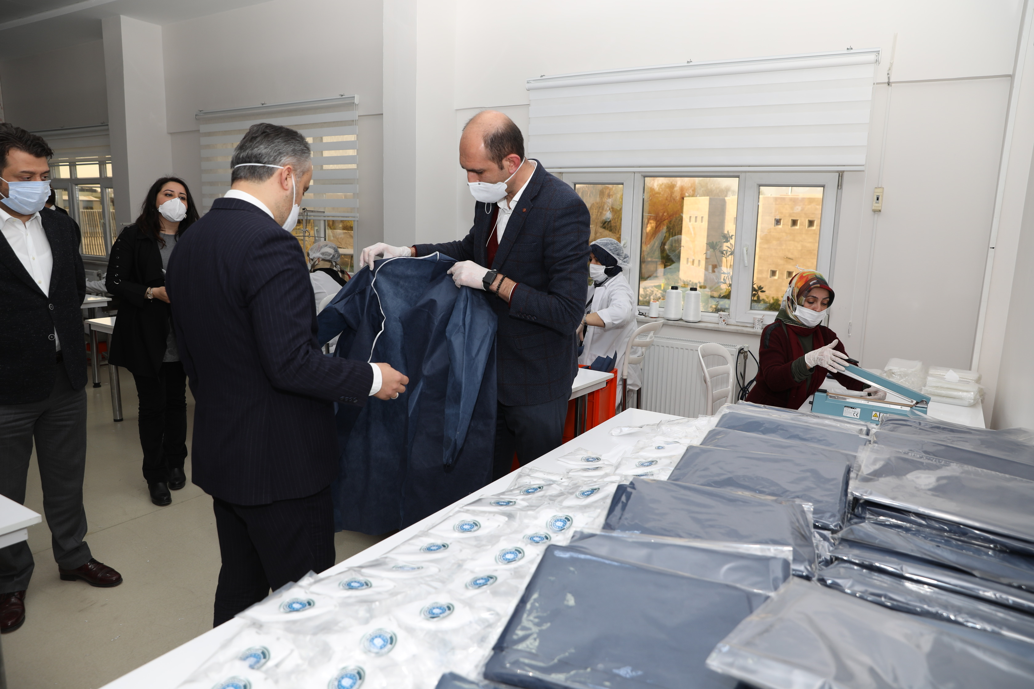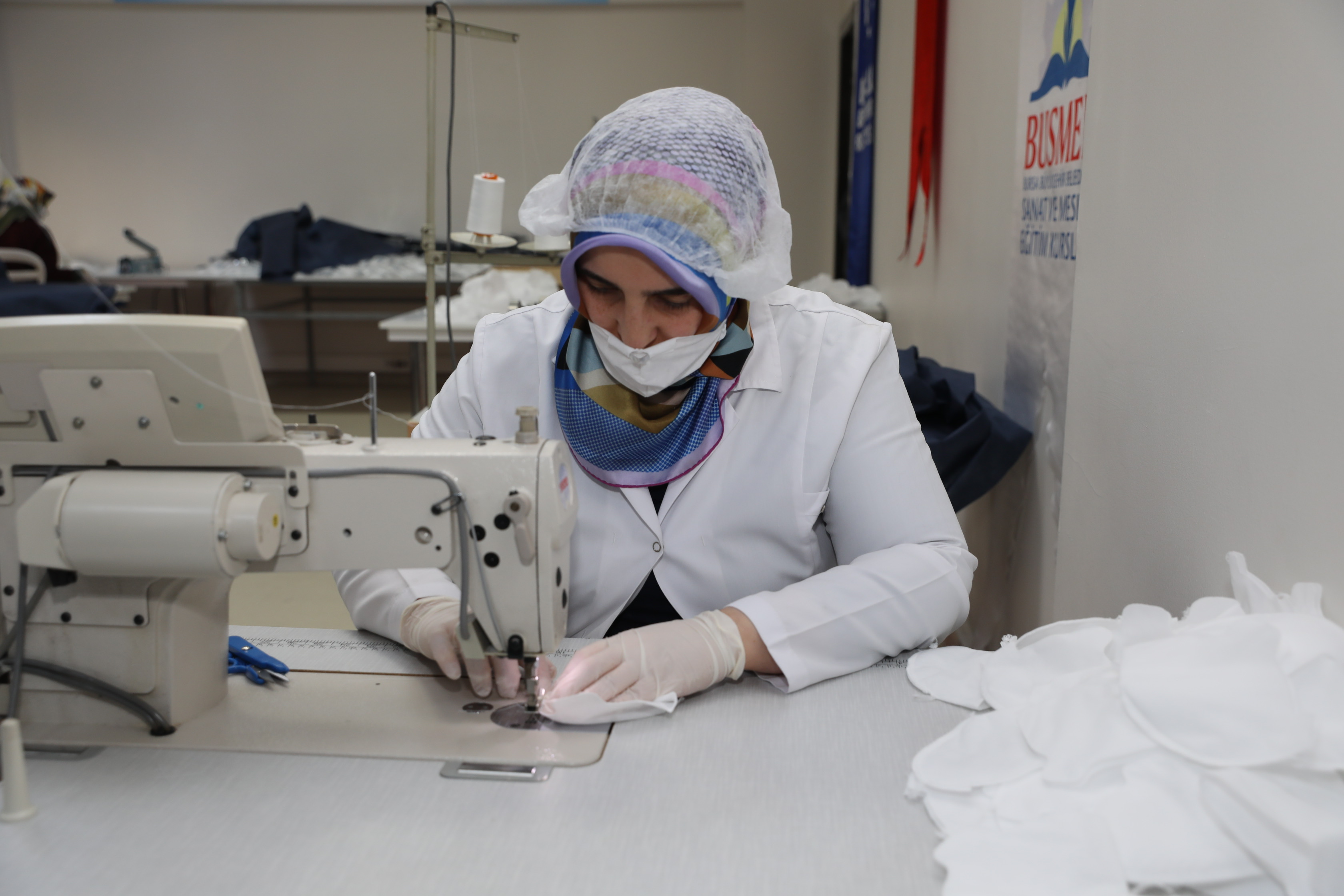 BUSMEK koordinasyonunda planlanan Büyükşehir Belediyesi Önlük ve Maske Üretim Atölyesi, faaliyetine başladı. Büyükşehir Belediye Başkanı Alinur Aktaş, Atıcılar Mahallesi’ndeki Büyükşehir Belediyesi Evde Bakım ve Ambulansla Nakil Hizmet Binası’nın ikinci katında oluşturulan tesisi gezdi. Genel Sekreter Ulaş Akhan’ın da eşlik ettiği ziyarette, BUSMEK Genel Koordinatörü Eyüp Arda’dan atölyenin işleyişi hakkında bilgiler alan Başkan Aktaş, çift vardiyada 26 kişinin görev yaptığı tesiste banttan çıkan ürünleri de inceledi.