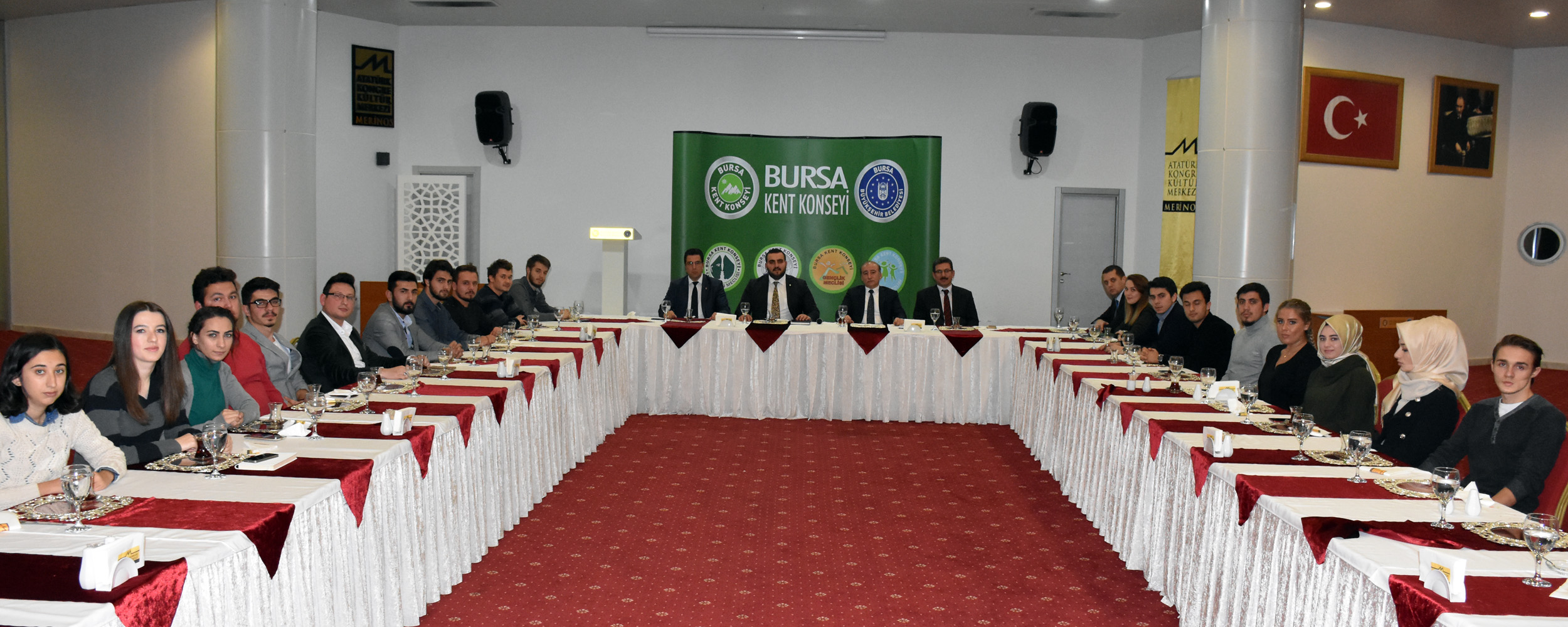 Bursa Kent Konseyi Gençlik Meclisi yeni dönem ilk yürütme kurulu toplantısı düzenlendi. Merinos AKKM Muradiye Salonu’nda yapılan toplantıya, Bursa Kent Konseyi Başkanı Hasan Çepni’de katılarak gençlerle buluştu. Bursa Kent Konseyi Başkan Yardımcısı Lütfi Taşçı, Yerel Gündem Şube Müdürü Mahmut Turunç ve Bursa Kent Konseyi Genel Sekreteri Murat Başları’n da katıldığı toplantıda Başkan Hasan Çepni, yeni yürütme kurulunda görev alan gençleri tebrik etti. Bursa Kent Konseyi’nde ve Gençlik Meclisi’nde gönüllü olmanın önemli bir şans ve fırsat olduğunu niteleyen Çepni, Bursa Kent Konseyi’nin yılda 2 binin üzerinde etkinlik yapan Türkiye’nin en güçlü ve en aktif kent konseyi olduğunu söyledi. Çepni, “Bursa Kent Konseyi seçilmiş başkan ve yürütme kurulu, yasada belirlenen kriterlerdeki kurumsal katılımcıları, 4 meclis, 30 çalışma grubu ve yüzlerce gönüllüsü ile Türkiye’nin en büyük kent konseyi konumda. Sizler böyle bir kurumun Gençlik Meclisi’nde görev alıyorsunuz. Gençlik Meclisi’nde çıtayı daha yükseklere taşıyacaksınız. Bizler her zaman sizlerin yanınızda olacağız” dedi.