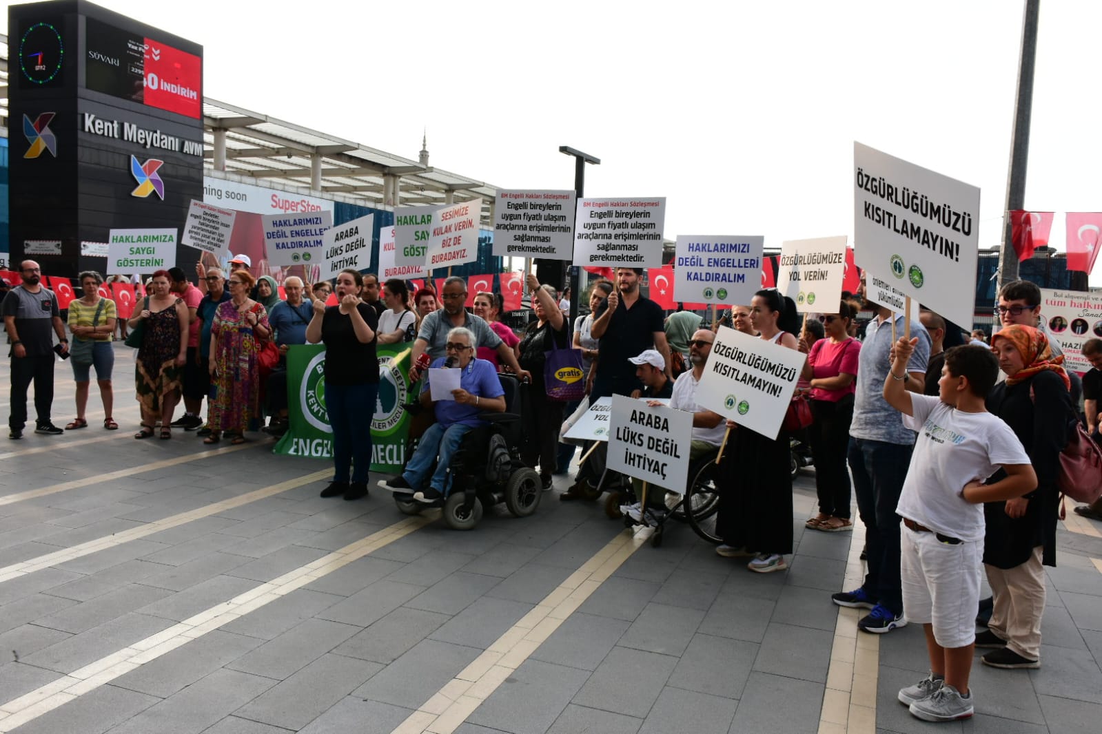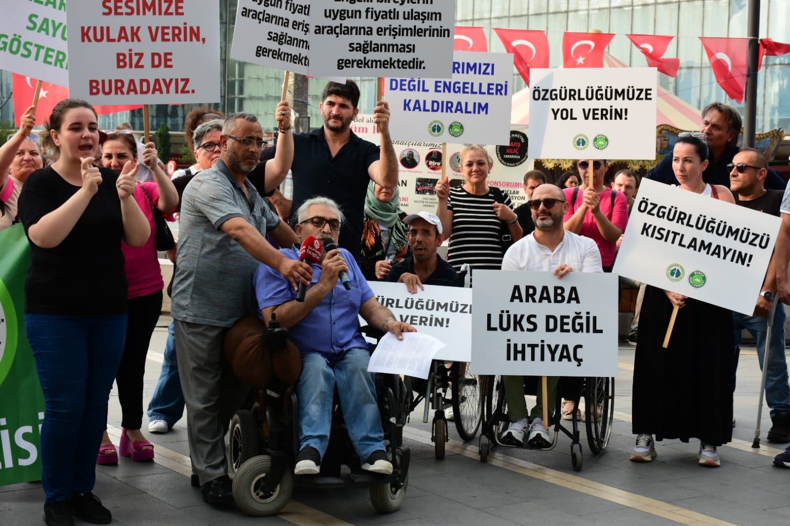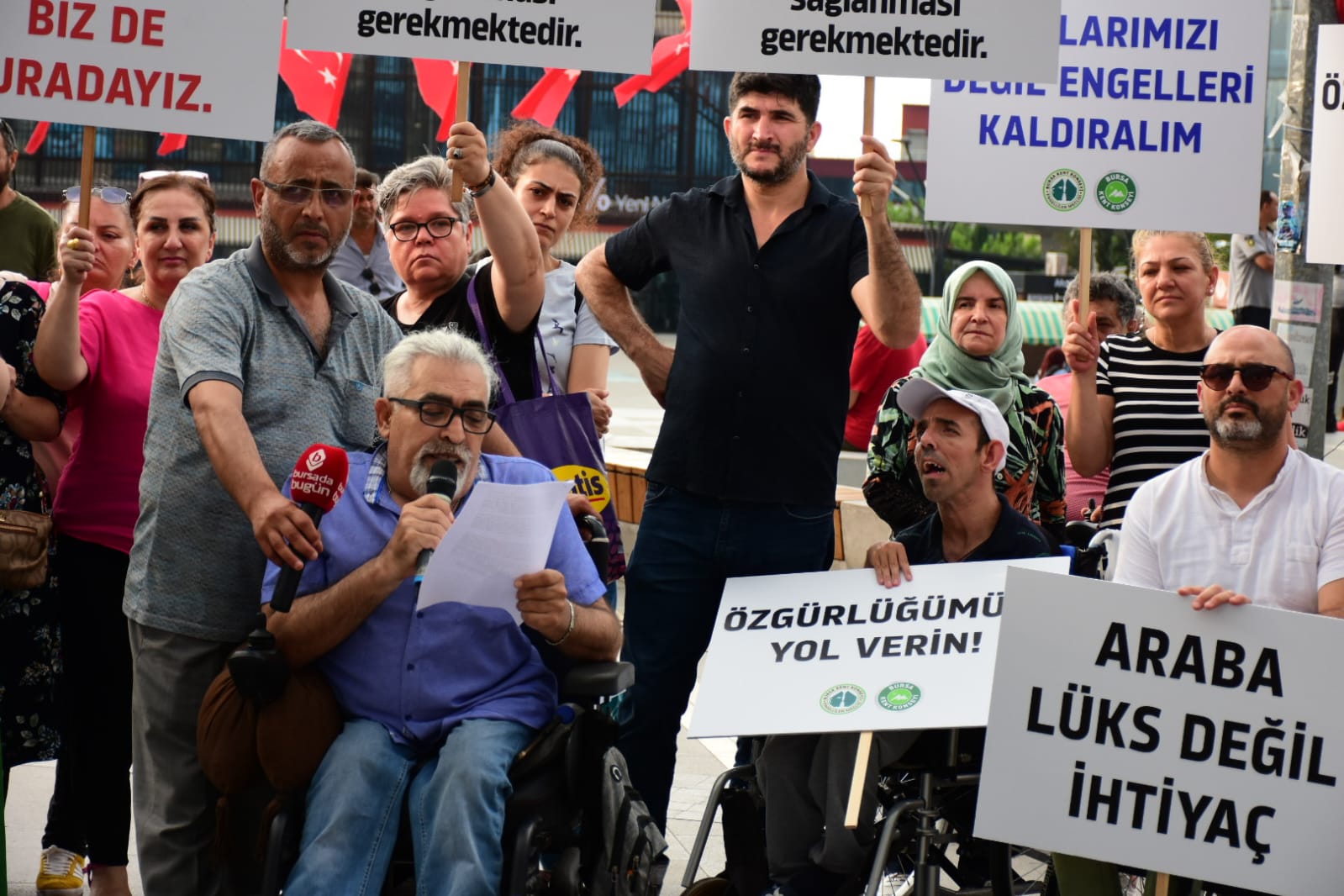 BURSA - Bursa Kent Konseyi Engelliler Meclisi, engelli bireyler için uygulanan Özel Tüketim Vergisi (ÖTV) muafiyetinin kaldırılacağı iddialarına ilişkin seslerini duyurmak ve anayasal haklarına sahip çıkmak için Kent Meydanı’nda basın açıklaması düzenledi.