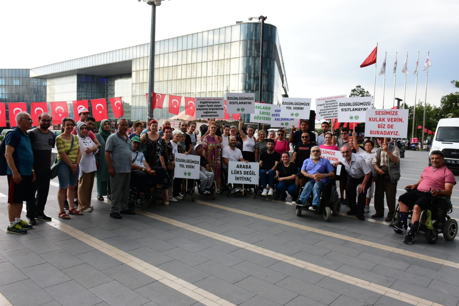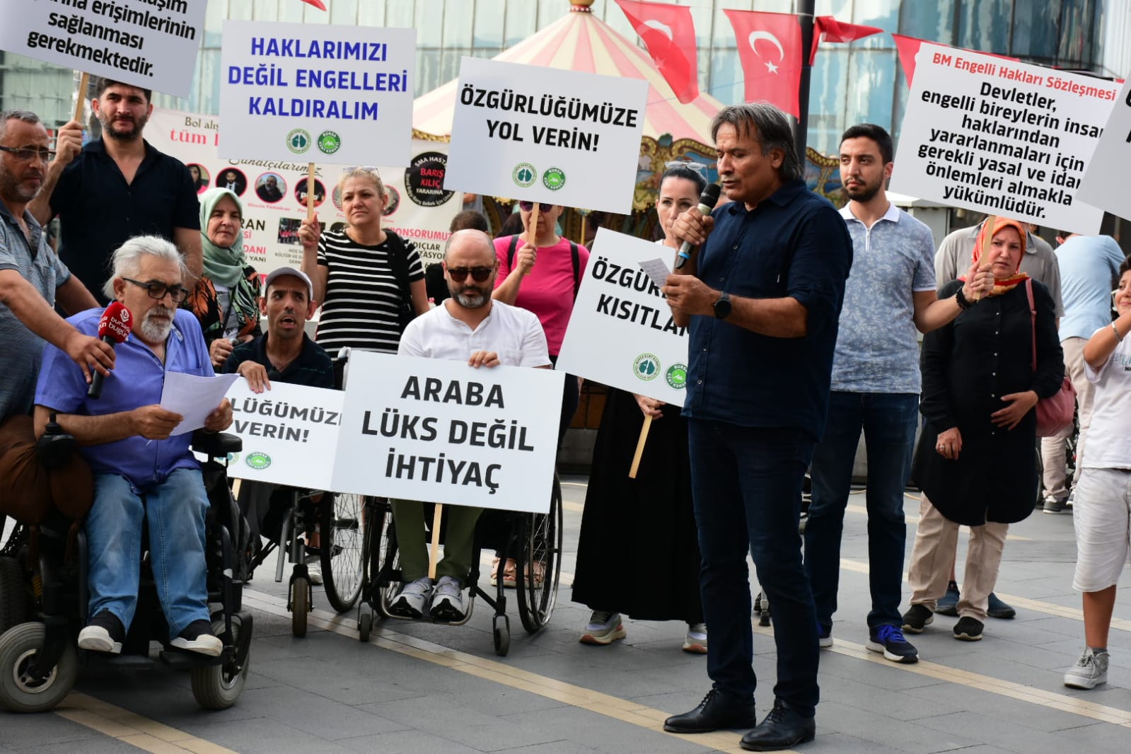 Kent Meydanı’ndan düzenlenen basın açıklamasında Engelliler Meclisi adına konuşan Ayhan Zenbilci, Maliye Bakanlığı’nın üzerinde çalıştığı vergi reformu paket taslağında ‘yoksul olduğunu belgeleyen’ engelli bireylerin Aile ve Sosyal Hizmetler Bakanlığı’na ‘araç alım desteği’ için başvuru yapabileceği ancak destekten faydalanacak olan bireylerin, engelli kaynaklı sosyal yardım desteklerinin kesileceği iddialarını hatırlattı. Kamuoyuna yansıyan bilgilerde iki ihtimal üzerinde durulduğunu belirten Zenbilci, “İlk ihtimal, istisnadan yararlanma süresinin 5 yıldan 10 yıla çıkarılması, taşıtların veraset yoluyla devredilmesiyle ilgili vergilerin mirasçılar tarafından ödenmesi ve her yıl yeniden değerleme oranında yükselen tutarın, bu oranın yarısı kadar arttırılması ihtimali. İkinci ihtimal de ÖTV Kanunu’ndaki istisnanın kaldırılması, teşvikin sosyal yardım şeklinde yapılması, engellilere getirilecek gelir şartı sunma zorunluluğu, satın alınacak taşıtların yerli olması ve bu esaslara bağlı olarak ilgili bakanlık tarafından araç alımında nakit desteği verileceği ihtimalidir” ifadelerini kullandı.