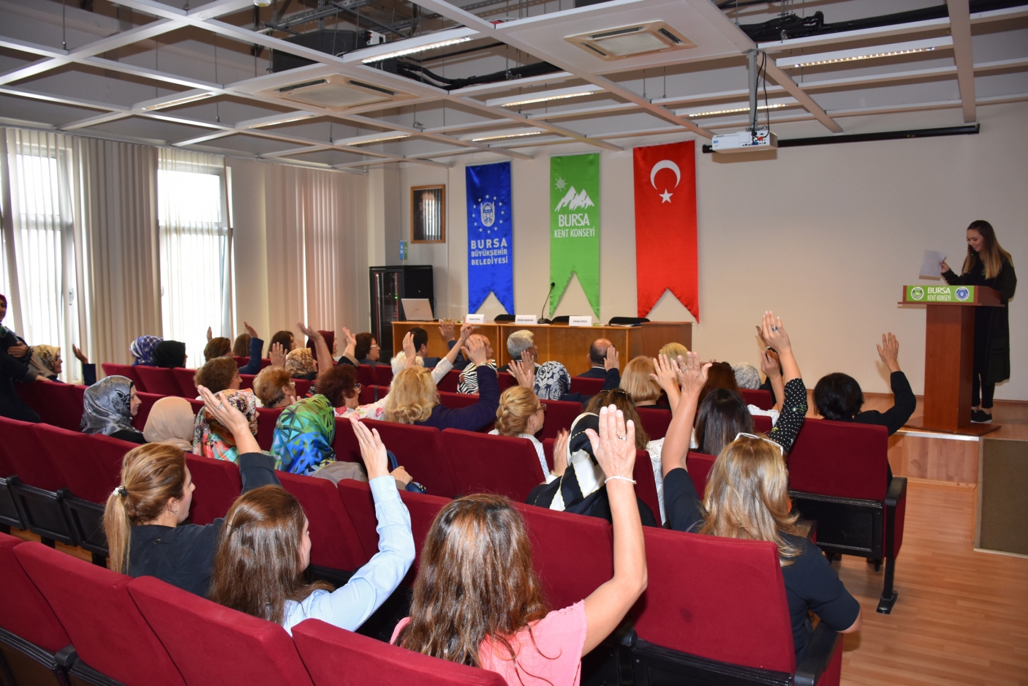 Bursa Kent Konseyi Koza Salonu’nda yapılan olağan genel kurula Bursa Kent Konseyi yürütme kurulu üyeleri, kadın mahalle muhtarları, kadın sivil toplum kuruluşlarının temsilcileri ve Kadın Meclisi üyeleri katıldı. Saygı duruşu ve İstiklal Marşı’nın okunmasıyla başlayan genel kurulda, Divan Başkanlığı’na Bursa Kent Konseyi Başkanı Hasan Çepni, Divan üyeliklerine ise Yerel Gündem Şube Müdürü Mahmut Turunç ve Bursa Kent Konseyi Genel Sekreteri Murat Başlar seçildi.