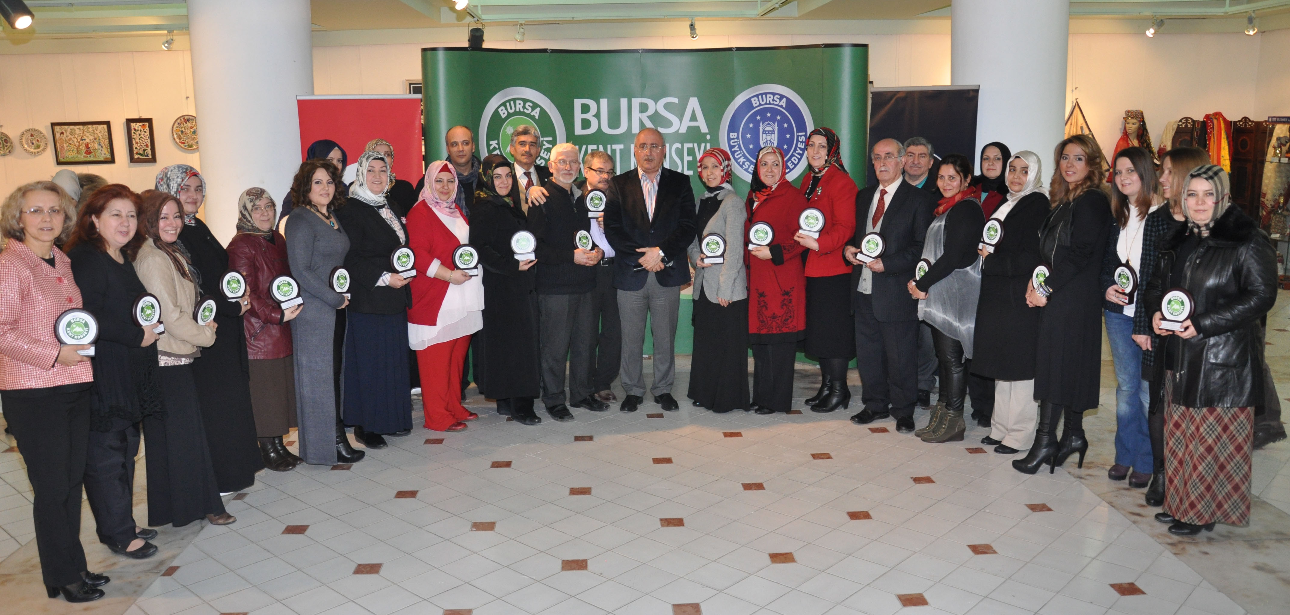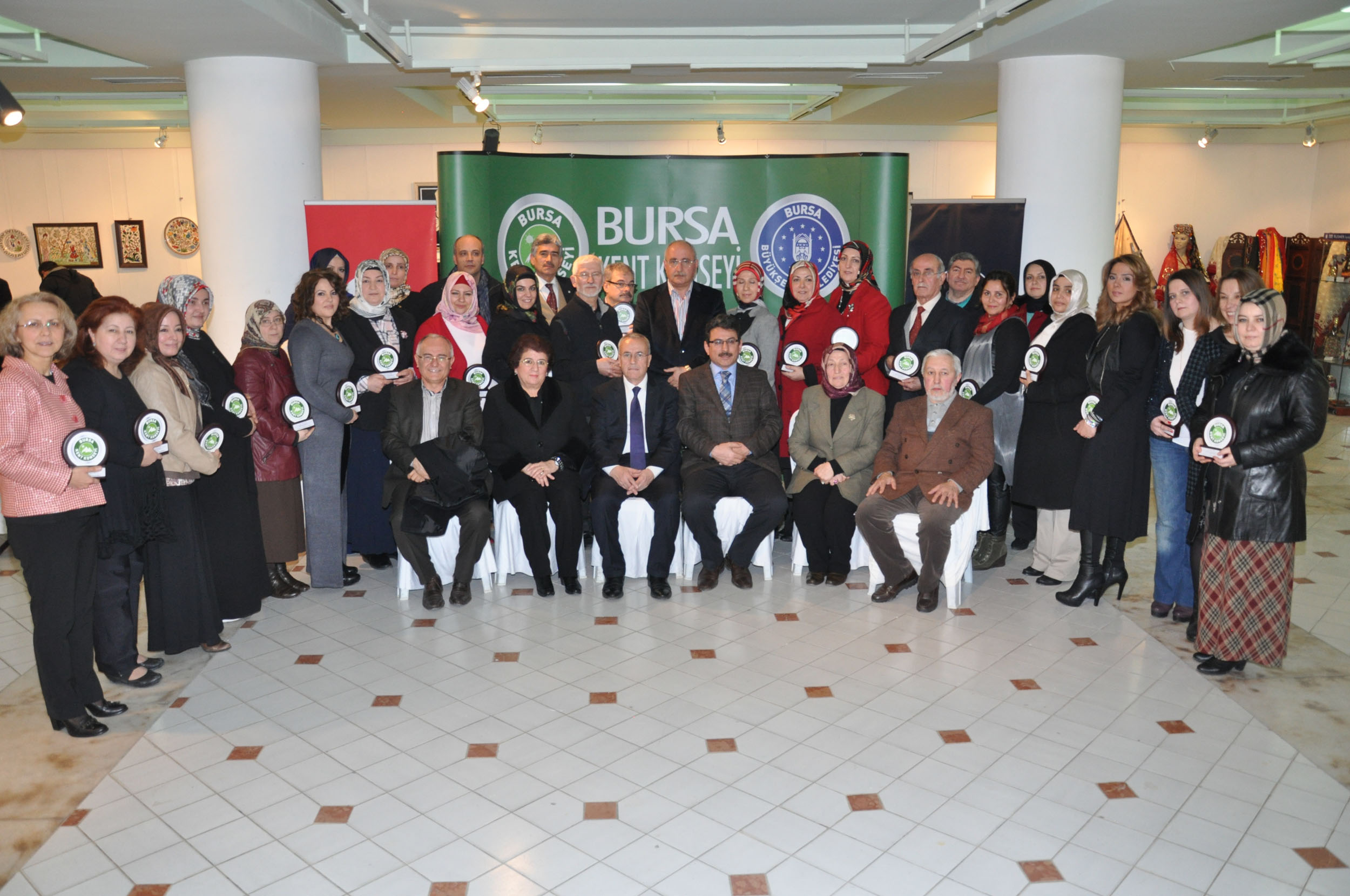 BURSA - Bursa Kent Konseyi (BKK) Kültür Sanat Çalışma Grubu tarafından bu sene ikincisi yapılan ´BKK Kültür Sanat Haftası´ programı, bir hafta süren geleneksel sanata dair sergi, atölye çalışmaları ve söyleşilerin ardından görkemli bir törenle sona erdi.