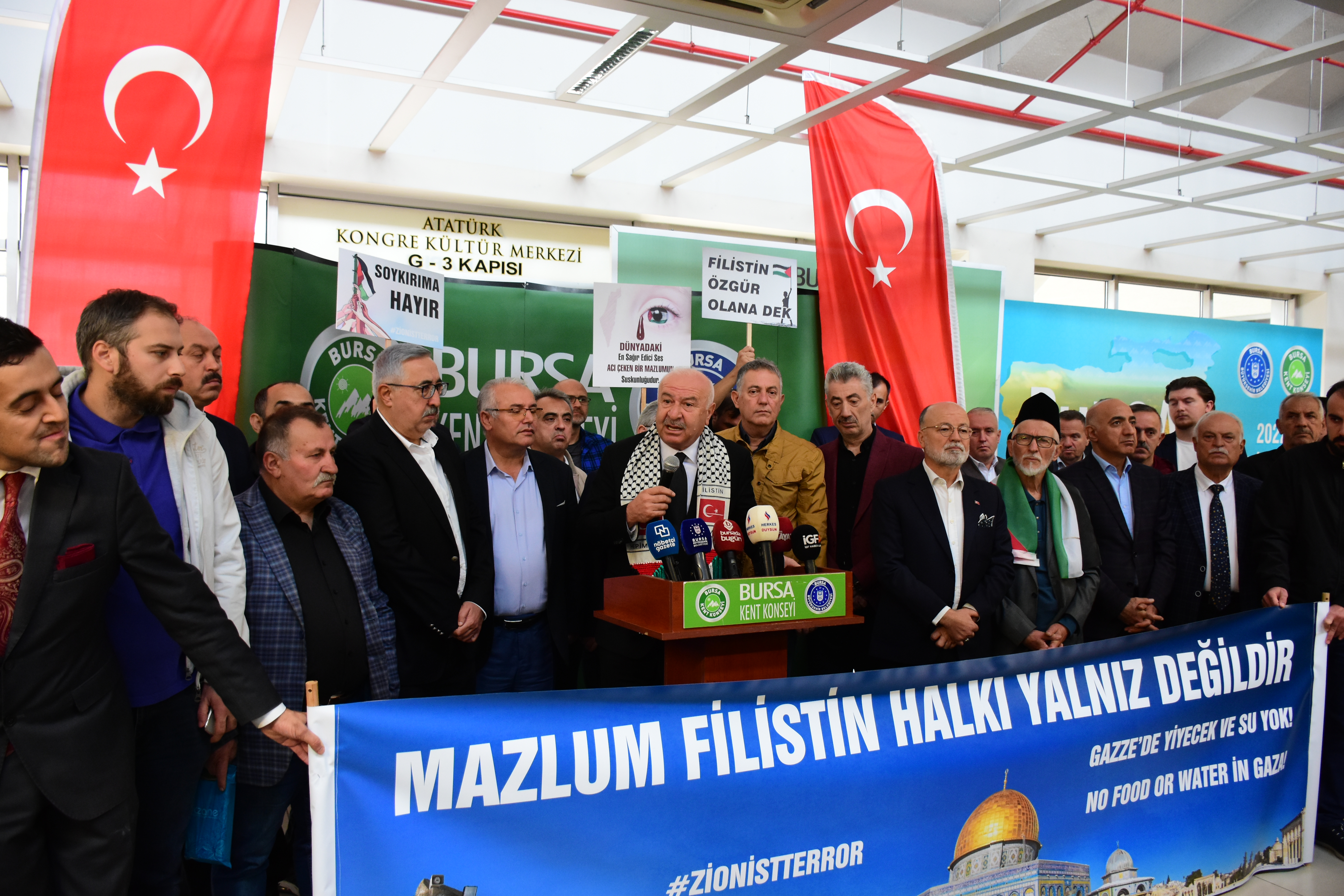 BURSA – Bursa Kent Konseyi Başkanı Şevket Orhan, düzenlediği basın toplantısı ise Filistin’de yaşanan İsrail zulmüne tepki gösterdi.