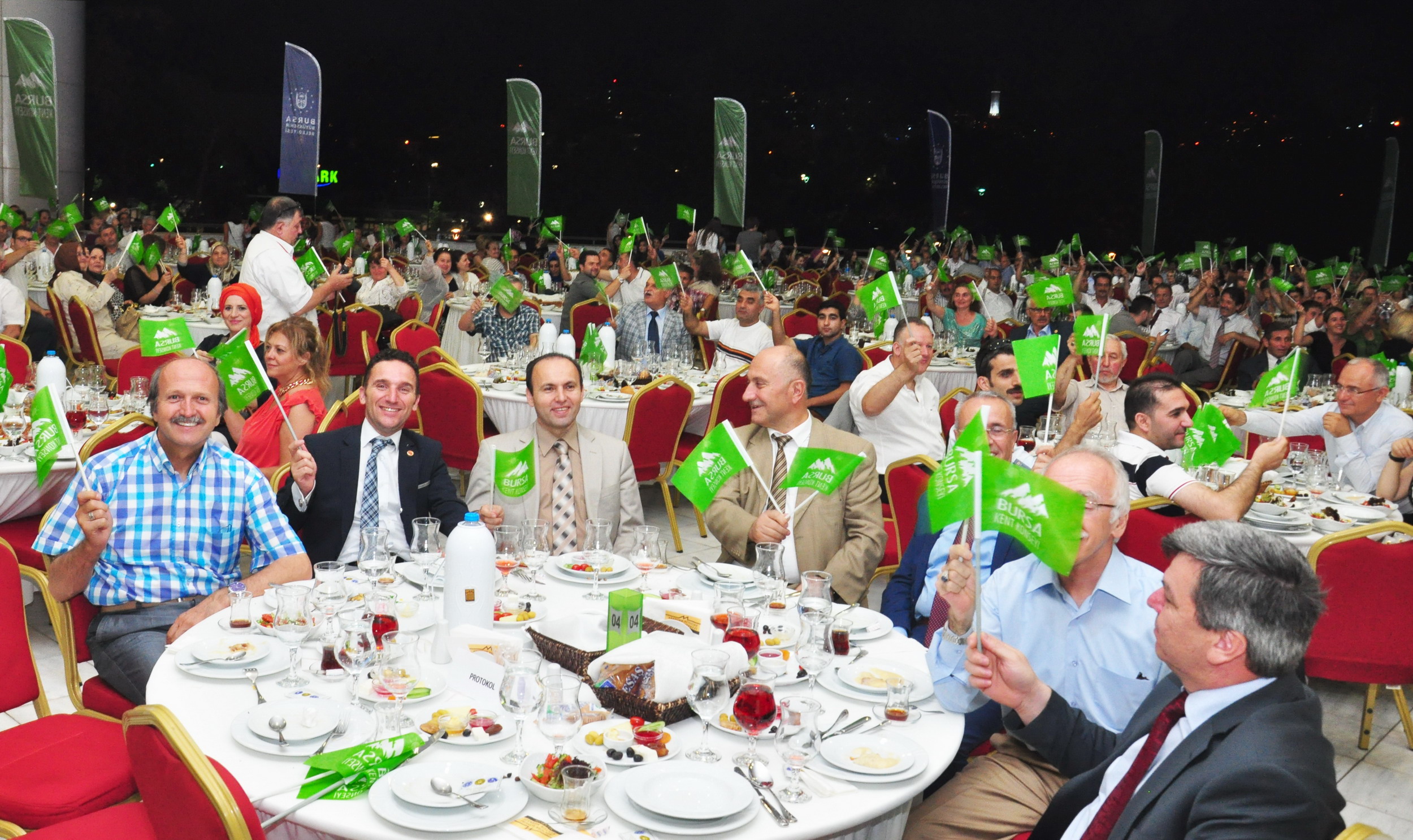 Atatürk Kongre Kültür Merkezi (Merinos AKKM) Büyük Teras’ta verilen iftar yemeğine, BKK Başkanı Semih Pala, Büyükşehir Belediye Başkan Vekili Atilla Ödünç, BKK Yürütme Kurulu üyeleri, 4 Meclis ve 30 çalışma grubunun temsilcileri, muhtarlar, sivil toplum kuruluşlarının temsilcileri, belediye yöneticileri ve çalışanları katıldı. Yemeğin ardından BKK Başkan Yardımcısı ve Tuna Camii İmamı Lütfi Taşcı tarafından dua edildi. BKK yapısının ve yapılan çalışmaların kısa filmle anlatıldığı gecede konuşan Büyükşehir Belediye Başkan Vekili Atilla Ödünç ise, Bursa Kent Konseyi’nin büyük bir aile olduğunu iftar programında bir kez daha gösterdiğini ifade etti. Ramazan ayının birlik ve beraberlik içinde geçmesini temenni eden Ödünç, Kent Konseyi’ne çalışmalarında başarılar diledi.
