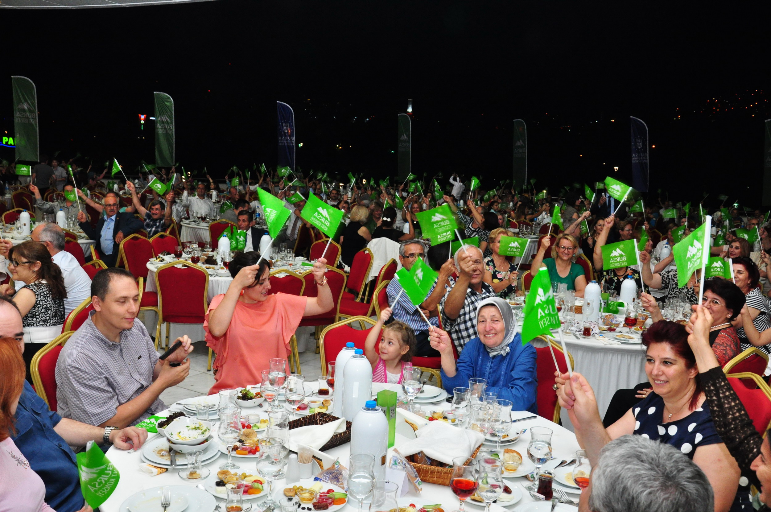 Konuşmaların ardından BKK Başkanı Pala, yürütme kurulu üyelerini, meclislerin ve çalışma gruplarının üyelerini ve muhtarların temsilcilerini sahne davet ederek katılımcılara tanıttı. İftar yemeğinin sonunda, tekno-mehter müziği eşliğinde tüm katılımcılar Bursa Kent Konseyi bayraklarını coşkuyla sallayarak birlik mesajı verdi.