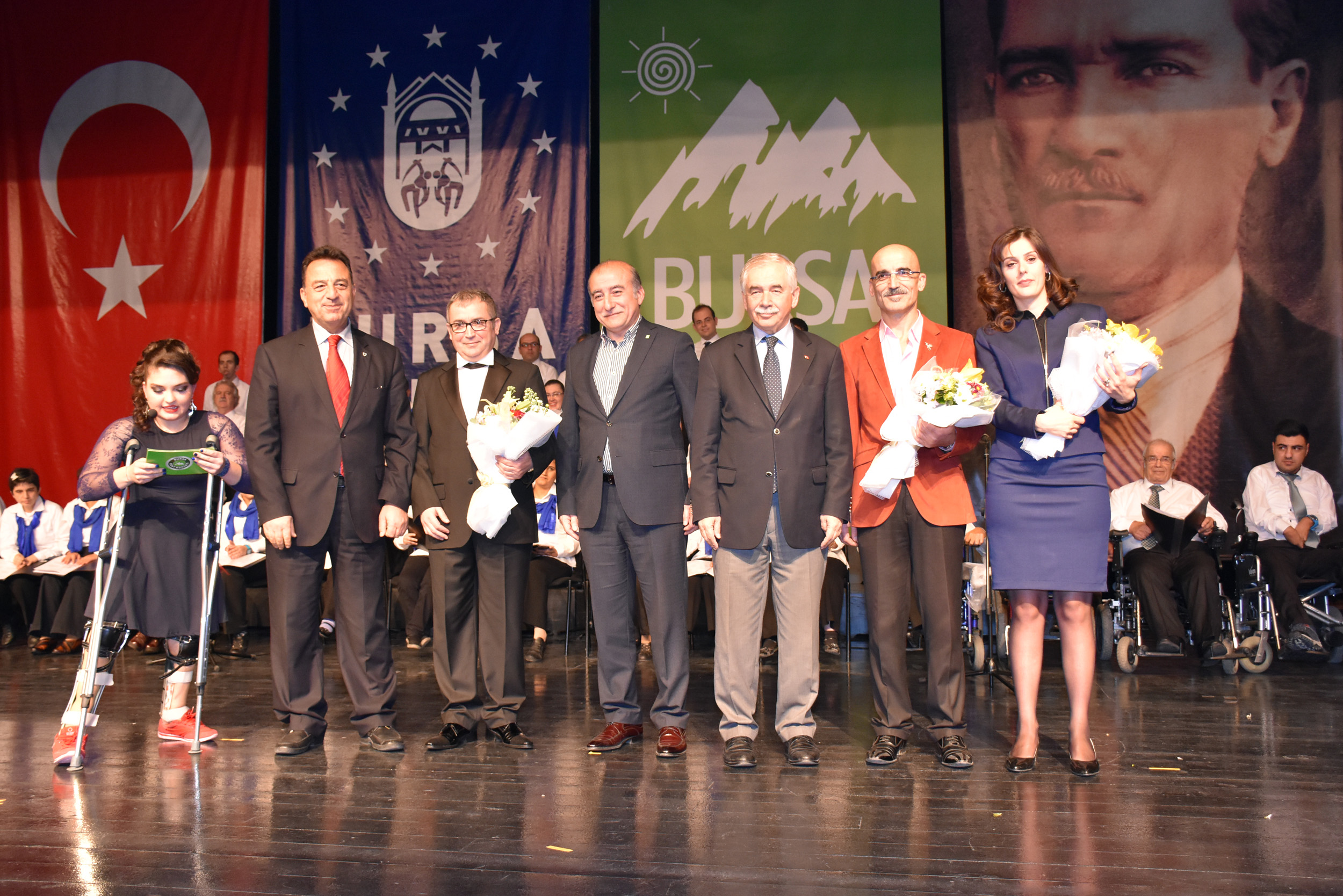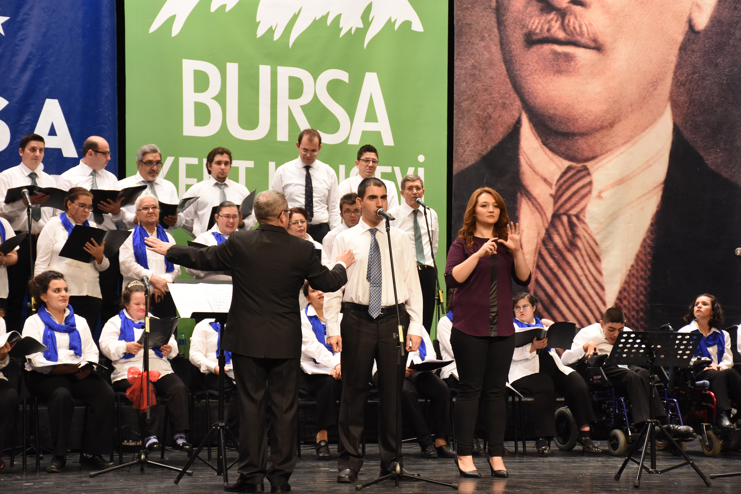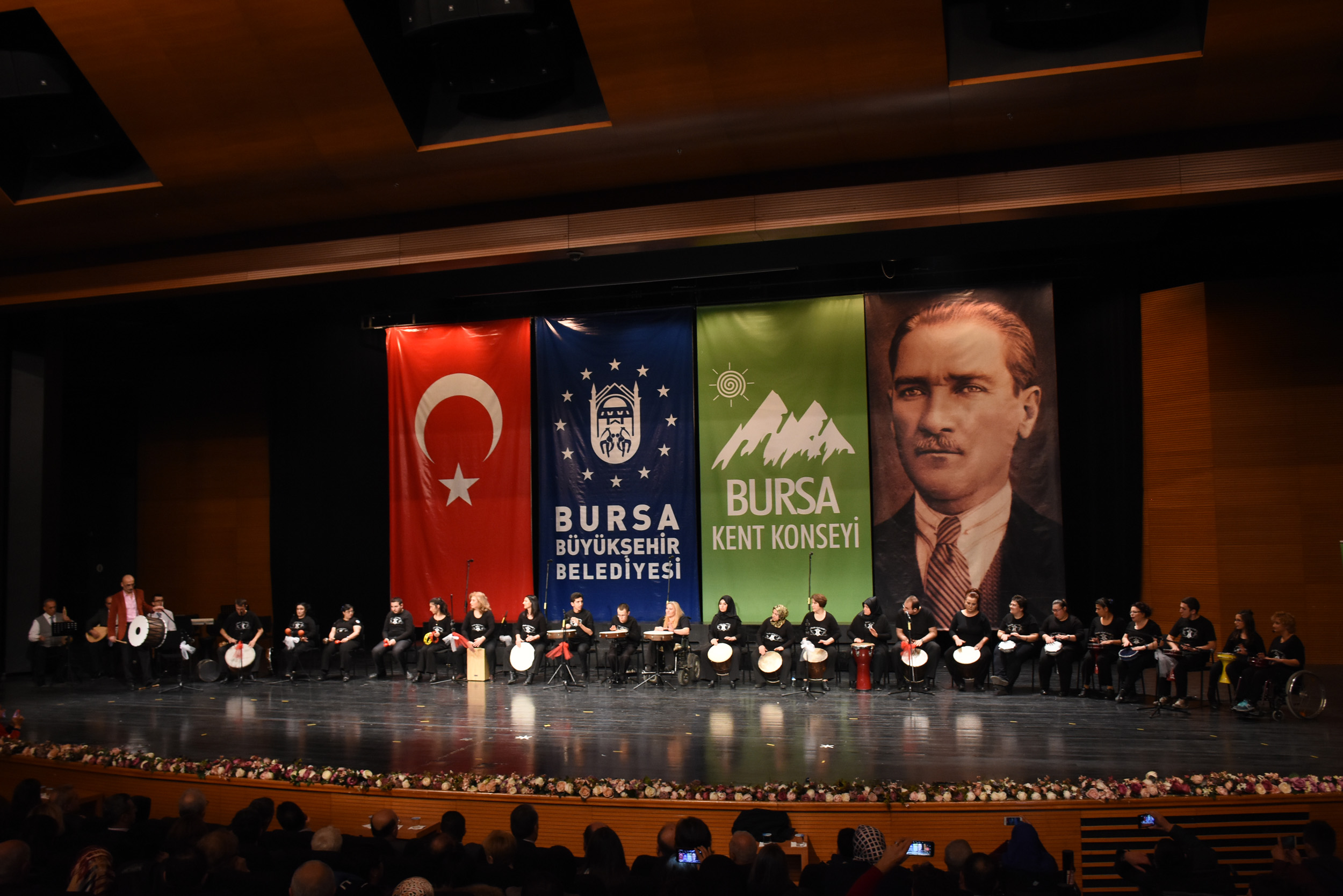 Bursa Kent Konseyi Engelliler Meclisi, 3 Aralık Dünya Engelliler Günü münasebetiyle Atatürk Kongre Kültür Merkezi (Merinos AKKM) Orhangazi Salonu’nda konser düzenledi. Bursa Vali Yardımcısı Ergün Güngör, Bursa Büyükşehir Belediyesi Başkanvekili Muhsin Özlükurt, Bursa Kent Konseyi Başkanı Hasan Çepni, Aile ve Sosyal Politikalar İl Müdürü Erkut Öneş, Bursa Büyükşehir Belediyesi Yerel Gündem Şube Müdürü Mahmut Turunç, Bursa Kent Konseyi Genel Sekreteri Murat Başlar, Engelliler Meclisi Başkanı İbrahim Sönmez ve engelli bireylerle ailelerinin katıldığı gece, saygı duruşu ve İstiklal Marşı’nın okunmasıyla başladı. BUSMEK işaret dili kursu öğrencilerinin çevirmenlik yaptığı konserde, ilk olarak Eğitmen Cuma Çimen’in önderliğinde Kalbin Ritmi Grubu’nun özel gösterisiyle sahne aldı. Kullanabildikleri müzik aletleriyle ritim tutan engelliler, dinleyenlerden büyük alkış aldı. Farklı farklı enstrümanları ahenk içinde çalan bireyler, performanslarıyla ailelerini gururlandırdı.