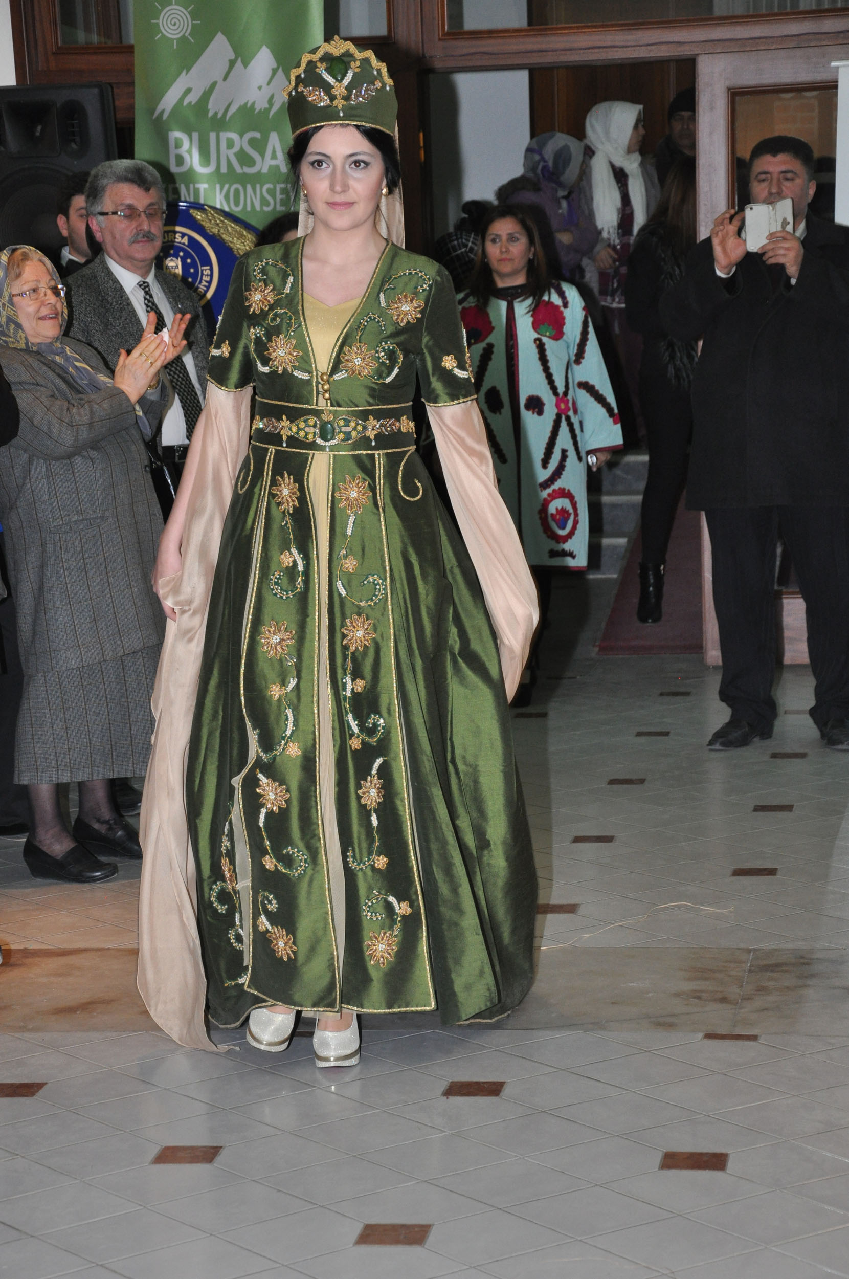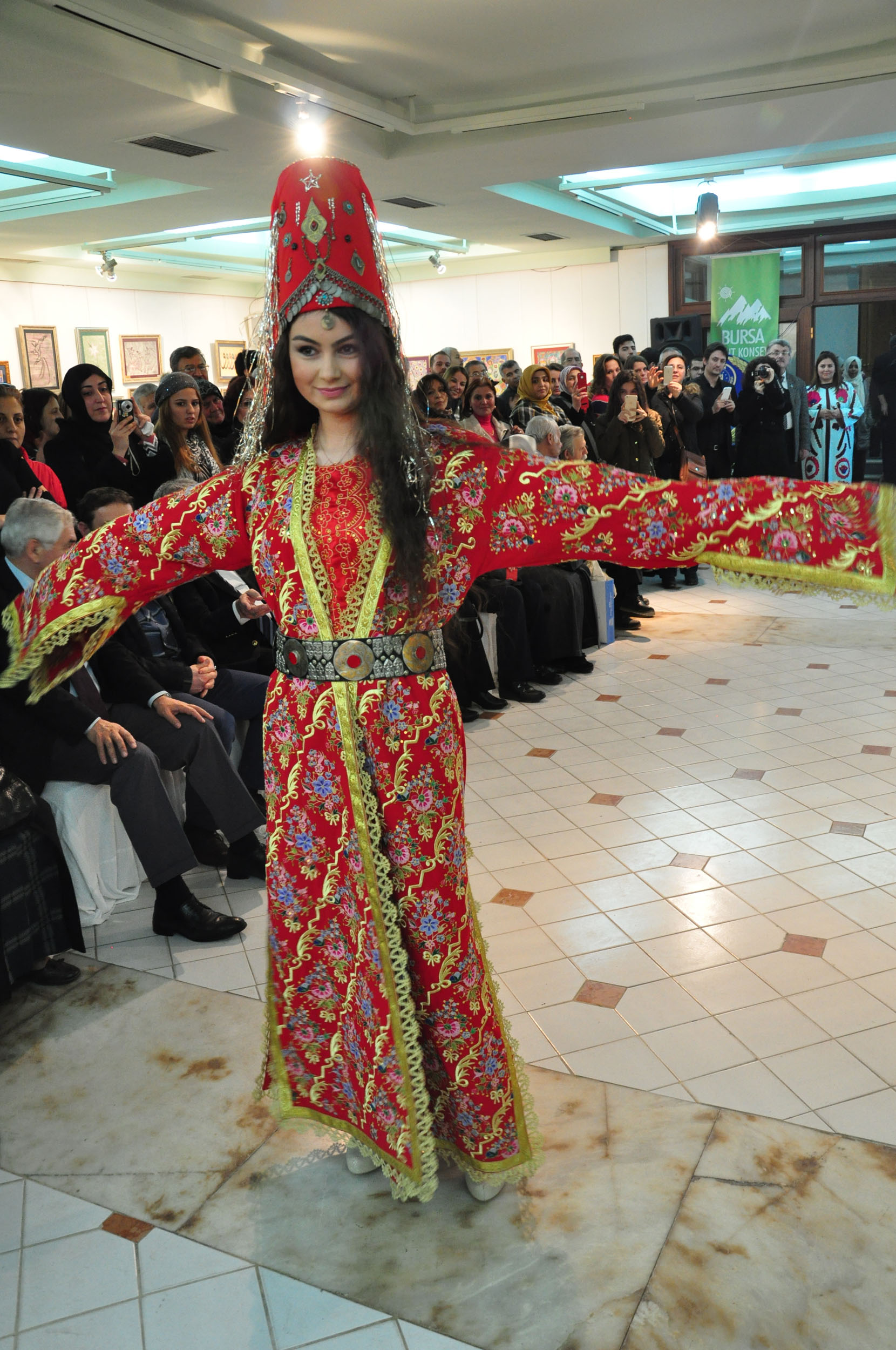 BKK Kültür Sanat Çalışma Grubu üyesi Hatice Hanedar Yüksel kreasyonu kıyafetlerden oluşan ´Osmanlı Kaftanları´ ve ´Anadolu’daki Gelin Başlıkları’ konulu iki ayrı defile gösterisi sunuldu. ´Saten üzerine sim sarma, ipek üzerine sim sarma, ipek üzerine çevre işi, ipek üzerine boncuk işlemesi, ipek üzerine tel kırma sanatı, ipek üzerine inci ve iğne oyası, ipek üzerine tel kırma Osmanlı motifli lale çalışması, iğne oyalı boncuk oyalı tasarım, dantel anglez, krep üzerine nakış işlemeden oluşan 14 Osmanlı kaftanı çalışması ile, Mardin, Bursa Keles, Aydın, Kütahya, Çanakkale Biga, Çorum Alacahöyük, Çanakkale Merkez gelin başlıkları ve Keles kadın başlığı, özgün çalışmadan oluşan 10 başlık çalışması, izleyenlerden büyük ilgi gördü.