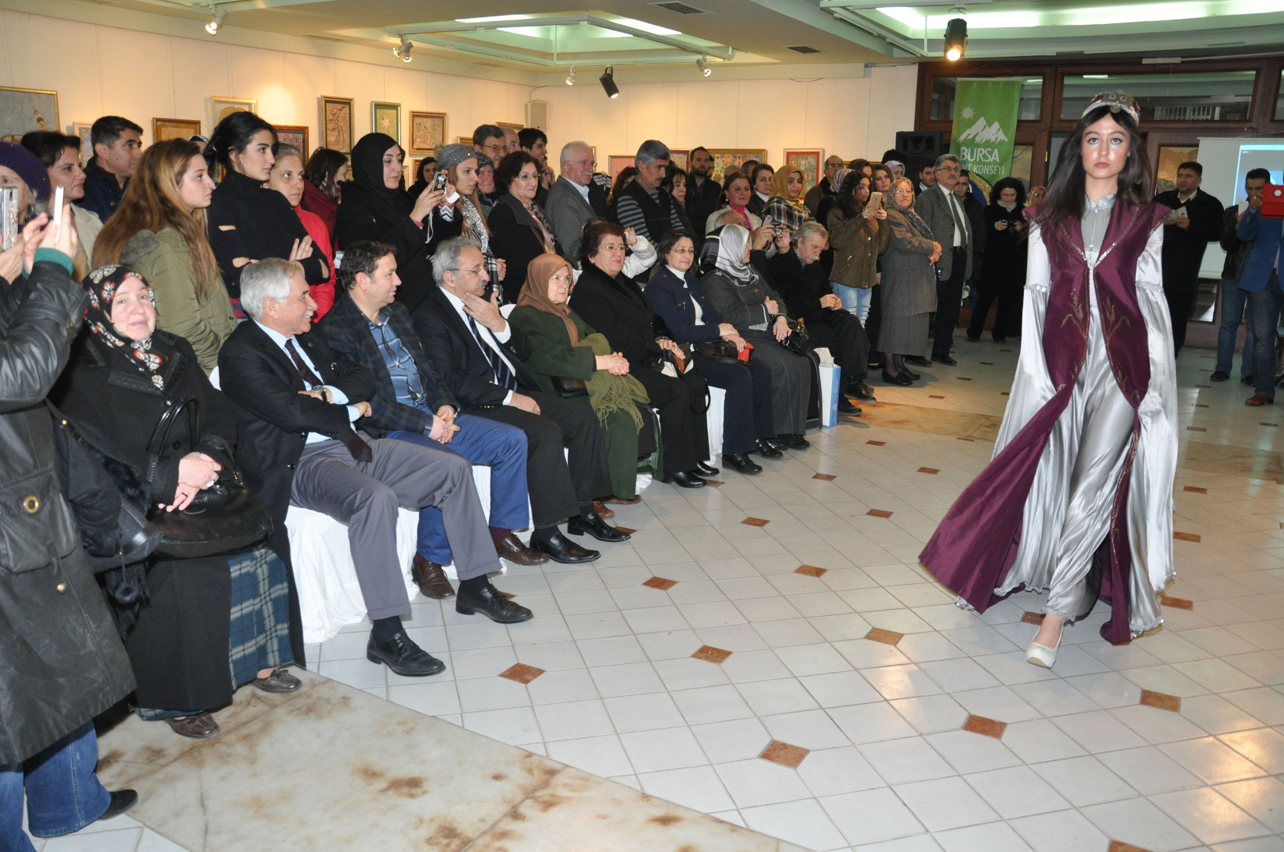 BURSA - Bursa Kent Konseyi (BKK) Kültür Sanat Çalışma Grubu´nun gönüllü katılımcıları tarafından bu sene ikincisi yapılan ´BKK Kültür Sanat Haftası´ programında ´Osmanlı Kaftanları ve Anadolu´daki Gelin Başlıkları´ konulu iki ayrı defile gösterisi sunuldu.