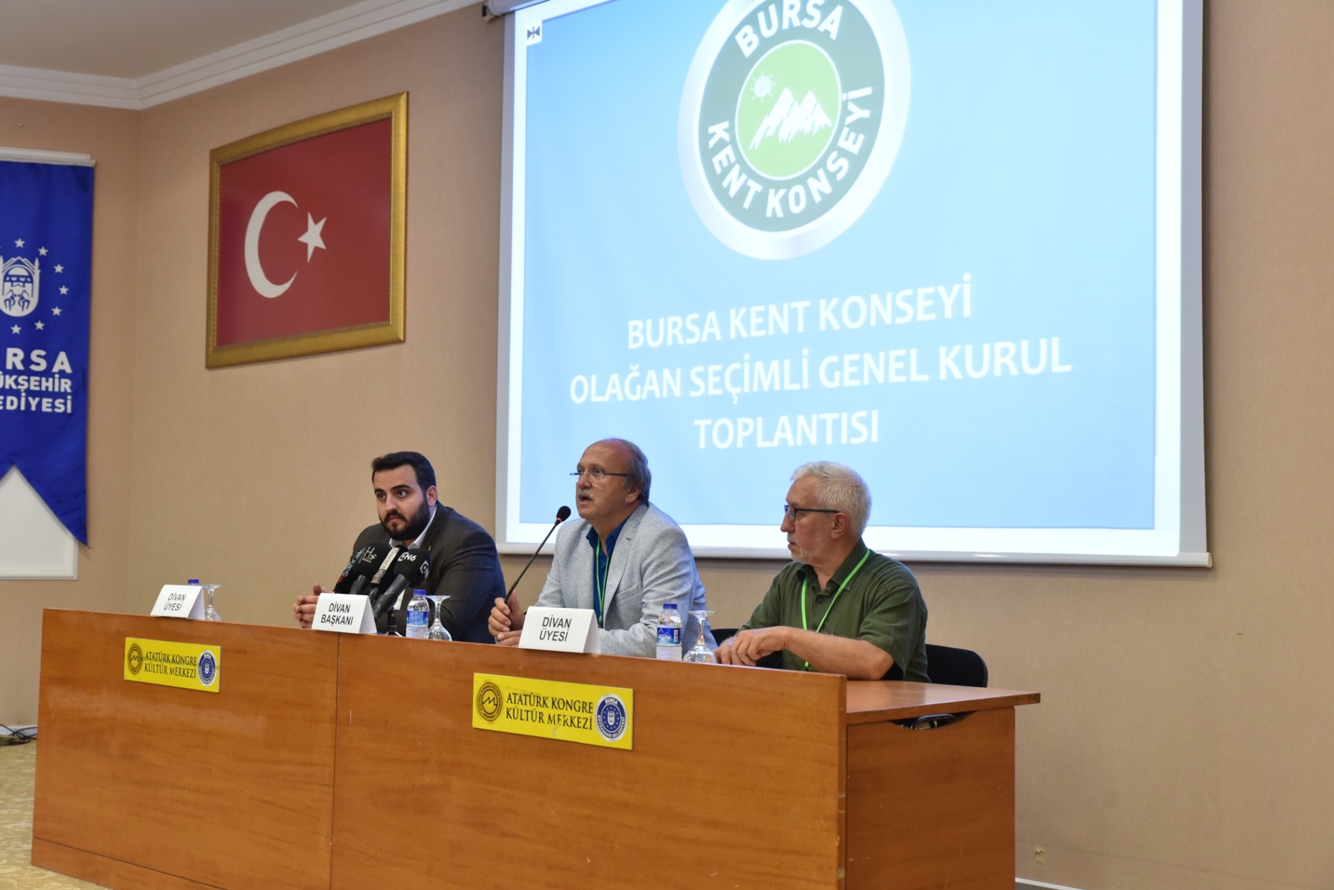 Bursa Kent Konseyi Olağan Seçimli Genel Kurul Toplantısı, Atatürk Kongre Kültür Merkezi (Merinos AKKM) Başkanlık Salonu’nda gerçekleştirildi. Bursa Büyükşehir Belediyesi Başkanvekili Murat Demir, yoğun gündemi nedeniyle programa katılamayan Bursa Büyükşehir Belediye Başkanı Alinur Aktaş’ın selamlarını iletti. Kent konseylerinin yerel karar alma mekanizmalarına kent halkının katılımını sağlamak amacıyla oluşturulmuş demokratik platform olduğunu söyleyen Demir, Bursa Kent Konseyi bünyesinde 5 meclis, 30 çalışma grubu, 332 kurumsal katılımcı ve binler gönüllünün yer aldığını sözlerine ekledi. Bursa Kent Konseyi’nde kısa süre başkanvekili olarak görev yapan Şuayip Toprak ise Bursa Kent Konseyi’nin kent halkının önemli temsil mekanizmalarından biri olduğunu ifade ederek, adaylara başarılar diledi.