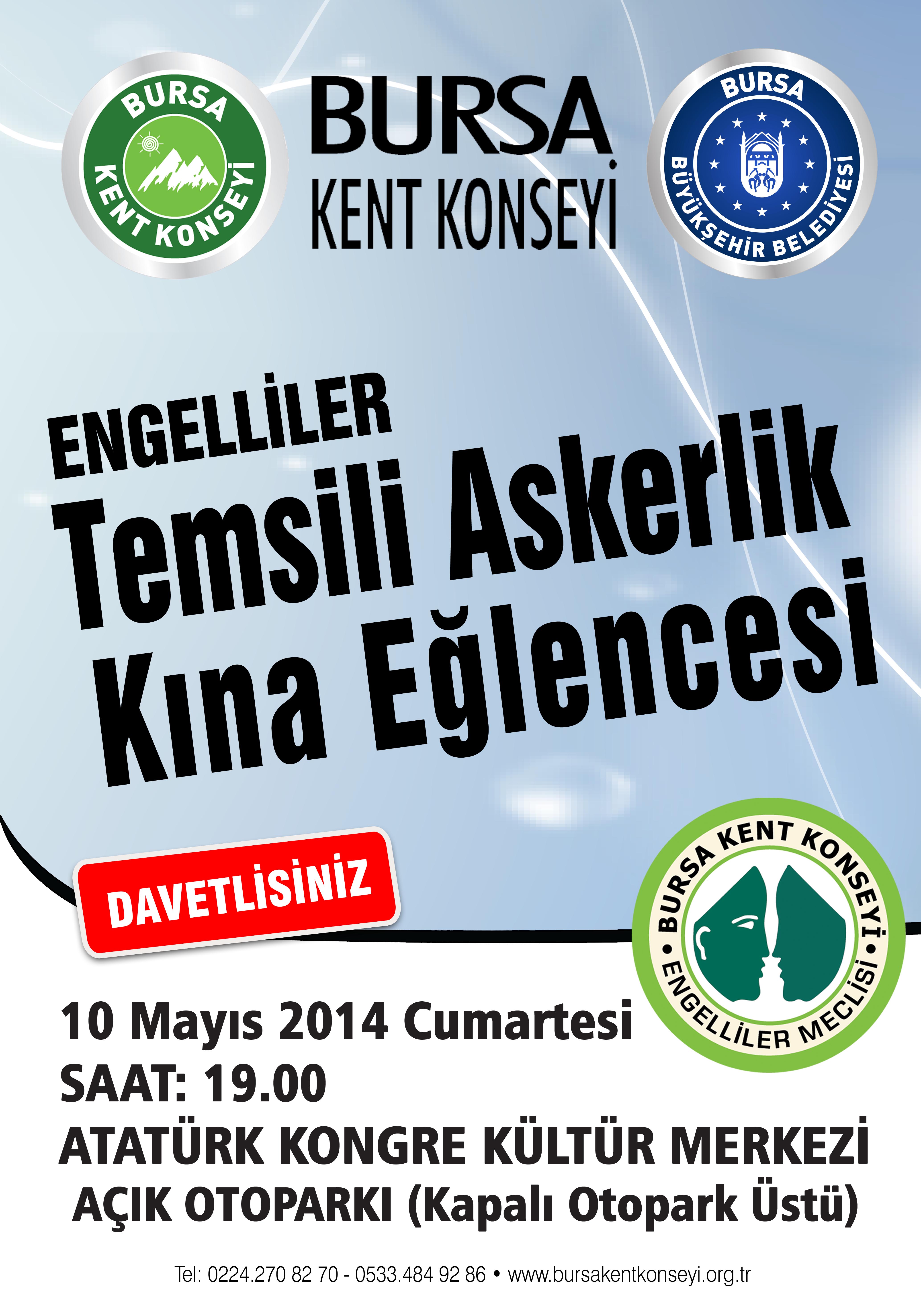 - Engelli kınalı kuzular, Bursa Kent Konseyi (BKK) Engelliler Meclisi’nin düzenleyeceği kına gecesi ile askere uğurlanacak.