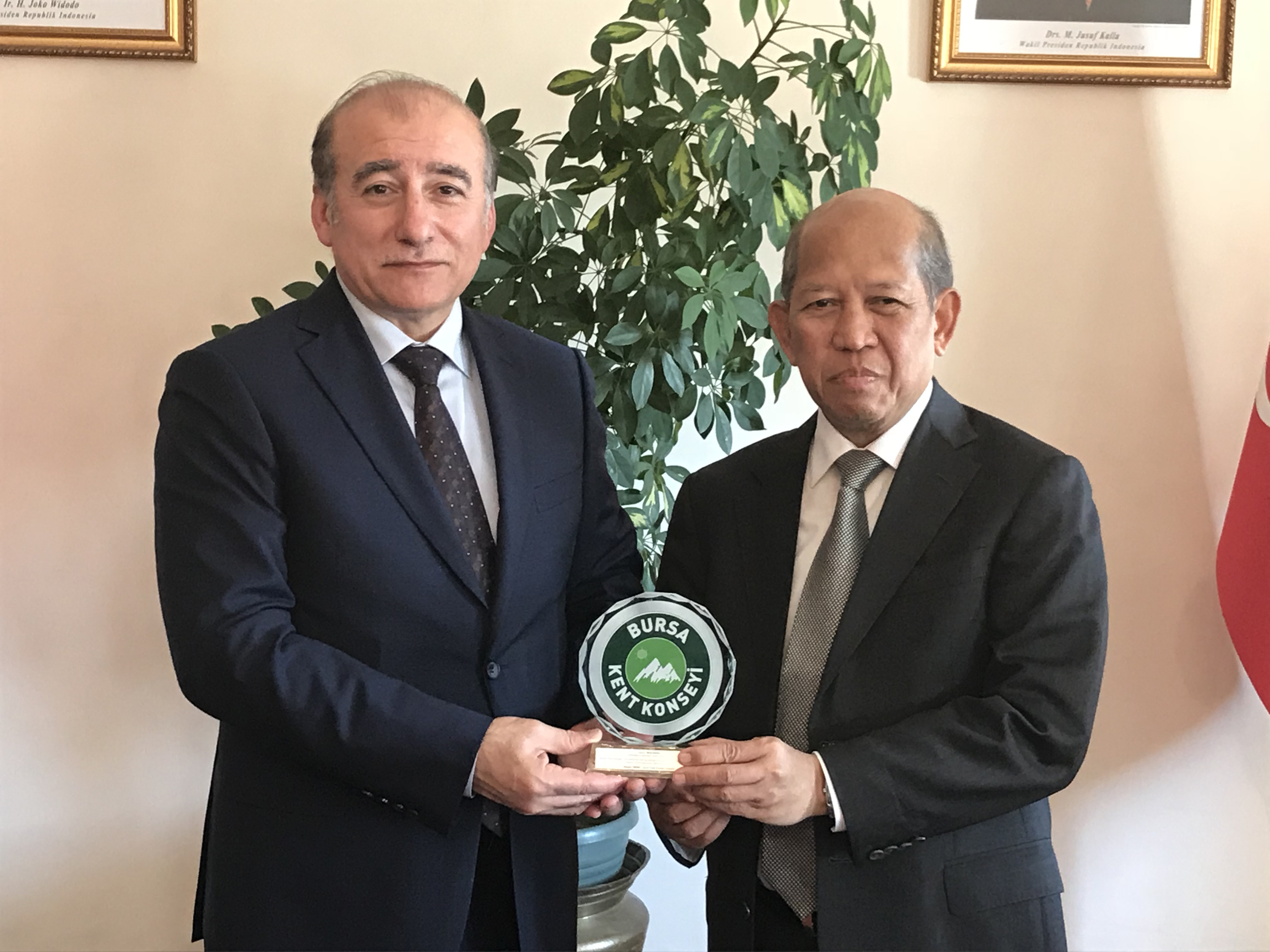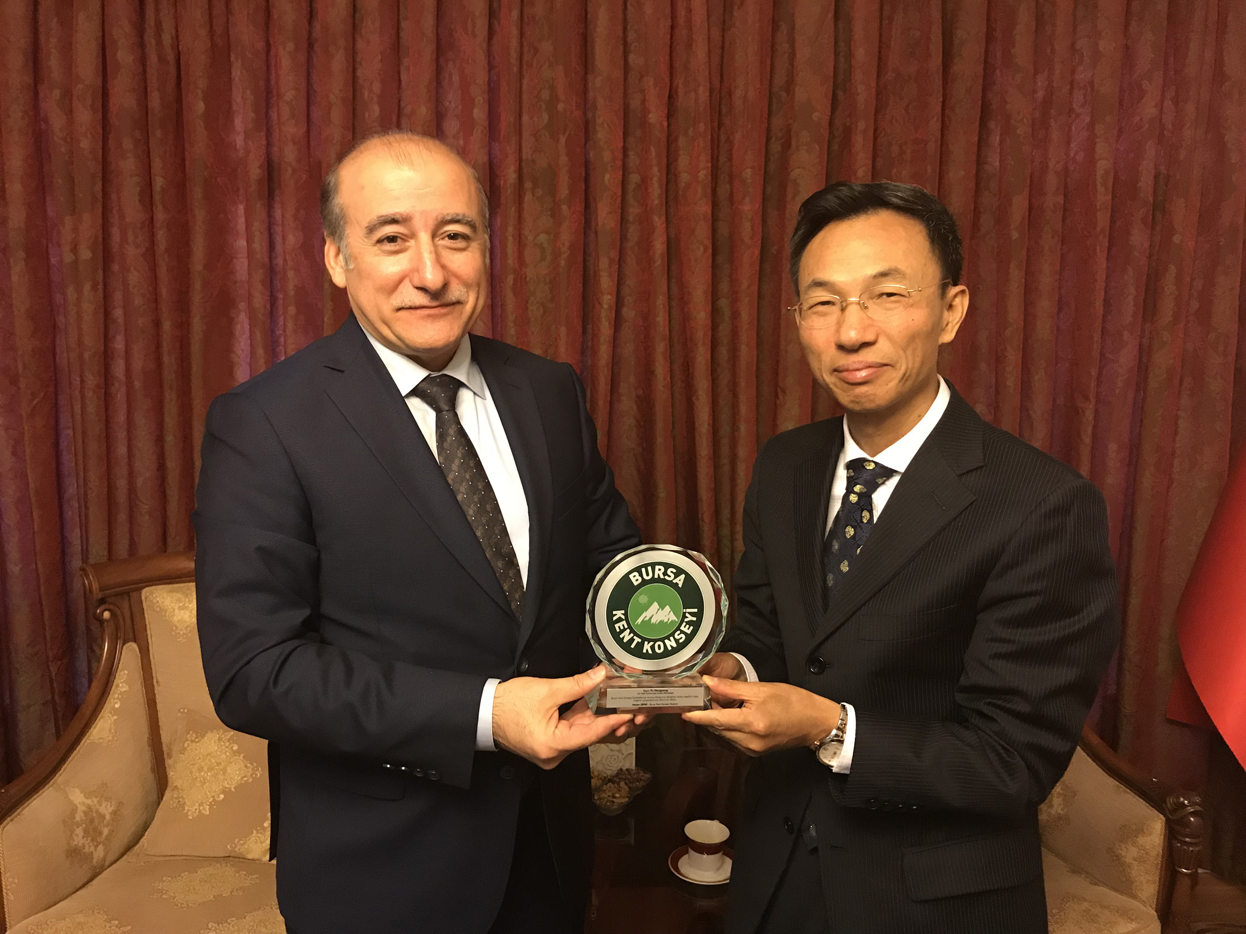 Ziyaretlerin sonunda Bursa Kent Konseyi Başkanı Hasan Çepni, Çin Halk Cumhuriyeti Ankara Büyükelçisi Yu Hongyang’a ve Endonezya Cumhuriyeti Büyükelçisi Wardana’ya teşekkür plaketi takdim etti.