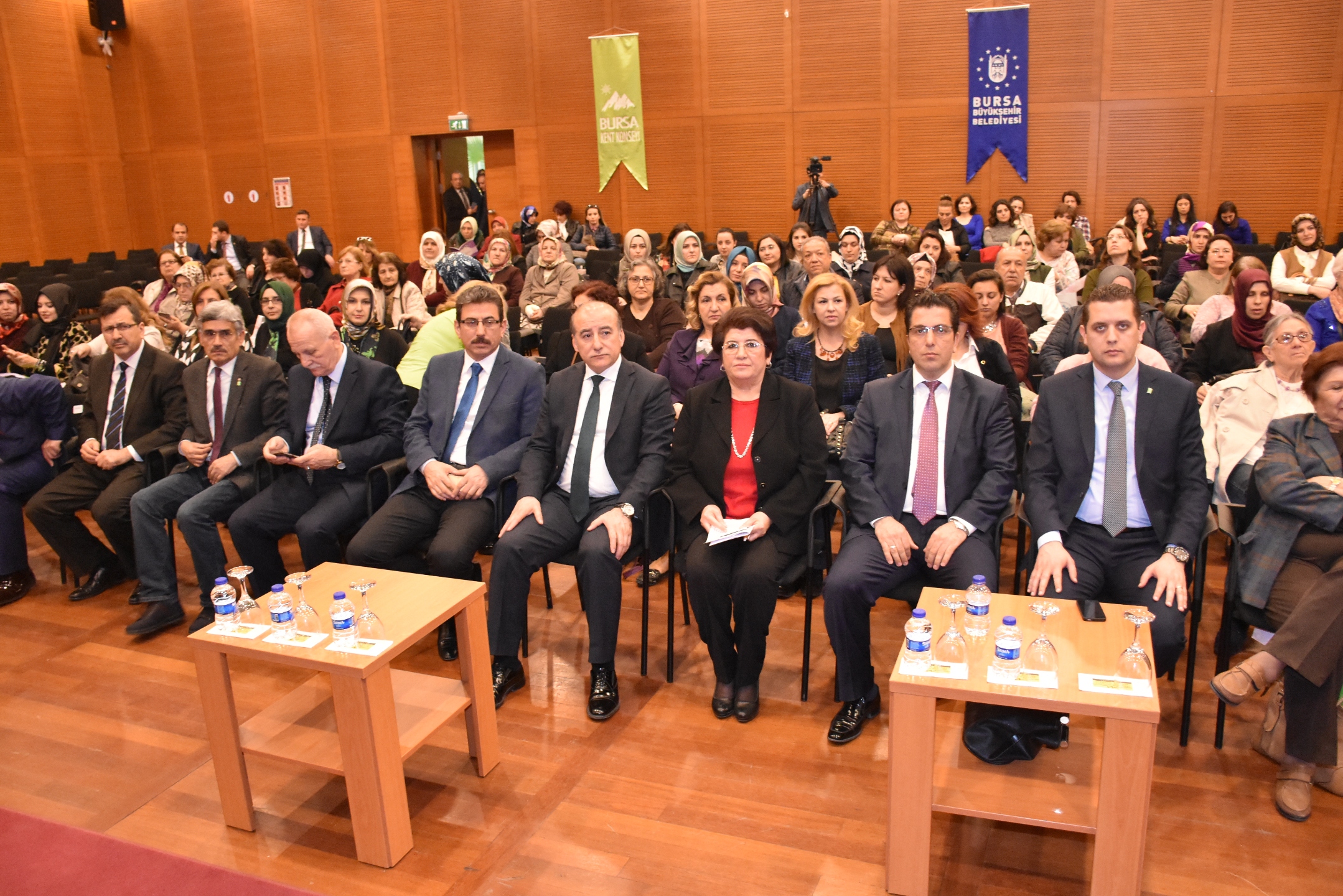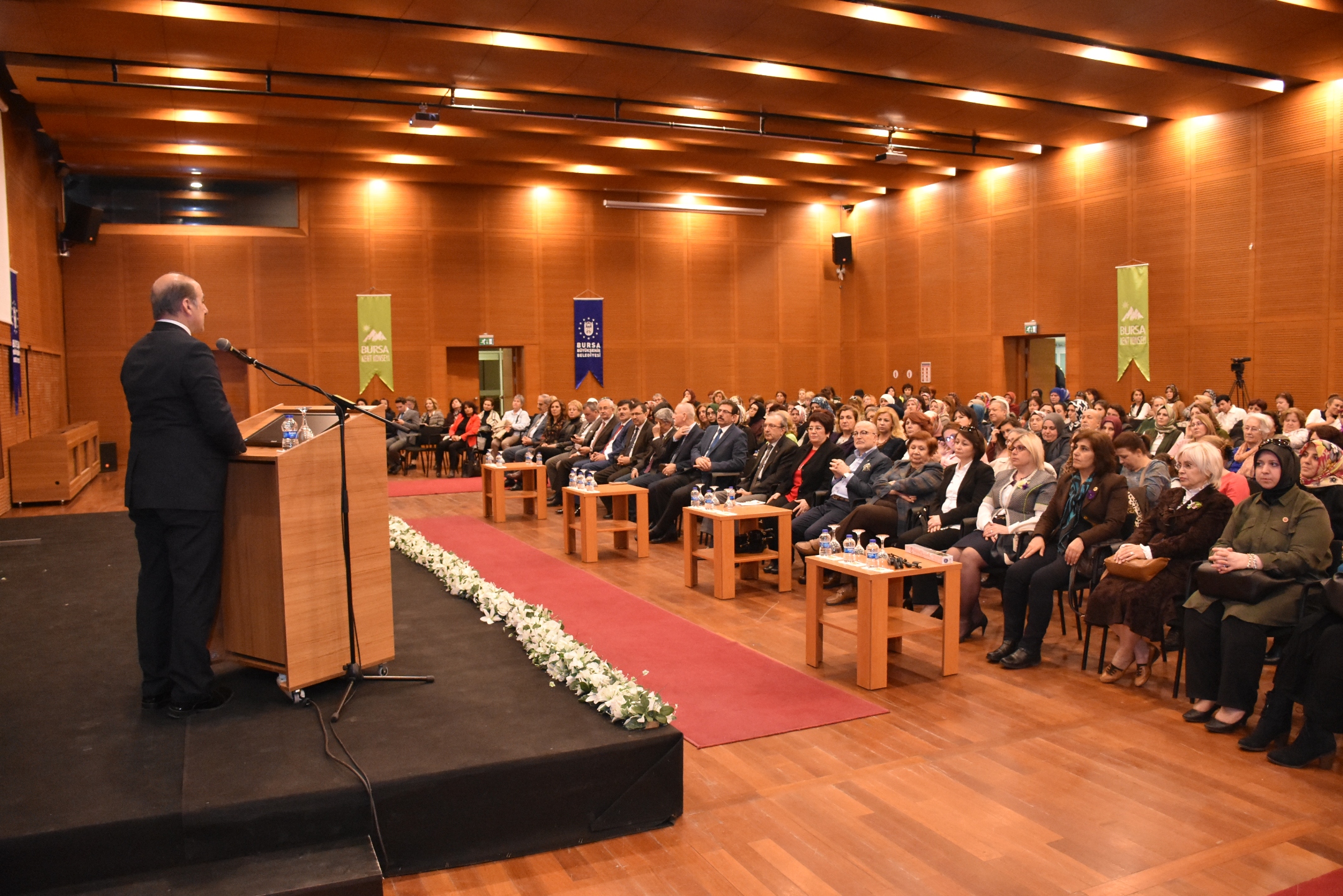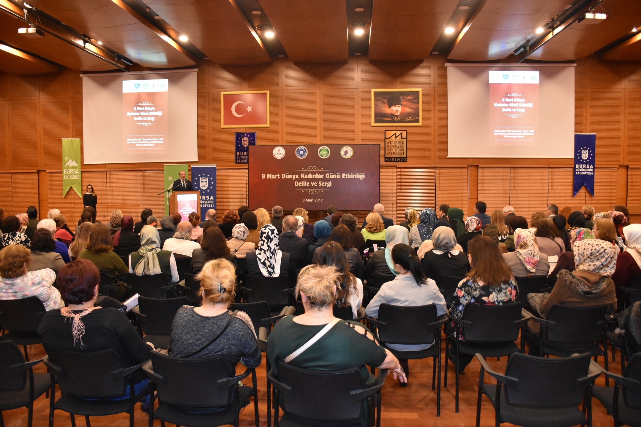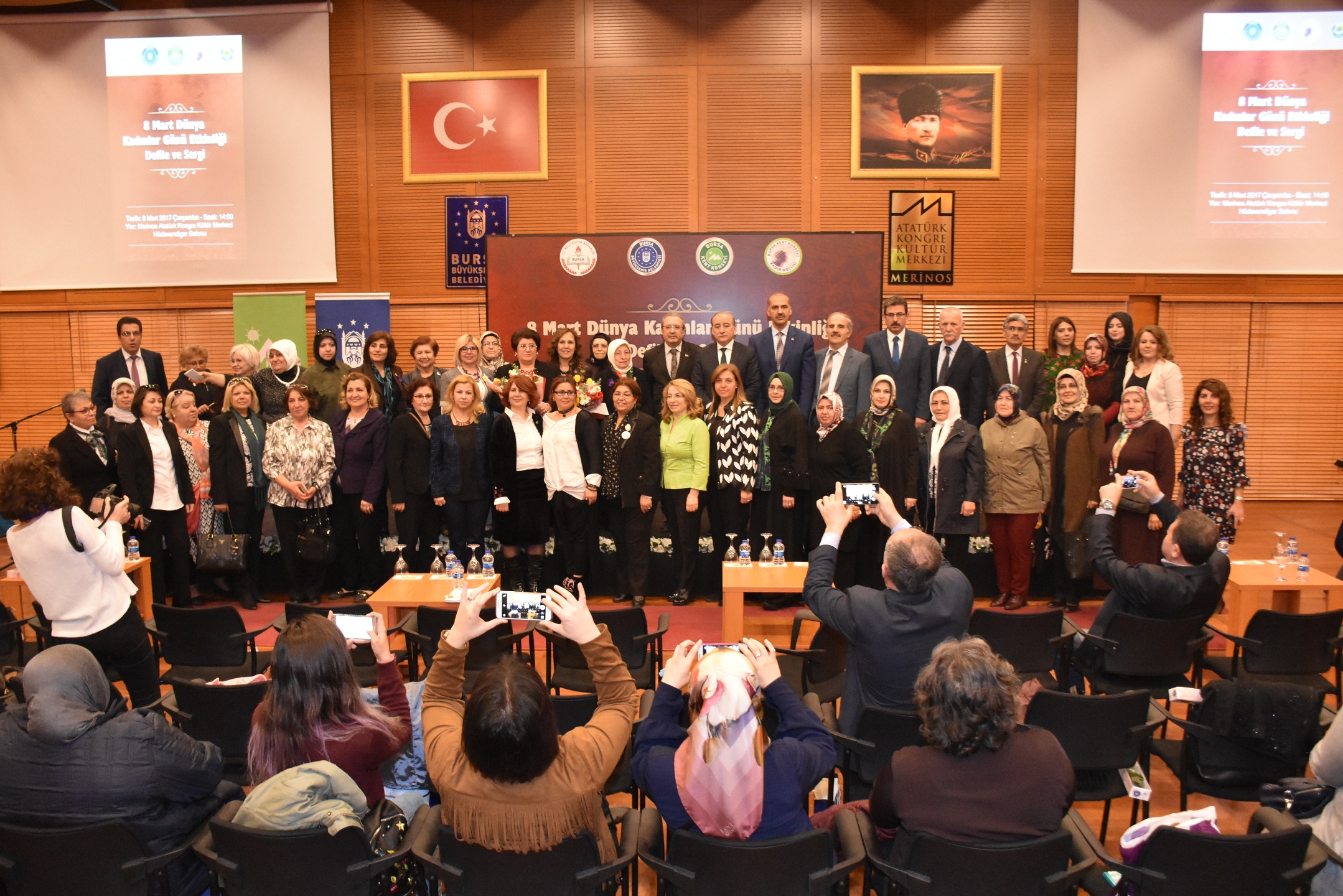 Bursa Kent Konseyi Kadın Meclisi’nin düzenlediği ‘8 Mart Dünya Kadınlar Günü’ anma programı, Atatürk Kongre Kültür Merkezi (Merinos AKKM) Hüdavendigar Salonu’nda yapıldı. Programa, Büyükşehir Belediye Başkanı Recep Altepe’yi temsilen Bursa Kent Konseyi Başkanı Hasan Çepni, Yıldırım Kaymakamı Mehmet Aydın, Türkiye Muhtarlar Konfederasyonu Başkanı Hüseyin Akdeniz, Kadın Meclisi Başkanı Kadriye Sarıbıyık, siyasi partilerin, sivil toplum kuruluşlarının ve kamu kurumlarının temsilcileri, Türkiye Muhtarlar Konfederasyonu üyesi kadın muhtarlar, Bursa’da görevli kadın muhtarlar, Olgunlaştırma Enstitüsü’nün eğitmen ve öğrencileri, Bursa Kent Konseyi yürütme kurulu üyeleri, Kadın Meclisi yürütme kurulu üyeleri, kadın derneklerinin temsilcileri ve çok sayıda kadın katıldı. Saygı duruşu ve İstiklal Marşı’nın okunmasıyla başlayan programda, Kadın Meclisi tarafından hazırlanan ‘8 Mart Dünya Kadınlar Günü’ videosu gösterildi.