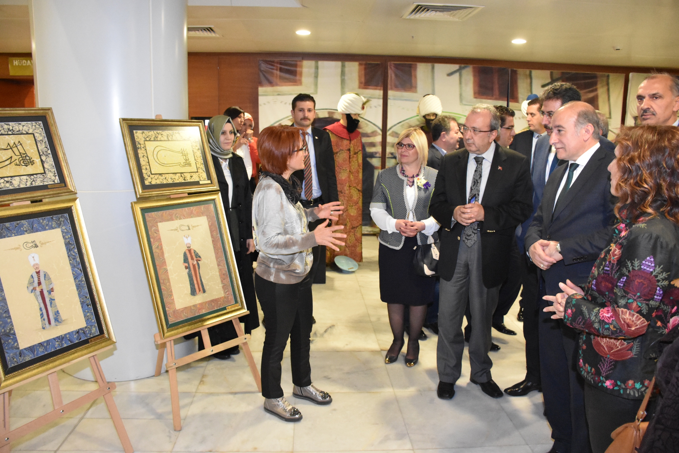 Daha sonra protokol ve tüm konuklar, Olgunlaştırma Enstitüsü tarafından hazırlanan ve çeşitli sanat dallarından 140 eserin yer aldığı sergiyi gezdi.