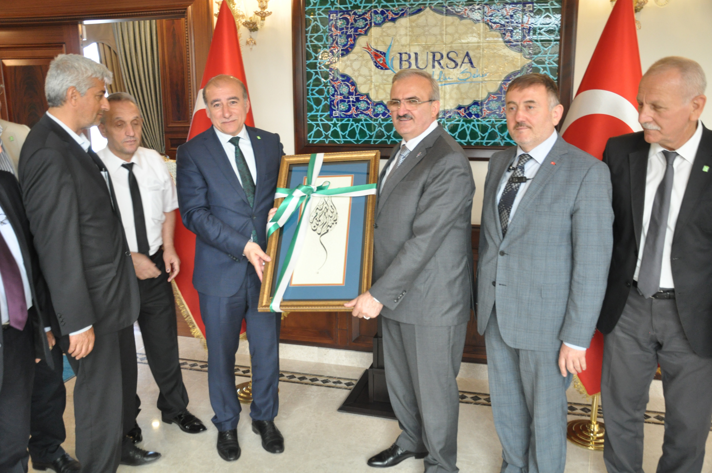 BURSA - Bursa’dan Antalya’ya tayin olan Vali Münir Karaloğlu, Genel Kurul’da güven tazeleyen Bursa Kent Konseyi Başkanı Hasan Çepni ve yürütme kurulu üyelerini ağırladı.