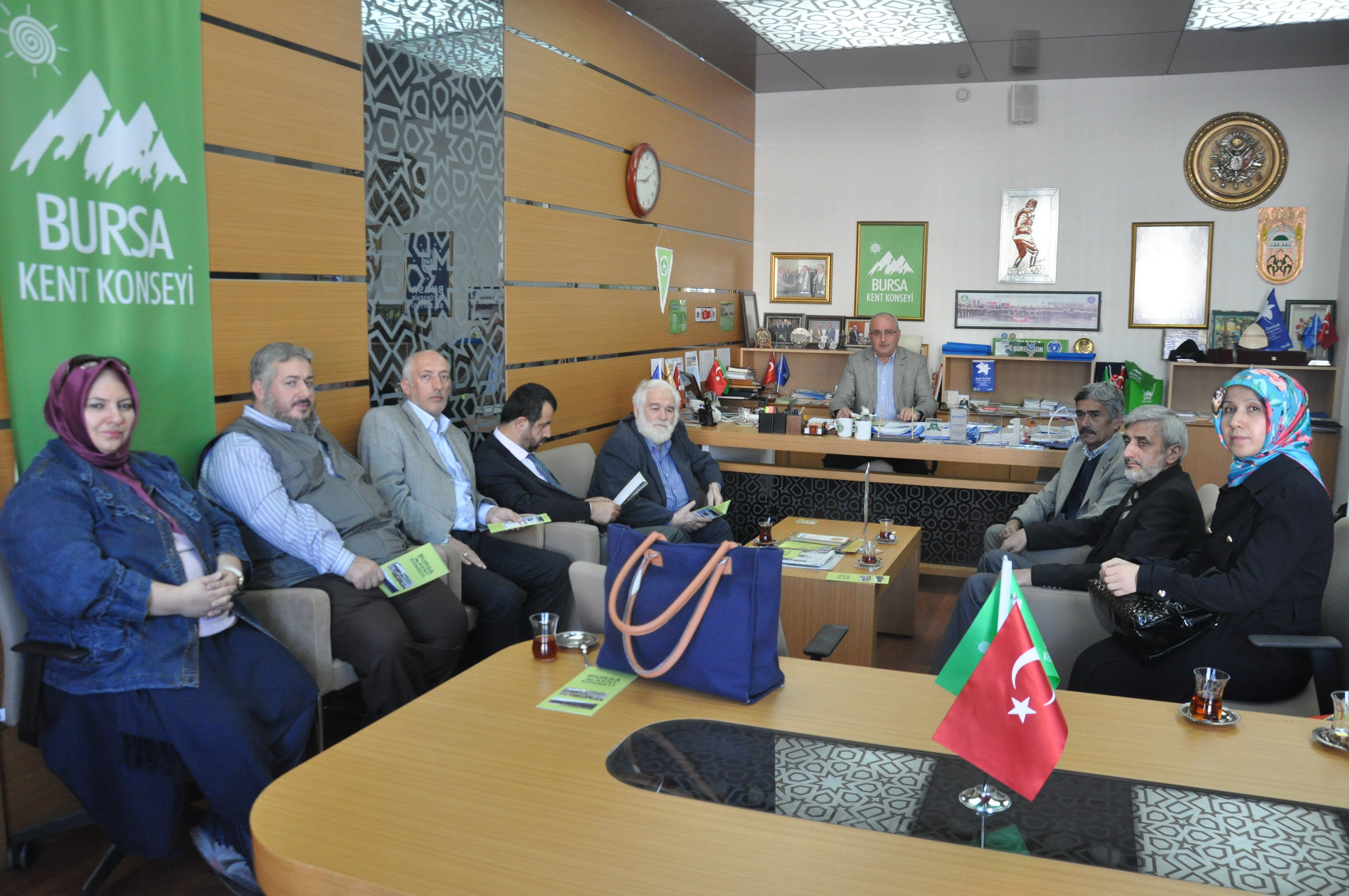 BURSA – Bursa Kent Konseyi (BKK) Başkanı Semih Pala, Amerika’daki Türk akademisyenler Prof. Dr. Erdoğan Gürmen, Dr. Osman Kandara ile Bursa Teknik Üniversitesi’nden (BTÜ) Prof. Dr. Osman Kopmaz’ı makamında ağırlayarak kent konseyi yapısı hakkında bilgi verdi.