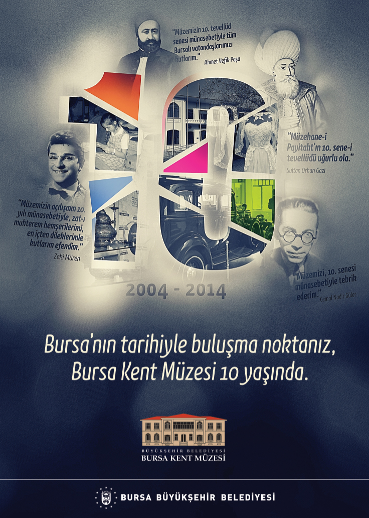 - Bursa’nın tarihini ve bugününü birbirinden güzel sergilerle geleceğe taşıyarak müzecilikte kentin adını dünyaya duyuran Bursa Kent Müzesi, 10. yaş coşkusunu özel bir sergiyle yaşıyor.