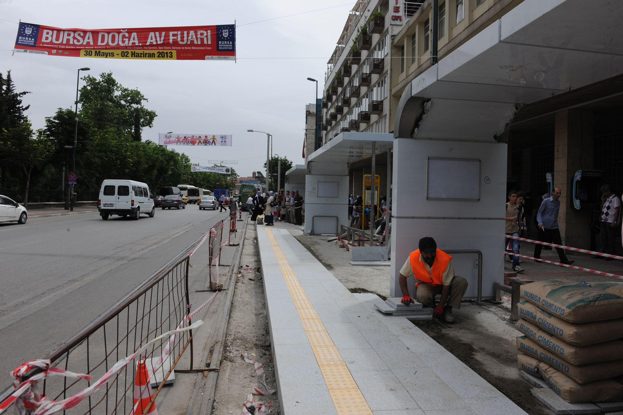 Tramvay istasyonlarının yanı sıra caddelerin de komple bakıma alındığını hatırlatan Başkan Altepe, “Bursa’ya yakışır, pırıl pırıl caddeleri oluşturuyoruz. Tramvay hattına kırmızı asfalt yapılacak, hattın sağına ve soluna kırmızı ve beyaz ışıklar döşenecek. Tramvayın geçeceği yerlerde tretuvar düzenlemesi ve binalara da cephe ıslahı yapılıyor. Bursa caddeleri her yönüyle elden geçmiş oluyor” dedi.