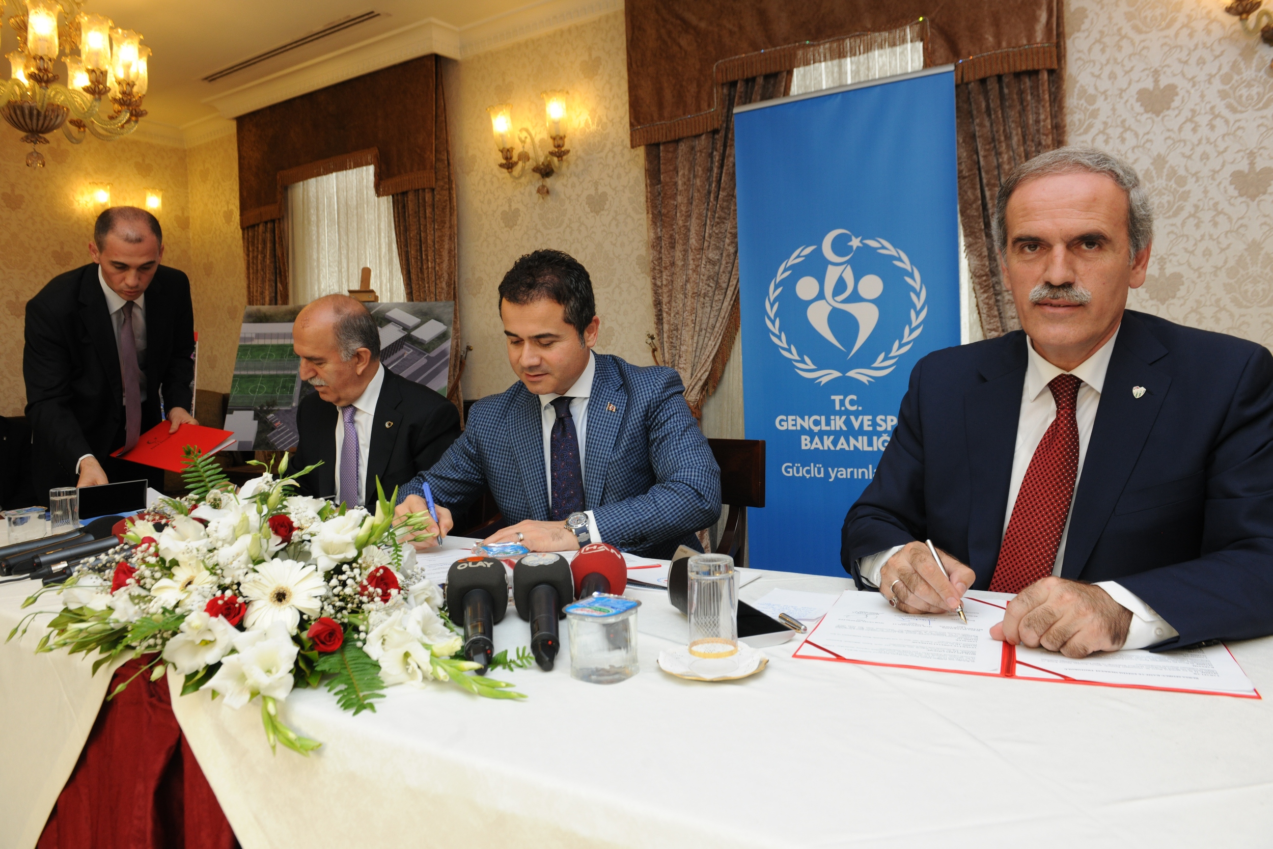 BURSA – Büyükşehir Belediyesi tarafından Bursa’ya kazandırılacak olan ‘Sporcu Kampı Eğitim Merkezi’nin protokolünü, Gençlik ve Spor Bakanı Suat Kılıç, Bursa Valisi Şahabettin Harput ve Büyükşehir Belediye Başkanı Recep Altepe ile imzaladı.