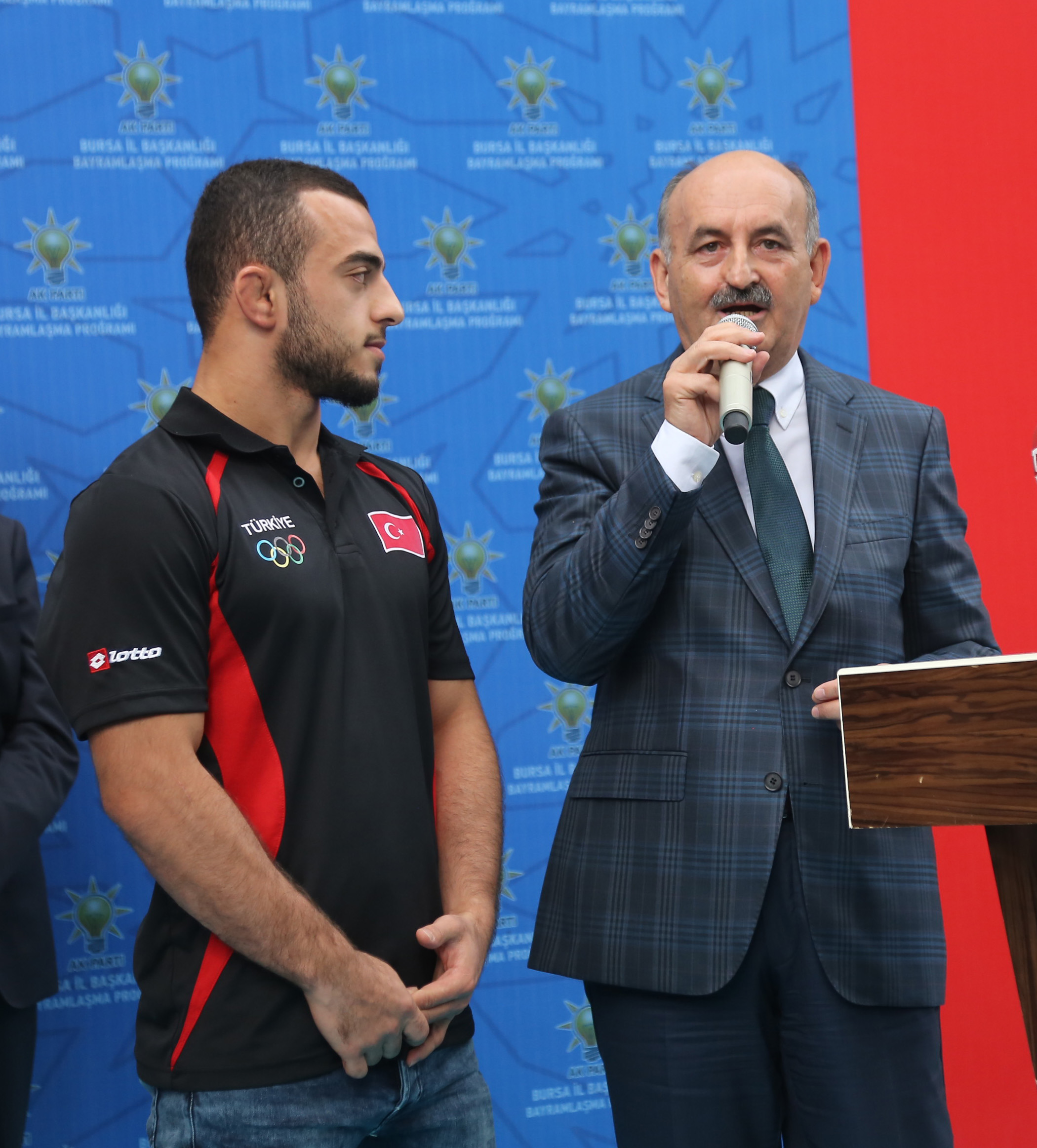 Başkan Altepe, Bursa’nın her alanda örnek ve öncü adımlar atmaya devam edeceğini de ifade ederken, Çalışma ve Sosyal Güvenlik Bakanı Dr. Mehmet Müezzinoğlu ile İçişleri Eski Bakanı Efkan Ala da konuşmalarında birlik ve beraberlik mesajları verdi. Bakan Müezzinoğlu, ‘Dünya Şampiyonu’ olan milli sporcu, Bursa Büyükşehir Belediyespor Kulübü güreşçilerinden Enes Uslu’yu da tebrik ederek, başarılarının devamını diledi.