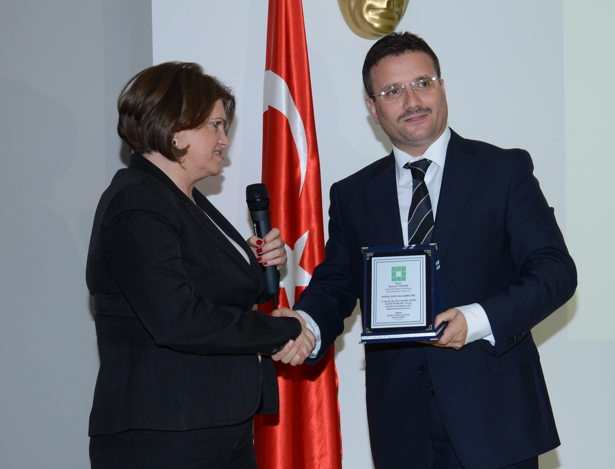 Toplantının sonunda Şehir Plancıları Odası Şube Başkanı Füsun Uyanık, tüm konuşmacılara günün anısına plaket verdi.