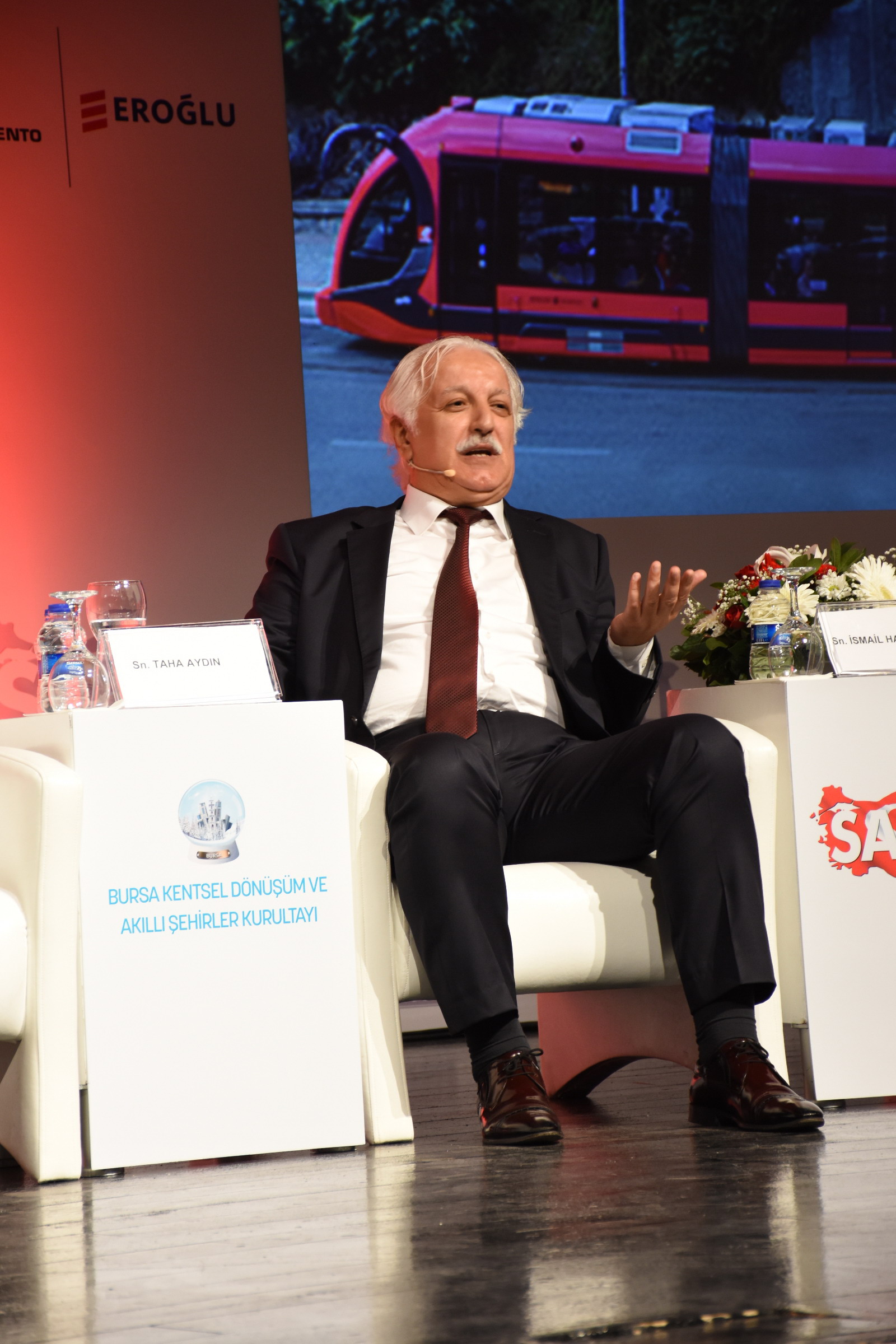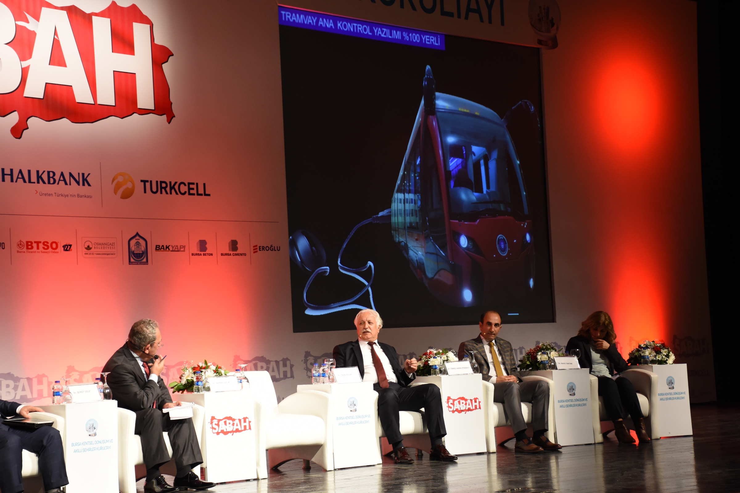 Bursa Büyükşehir Belediye Başkan Danışmanı Makine Mühendisi Taha Aydın, Sabah Gazetesi tarafından Atatürk Kongre Kültür Merkezi’nde (Merinos AKKM) düzenlenen Kentsel Dönüşüm ve Akıllı Şehirler Kurultayı’ kapsamındaki oturum bölümünde konuştu. Bursa Büyükşehir Belediyesi’nin raylı sistem vizyonu ve projeleri hakkında bilgiler veren Taha Aydın, Büyükşehir Belediye Başkanı Recep Altepe’nin yerel seçimlerden sonra Bursalılara verdiği sözle ipekböceği tramvayının vizyon projesi olarak yapıldığını söyledi. Bursa’nın mühendislik ve sanayi altyapısı kullanılarak Türkiye’nin ilk tramvayının üretildiğini hatırlatan Aydın, “3 milyon 200 bin euroya aldığımız araçlar, böylelikle 1 milyon 600 euroya düştü. Avrupa’yı gezdiğimizde bizlere, ‘4-5 senede bir modeli zor geliştirirsiniz. Zor bir teknoloji’ dediler. Tramvay, hızlı trenden sonra gelen en zor raylı teknolojidir. İhtiyaç dolayısıyla çalışmalara oradan başladık. Bir sanayicimizi yönlendirerek 6 senede 4 tane model geliştirdik. Dolayısıyla ülkemize kazandırdık ve Türkiye’ye yön verdik. Hiçbirşey yapmadıysak da 420 milyon TL’yi şehrimizde tutmuş olduk. Bu kadar paranın çıkışını engellemiş olduk. Bunun yanında sanayimiz, raylı sistem çalışmalarımız gelişti, ülkemize katma değer sağladık. Dünyada şuan 1.7 triyon dolarlık uluslararası raylı sistem pazarı var. Bunun için yerli olmamız gerekiyor” dedi.