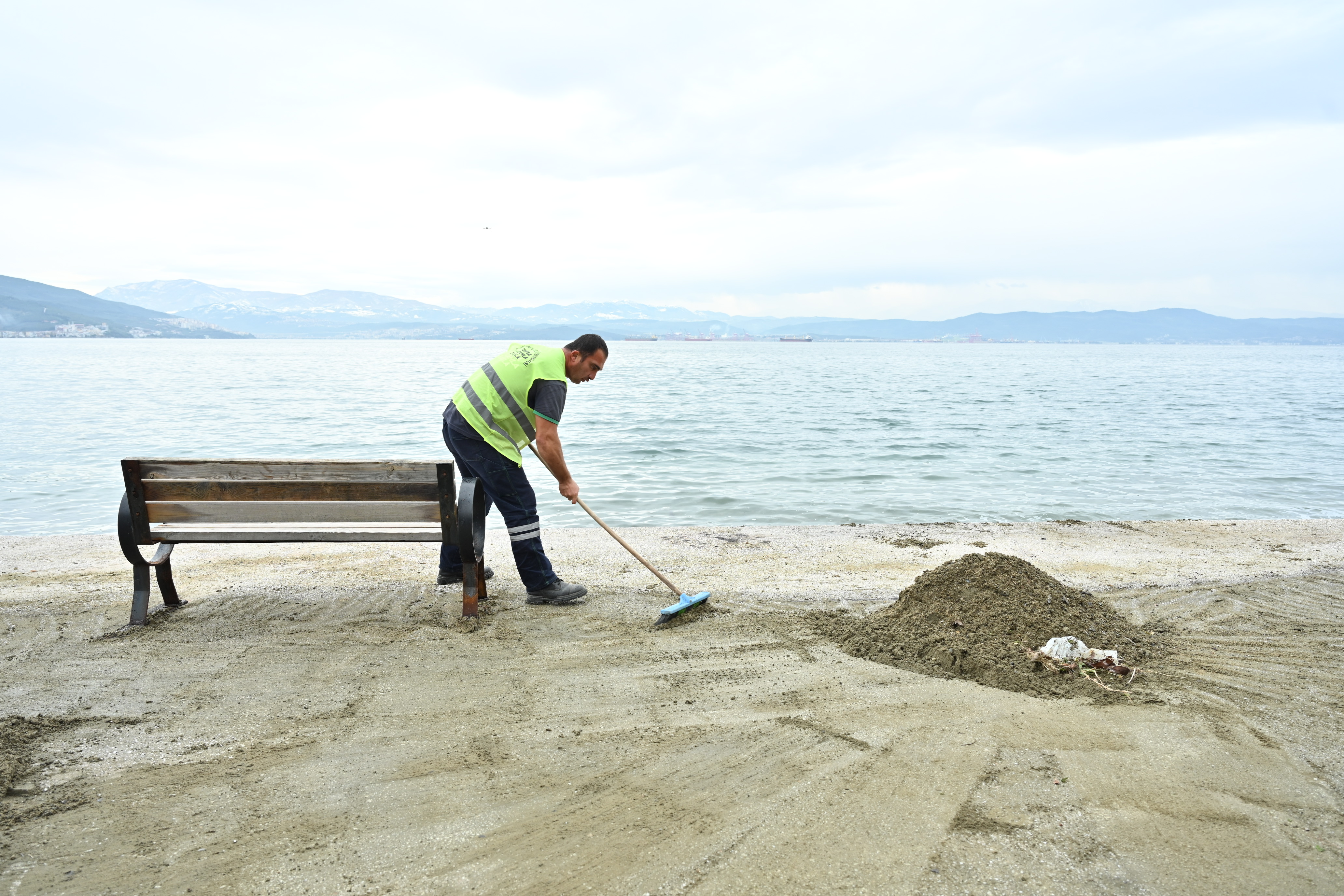 Bursa Büyükşehir Belediye Başkanı Alinur Aktaş, Gemlik’in Karacaali mahallesinin sahil bölgesinde devam eden temizlik çalışmalarını yerinde inceledi. Fırtınanın etkisinin birkaç gün daha süreceğini hatırlatan Başkan Aktaş, muhtemel olumsuzluklara anında müdahale etmek için tüm ekiplerin hazır beklediğini kaydetti. Ekiplerin hızlı hareket etmesi sayesinde ciddi bir olumsuzluk yaşanmadan duruma müdahale edildiğini kaydeden Başkan Aktaş, Park ve Bahçeler Dairesi Başkanlığı’nın 3 kepçe, 4 arazöz, 1 greyder, 4 kamyon, 10 kamyonet, 1 süpürge olmak üzere toplam 23 araç ve 90 personelle bölgede çalışma yaptığını vurguladı. Denizden sahile, 40 kamyonu aşkın malzeme taşındığını dile getiren Başkan Aktaş, BUSKİ tarafından Kurşunlu ve Gençali mahalleleri ile Cumhuriyet Mahallesi’nde de gerekli çalışmaların yapıldığını açıkladı.