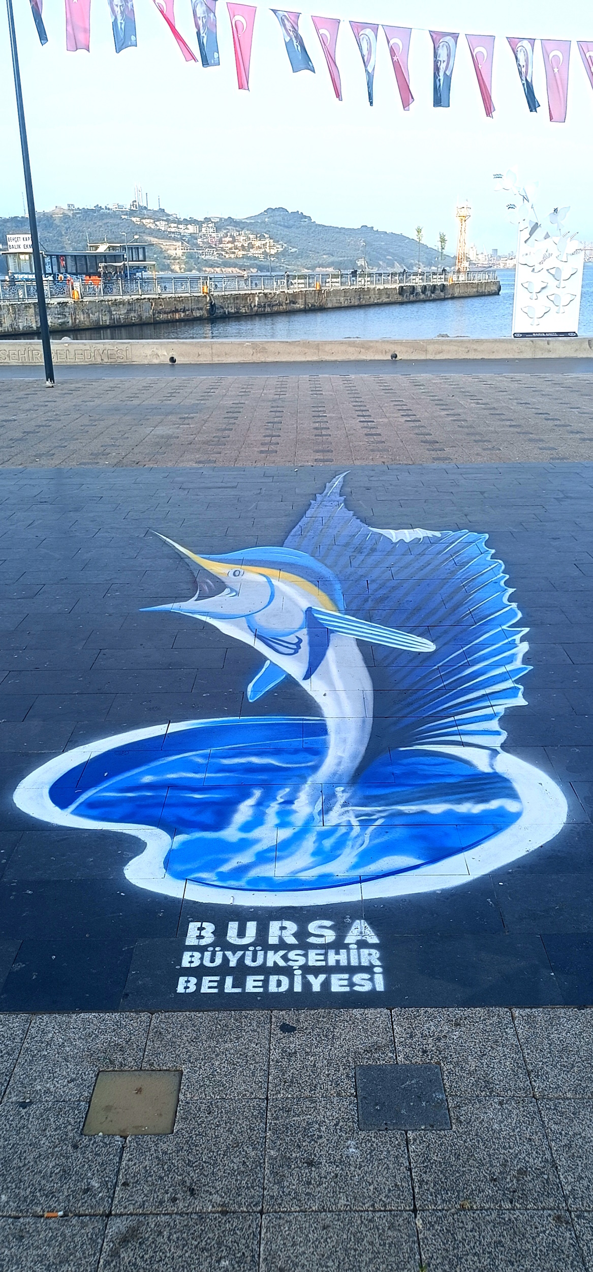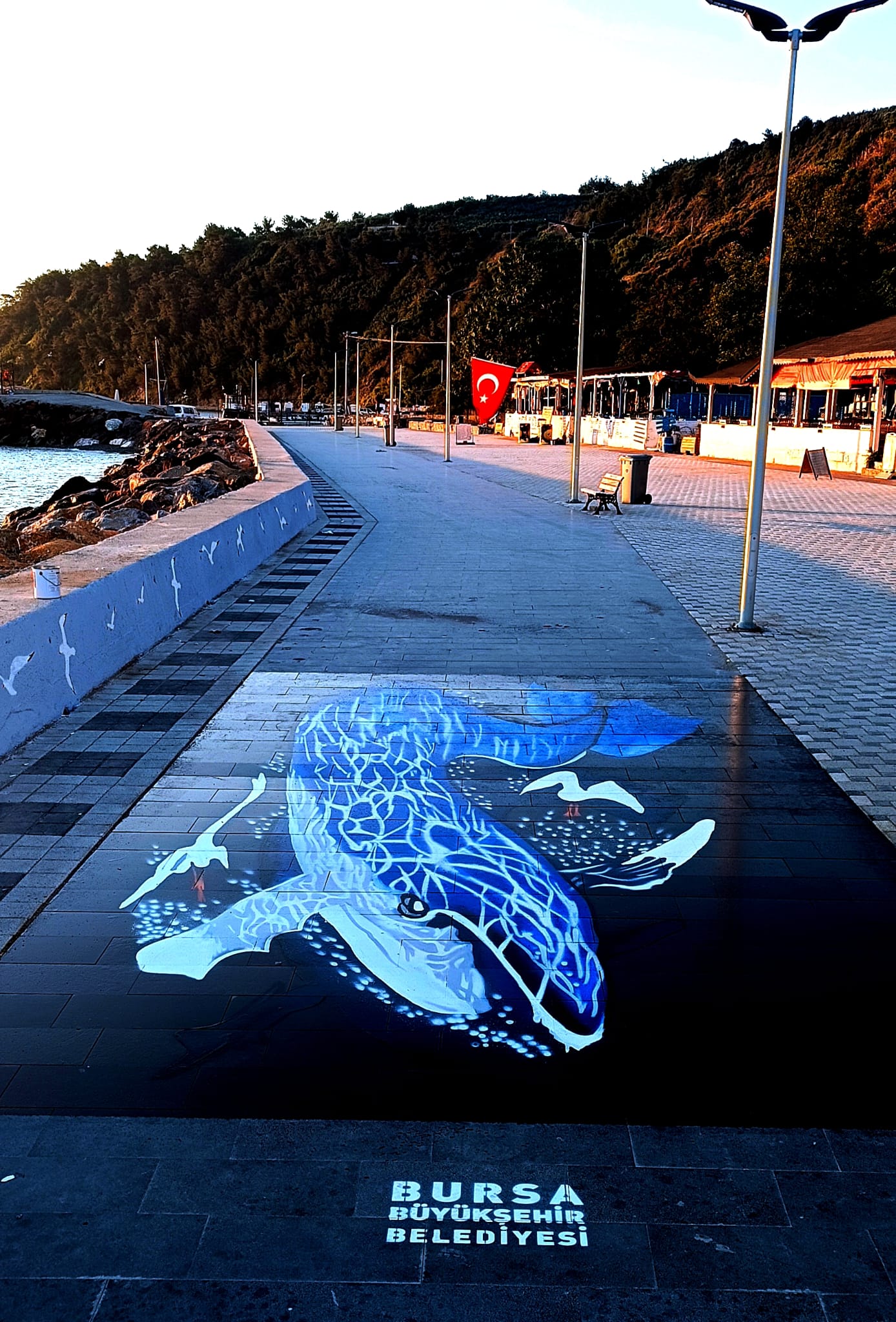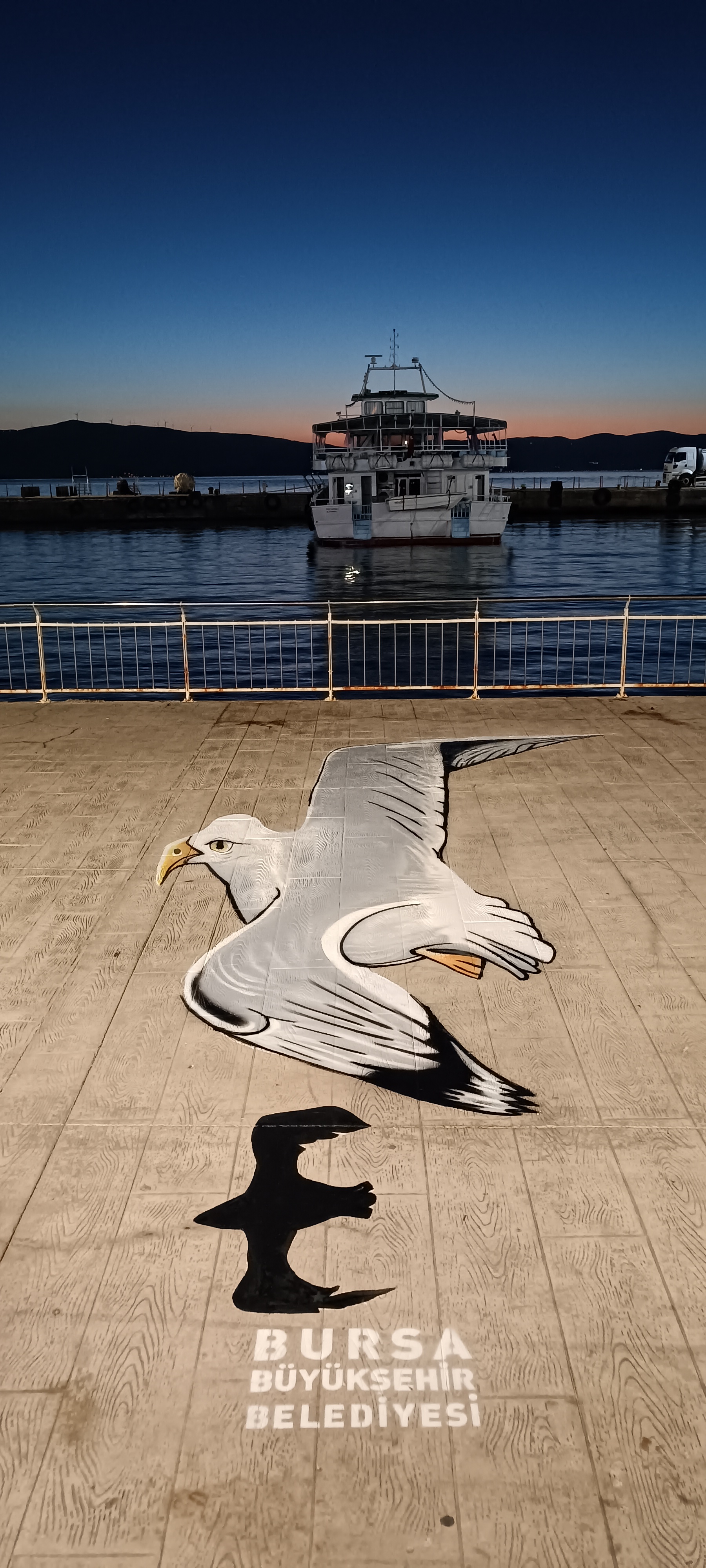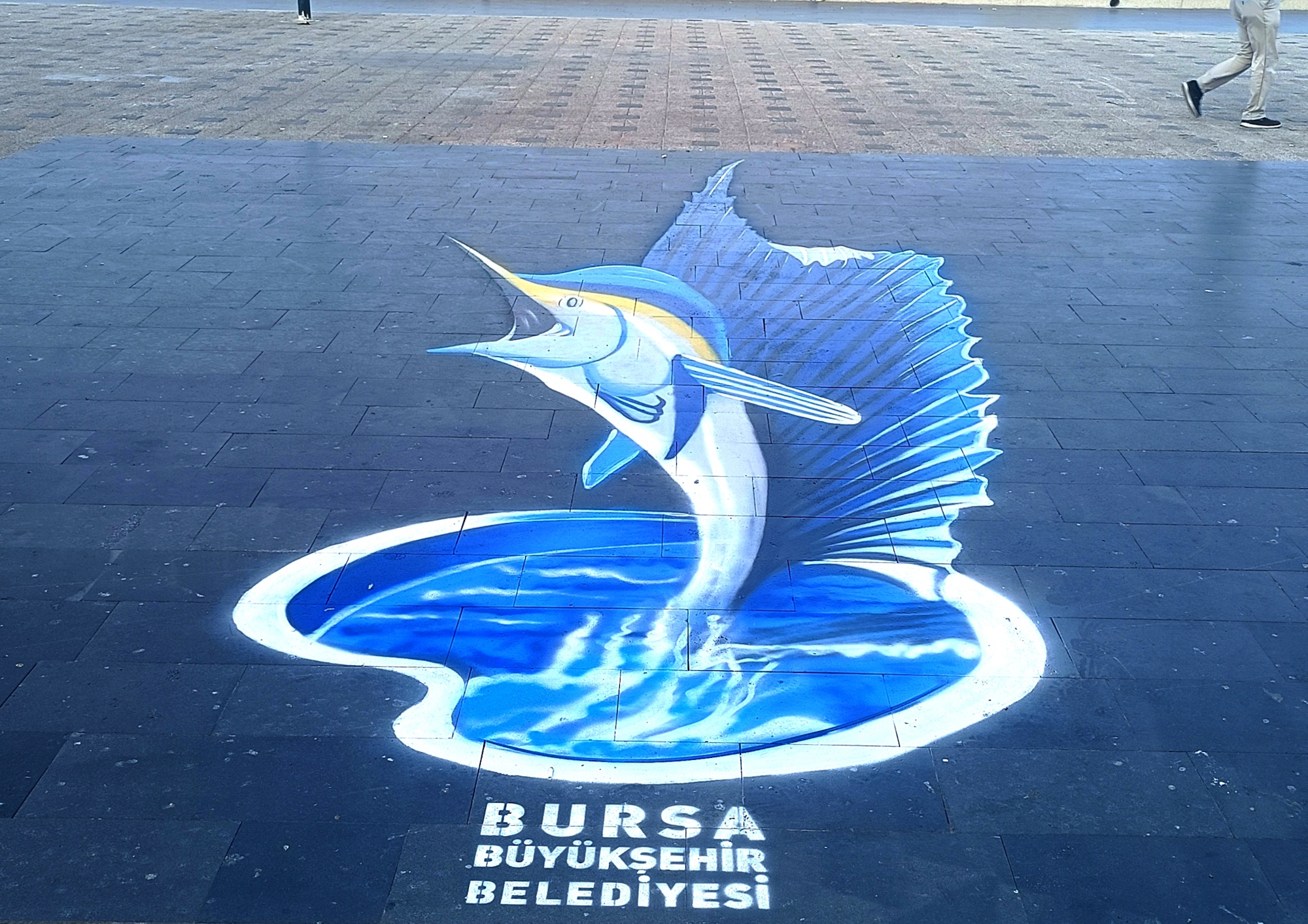 Bursa’nın estetik bir kent olması ve sanatla buluşması amacıyla çalışmalarını sürdüren Büyükşehir Belediyesi, cadde ve meydanlardaki modern kent imajını güçlendirmek için Kent Estetiği Şube Müdürlüğü bünyesindeki ressamlarıyla her geçen gün yeni çalışmalara imza atıyor. Türkiye'de halen yaygın olmayan, Avrupa’daki örneklerinde ise daha çok tebeşir gibi geçici boyalarla yapılan 3 boyutlu uygulamalar, Bursa'da vatandaşların uzun süre etkileşim halinde fotoğraflar çekebilmesi amacıyla dayanıklı özel boyalarla resmediliyor. 3D sokak boyama sanatı çalışmaları belli bir açıdan bakıldığında vatandaşlara şaşkınlık yaşatıyor. Boyaması tamamlanan Gemlik sahilindeki 3D kılıç balığı, Mudanya sahilindeki 3D martı ve Tirilye sahilindeki 3D Balina uygulamaları görenleri gülümsetiyor. Vatandaşlardan da olumlu tepkiler alan yeni 3 boyutlu sanat uygulamaları, özellikle yaya hareketliliğinin yoğun olduğu bölgelerde yaygınlaştırılacak.