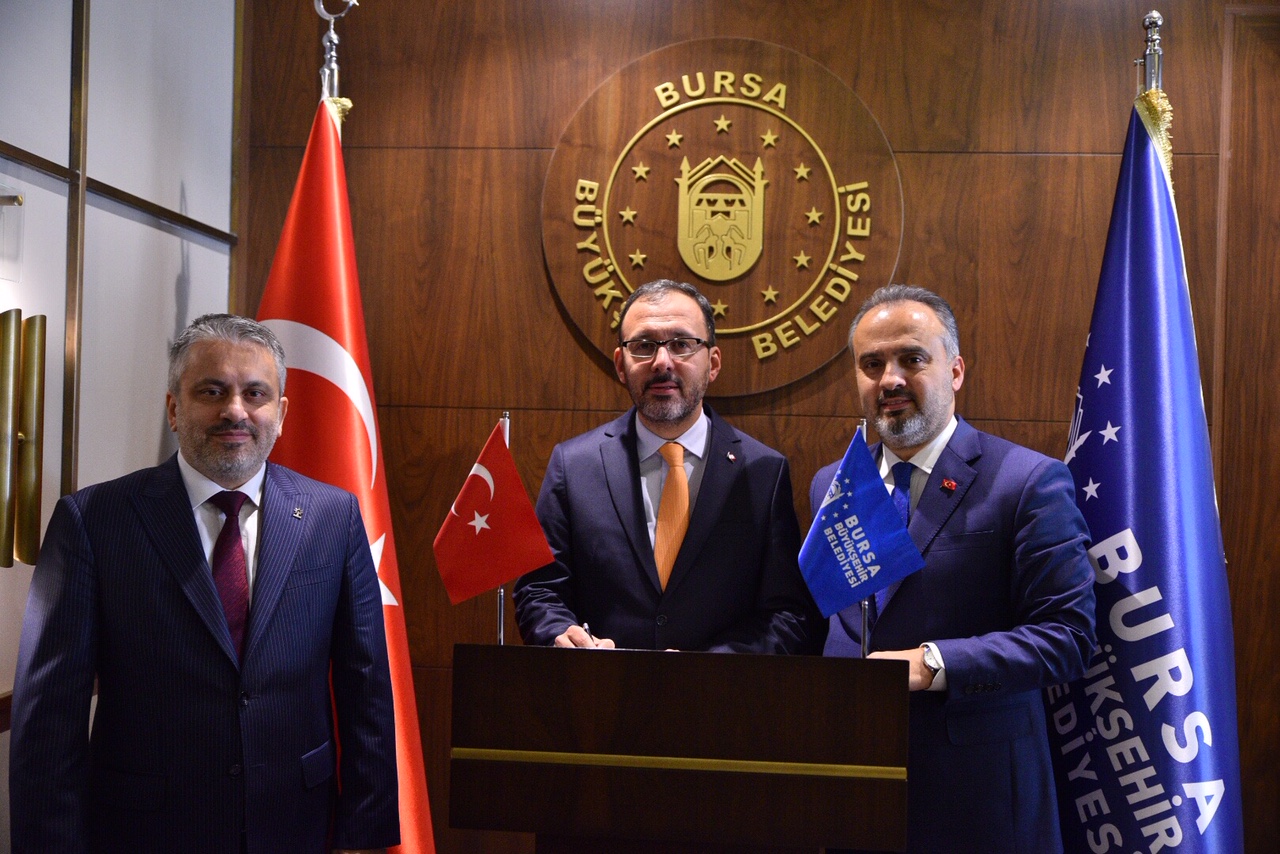 Gençlik ve Spor Bakanı Dr. Mehmet Muharrem Kasapoğlu ise tarih ve kültür şehri Bursa’da bulunmaktan büyük mutluluk duyduğunu söyledi. Başkan Aktaş’a yeni dönem için ‘Hayırlı olsun’ demek istediklerini ve bu yüzden Büyükşehir Belediyesi’ne geldiklerini belirten Bakan Kasapoğlu, Bursa’da yapılan spor yatırımlarının bundan sonra hem bakanlık hem de belediyeler eliyle katlanarak gelişeceğini ifade etti. Bursa’nın spor algısının Türkiye ve bakanlık için önemli olduğunu, bu manada bakanlığın tüm imkanlarını seferber ederek şehirdeki yatırımları çok daha ileri noktalara taşımak istediklerini vurgulayan Bakan Kasapoğlu, “Bursa, bizim için önemli bir marka. Sporcu potansiyeli açısından çok zengin bir ilimiz. İnşallah, gerçekleştireceğimiz yatırımlarla birlikte bu güzide markamızı çok daha ileri noktalara taşımış olacağız” şeklinde konuştu.