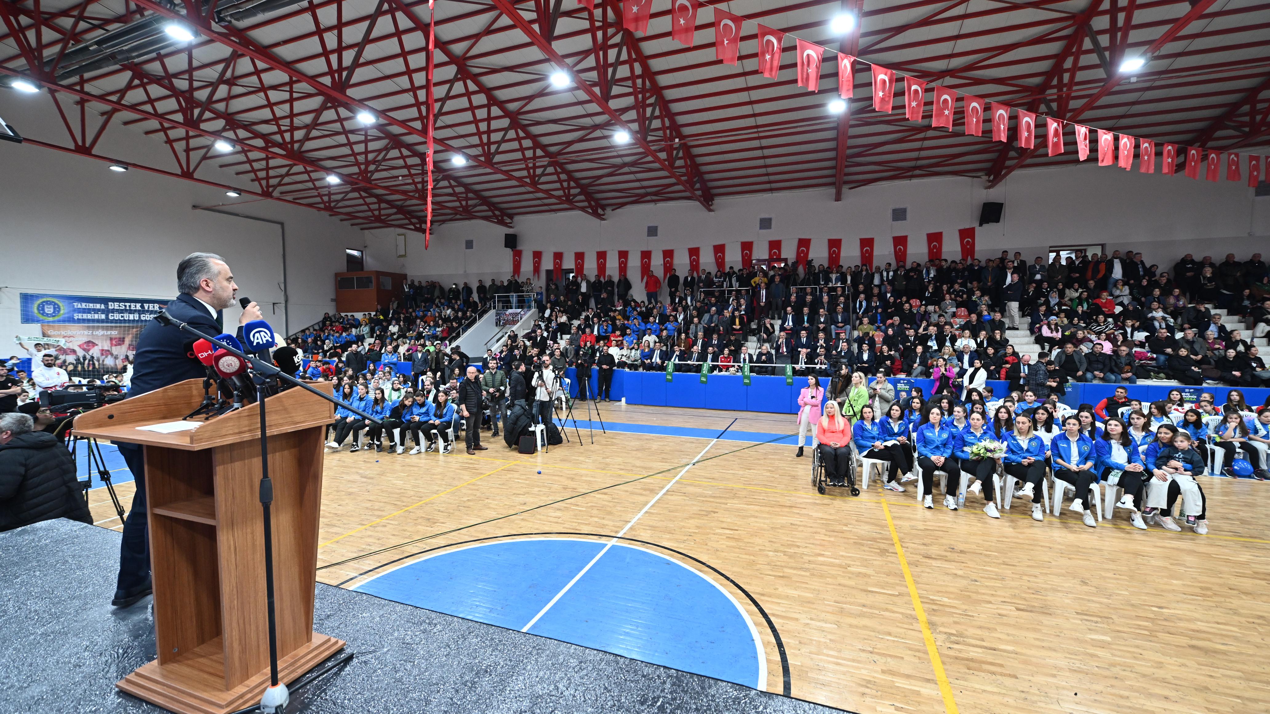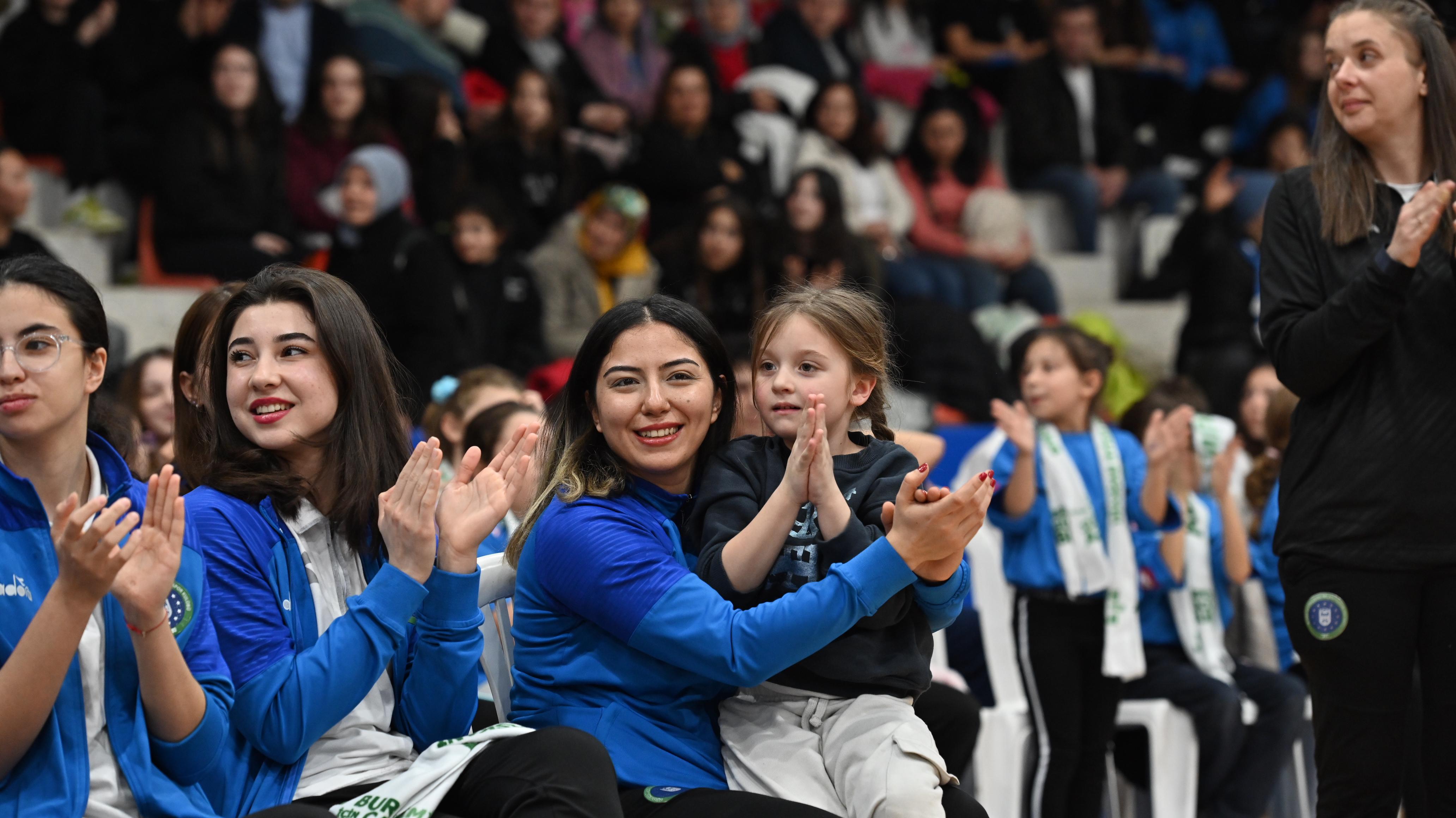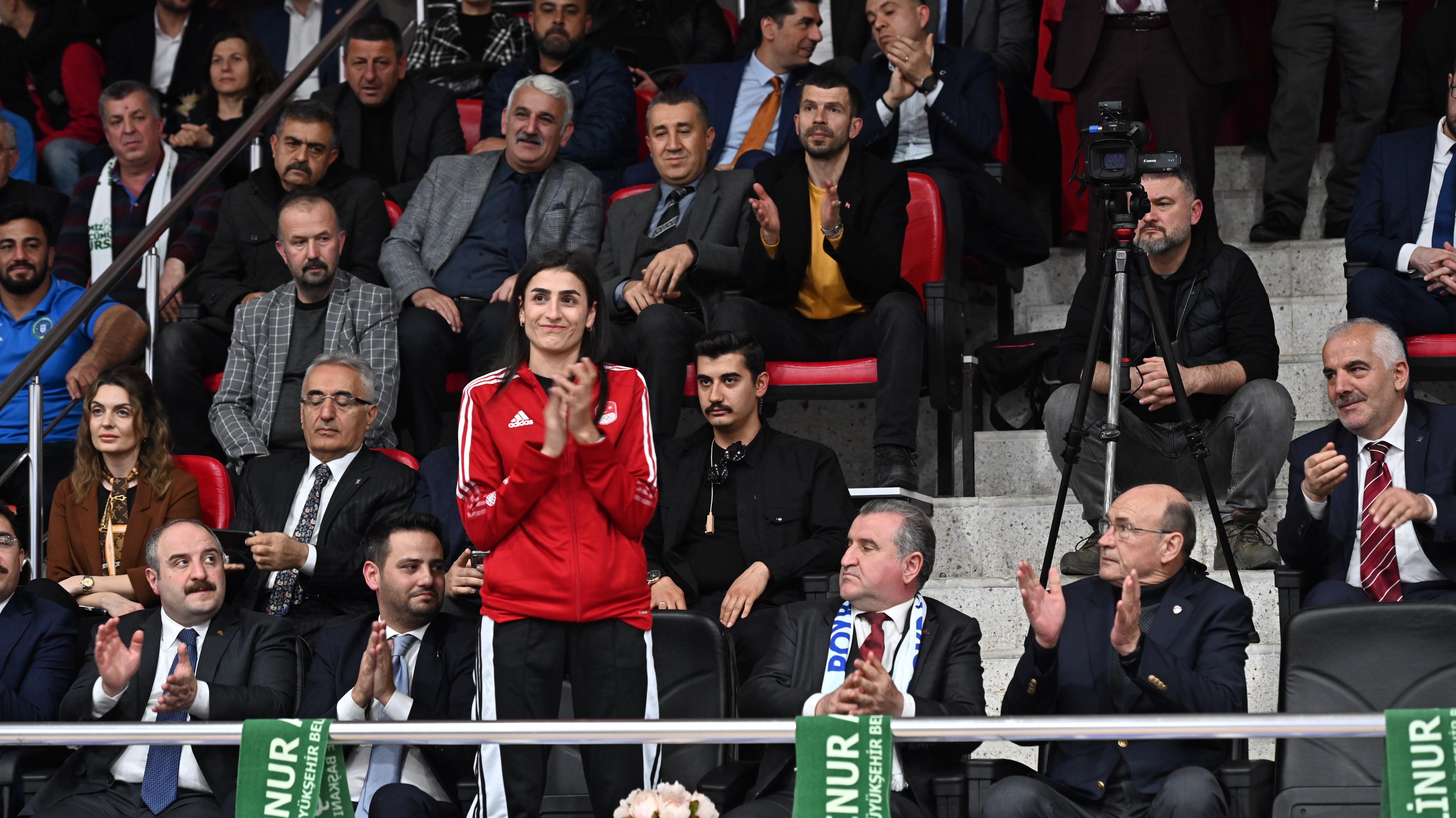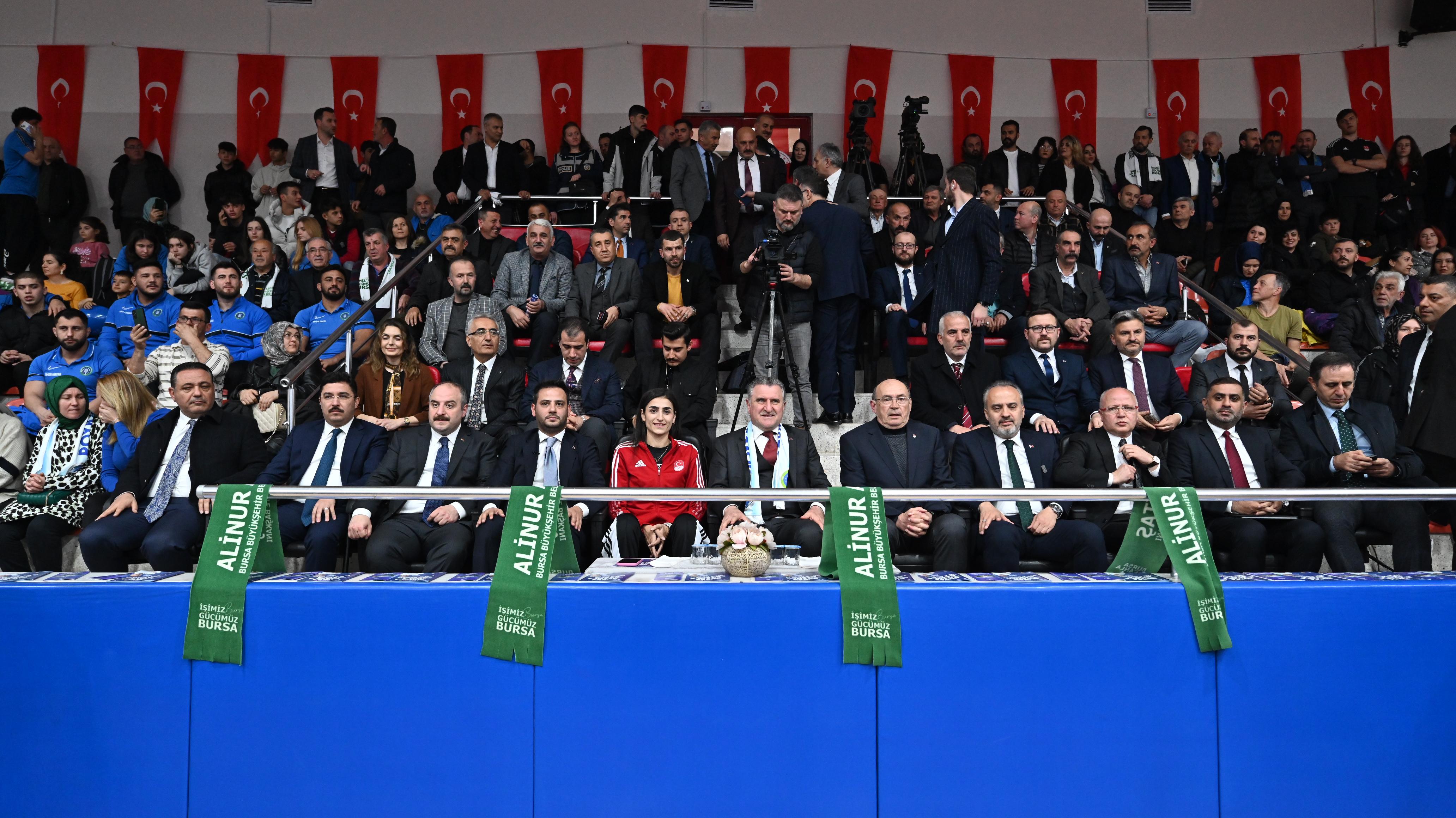 Gençlik ve Spor Bakanı Osman Aşkın Bak, sporculara önem veren Bursa büyükşehir Belediyespor’a, antrenörlere teşekkür ederek başarılarından dolayı Poyrazın Kızlarını tebrik etti. Bursa’da gördüğü tablonun Türk sporunun geleceğinin çok parlak olduğunu gösterdiğini söyleyen Bakan Bak, “Bursa’nın her köşesinde Gençlik ve Spor Bakanlığı ile Bursa Büyükşehir Belediyesi’nin eserlerini görüyoruz. Bize iletilen taleplerle yakından ilgileniyoruz. Spor salonu ve stadyum ihtiyacı dile getirildi. Biz de Mudanya’ya modern bir spor kompleksi yani sporcu merkezi için çalışacağız. Planları alın gelin, yeri bulun. Arkanızdayız. Mudanya’ya yakışır bir eseri ilçeye kazandıracağız. Türkiye’de spor devrimleri devam ediyor. Pek çok dünya şampiyonasını ülkemizde organize ettik. Tüm ailelere teşekkür ediyorum. Burada gördüğümüz manzara bizleri umutlandırıyor. Bizim en önemli görevimiz, bağımlılıkla mücadeledir. Çocuklarımızı tesislerimize spor yapmaya bekliyoruz” diye konuştu.