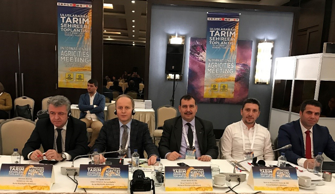 Uluslararası Tarım Şehirleri Toplantısı, Türkiye’den ve çok sayıda ülkeden yoğun katılımla Konya’da gerçekleştirildi. İnsanlık için tarımın önemi, sorunları ve geleceğine vurgu yapılarak yerel yönetimlerin önemine dikkat çekilen toplantıya Bursa Büyükşehir Belediyesi adına Kırsal Hizmetleri Dairesi Başkanı Yetişkan Keskin ve Tarım A.Ş. Genel Müdürü Mustafa Bektaş katıldı. Bursa’da kırsal kalkınma ve tarımsal hizmetlerle ilgili çalışmalar ve tarımsal vizyon projeleri hakkında bilgiler verilen toplantıda, ülkenin tarım potansiyeli ile ilgili değerlendirmelerde bulunuldu.