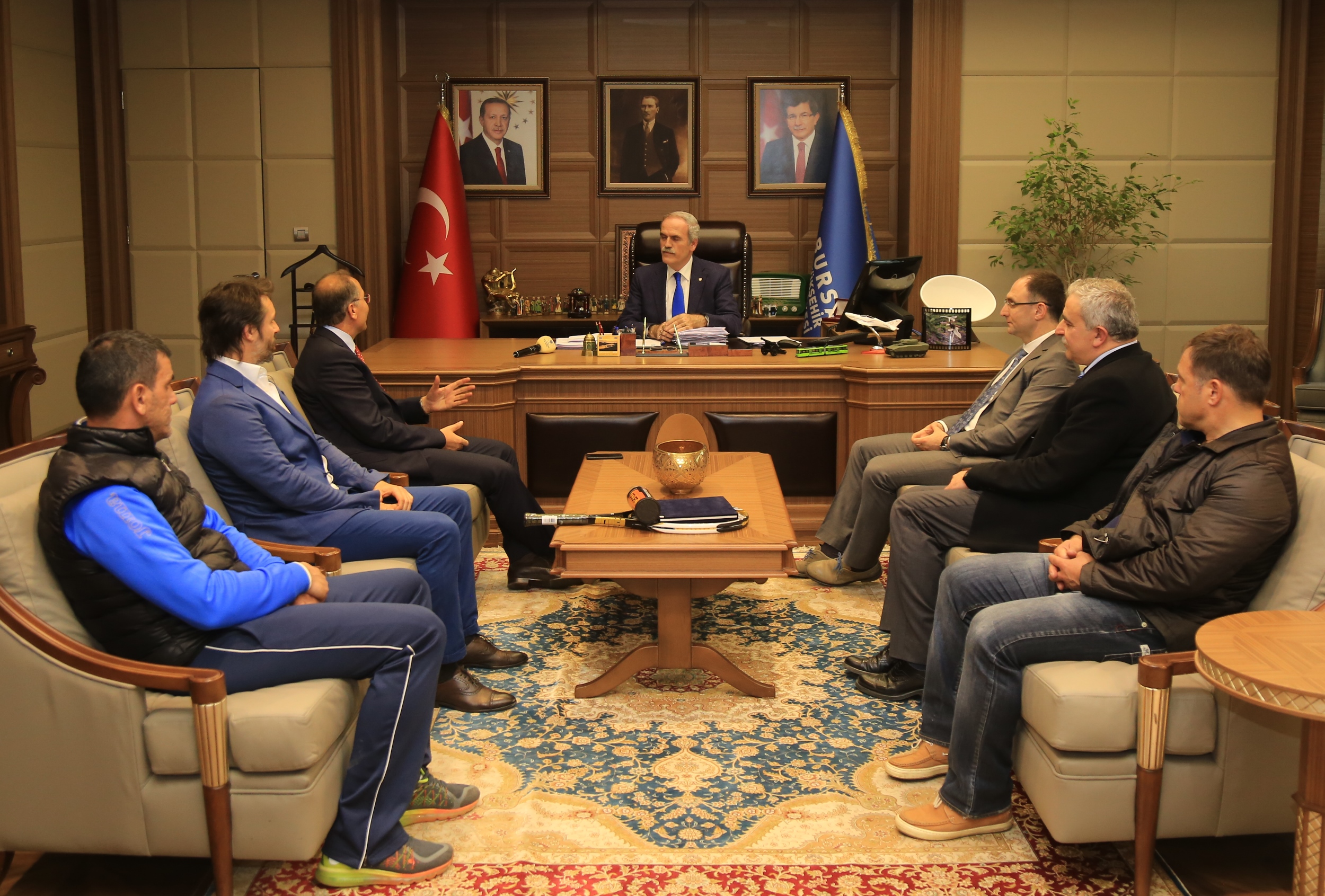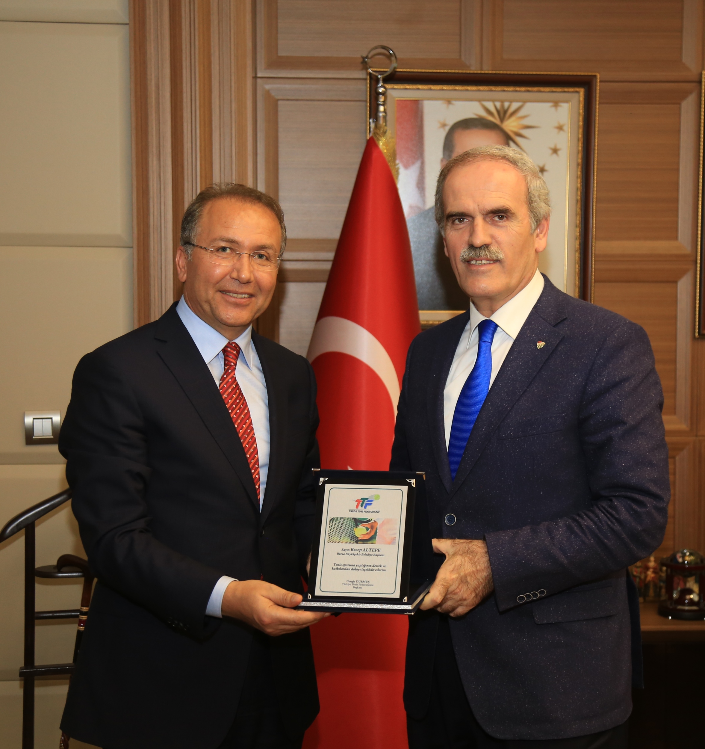 Büyükşehir Belediye Başkanı Recep Altepe, Bursa Gençlik Hizmetleri ve Spor İl Müdürü Süleyman Şahin ve Tenis Federasyonu Başkanı Cengiz Durmuş ile Büyükşehir Belediyesi yeni hizmet binasında bir araya geldi. Bursa’da sporun önemine işaret eden Başkan Altepe, “Bursa’nın spor kenti kimliğini de öne çıkarmak üzere, sporu ve sporcularımızı destekliyor, kentimizin spor altyapısını güçlendirmeye ve tesisleşmeye önem veriyoruz. Bursa, sporun tüm branşlarıyla da anılsın isteriz. Bursa’da tenis branşı da gün geçtikçe daha değer kazanıyor. Spora desteğe devam ediyoruz” diye konuştu.