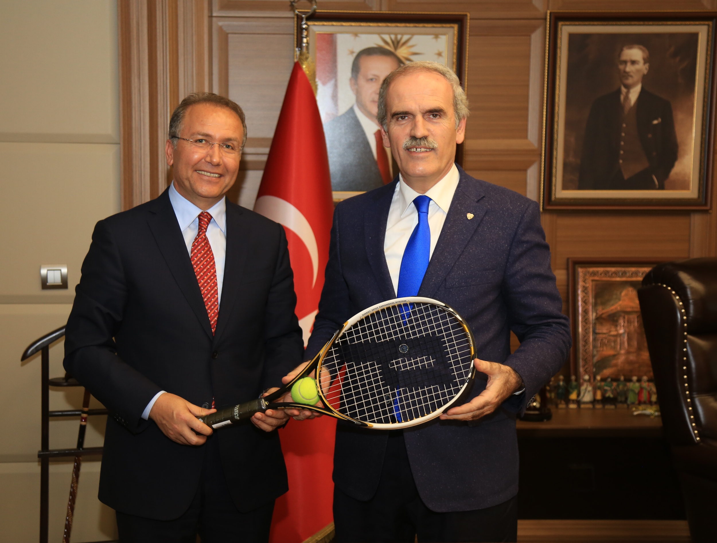 Bursa’da spora ve sporcuya büyük destek veren Başkan Altepe’ye teşekkür eden Durmuş ve Şahin, kentte teniste de altyapının yükseldiğini ve bu noktada tesisleşmenin önem kazandığını kaydetti. Bursa’da sporun tesisleşmesine önem veren Başkan Altepe’nin gençleri spora teşvik ettiğini anlatan Durmuş, Bursa’nın teniste önemli şehirlerden biri olduğunu ifade etti. Gençlik Hizmetleri ve Spor İl Müdürü Süleyman Şahin de Bursa’nın sporda öncü olduğunu, Büyükşehir Belediye Başkanı Recep Altepe’nin destekleri ve Büyükşehir Belediyesi’nin hizmetleriyle kentin sporda da öncü olduğunu söyledi. Bursa Büyükşehir Belediyespor Kulübü Başkan Yardımcısı İlhan Satık’ın da katıldığı ziyarette, Maria Sharapova ve Roger Federer gibi dünyaca ünlü tenisçilerin katılacağı bir turnuvanın da 2017 yılında Bursa’da planlanmasına yönelik fikir alışverişinde bulunuldu.