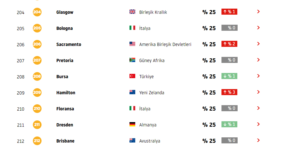 Trafik sıkışıklığının yüzde 32 olarak belirlendiği Ankara, listede 100’üncü sırada yer alırken, İzmir 134, Antalya 144 ve Adana ise 180’inci sıraya yerleşti. Araştırmada yer alan Türk şehirleri arasında Bursa, trafikte rahatlama sağlanan kentlerden biri oldu. TomTom Trafik Endeksinin 2017 verilerine trafiği en sıkışık 67’nci kent olarak giren Bursa, trafikteki yüzde 5’lik rahatlama ile 2018 listesinde 93 kenti geride bırakarak 160'ıncı sırada yer almıştı. Bursa'nın 2019 yılındaki trafik sıkışıklığında da bir önceki yıla göre yüzde 1’lik bir rahatlama sağlanırken, dünya kentleri sıralamasında da 208’inci sıraya geriledi. Böylelikle Bursa son 2 yılda 141 kenti geride bırakarak, trafiği gün geçtikçe rahatlayan kentler arasında yer aldı.