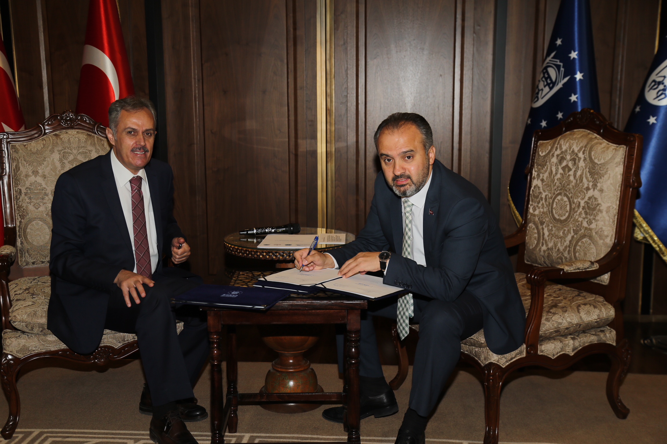 Bursa’da tespit edilen yetim ve ihtiyaç sahibi öğrencilerin eğitim ortamını destekleyen, aynı zamanda ailelerin ihtiyaçlarını karşılayarak eğitimin her yönden güçlenmesini sağlayan protokol, Ankara yolundaki başkanlık binasında imzalandı. Protokol; Büyükşehir Belediyesi adına Başkan Alinur Aktaş, İl Milli Eğitim Müdürlüğü adına da İl Müdürü Veli Sarıkaya arasında imzalandı.