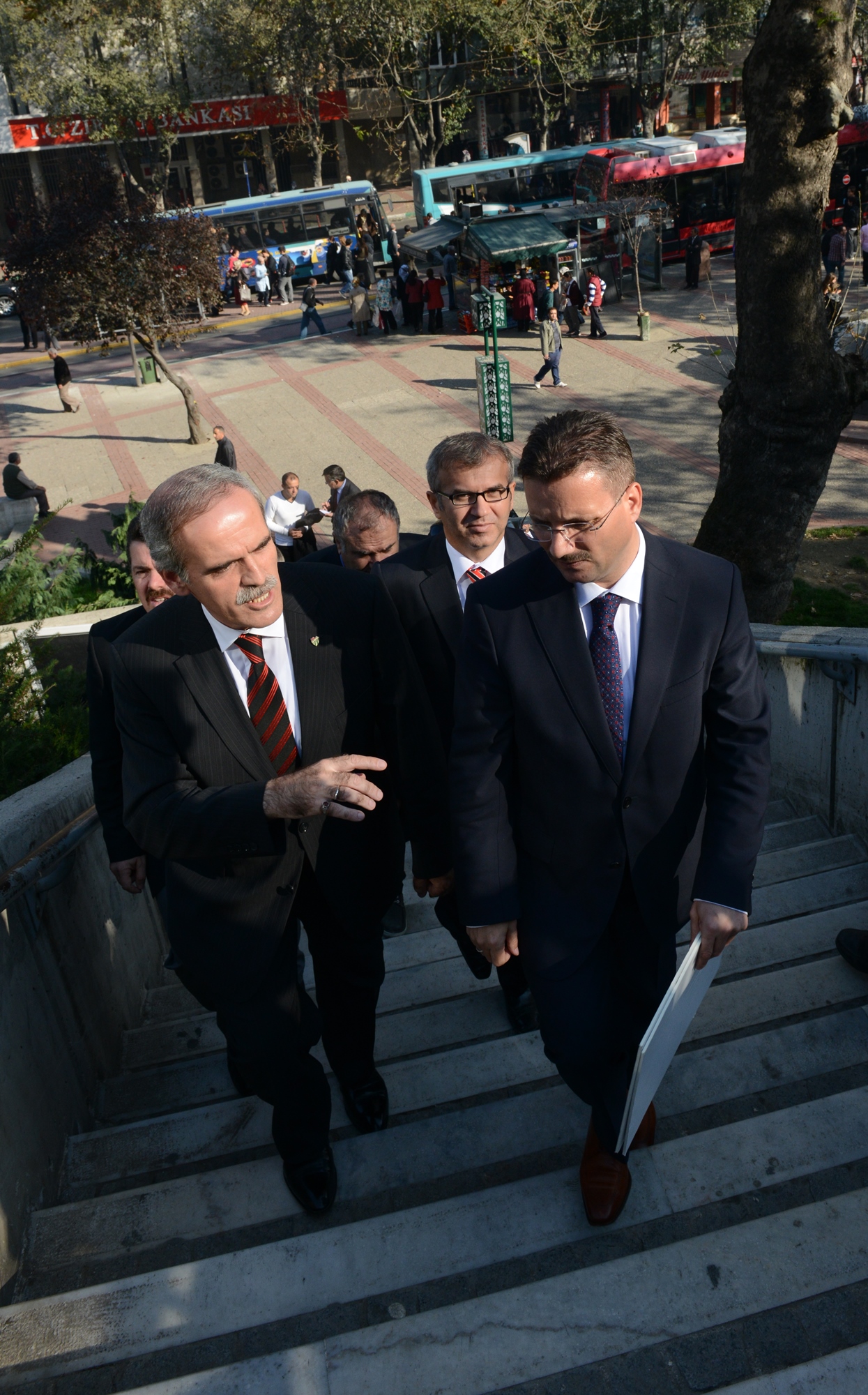 - ÇARŞI BÖLGESİNDEN HİSAR İÇİNE GEÇMEK İSTEYENLERİN ÇIKARKEN ZORLUK YAŞADIKLARI BALİ BEY HANI MERDİVENLERİNE ALTERNATİF OLARAK YAPILACAK İLK YÜRÜYEN MERDİVEN ALANINDA İNCELEME YAPAN BÜYÜKŞEHİR BELEDİYE BAŞKANI RECEP ALTEPE, BİR YANDAN VATANDAŞI TOPLU TAŞIMAYA YÖNLENDİRİRKEN DİĞER YANDAN SAĞLIKLI HAYAT İÇİN YAYALAŞTIRMAYI ARTIRMAK İSTEDİKLERİNİ SÖYLEDİ.