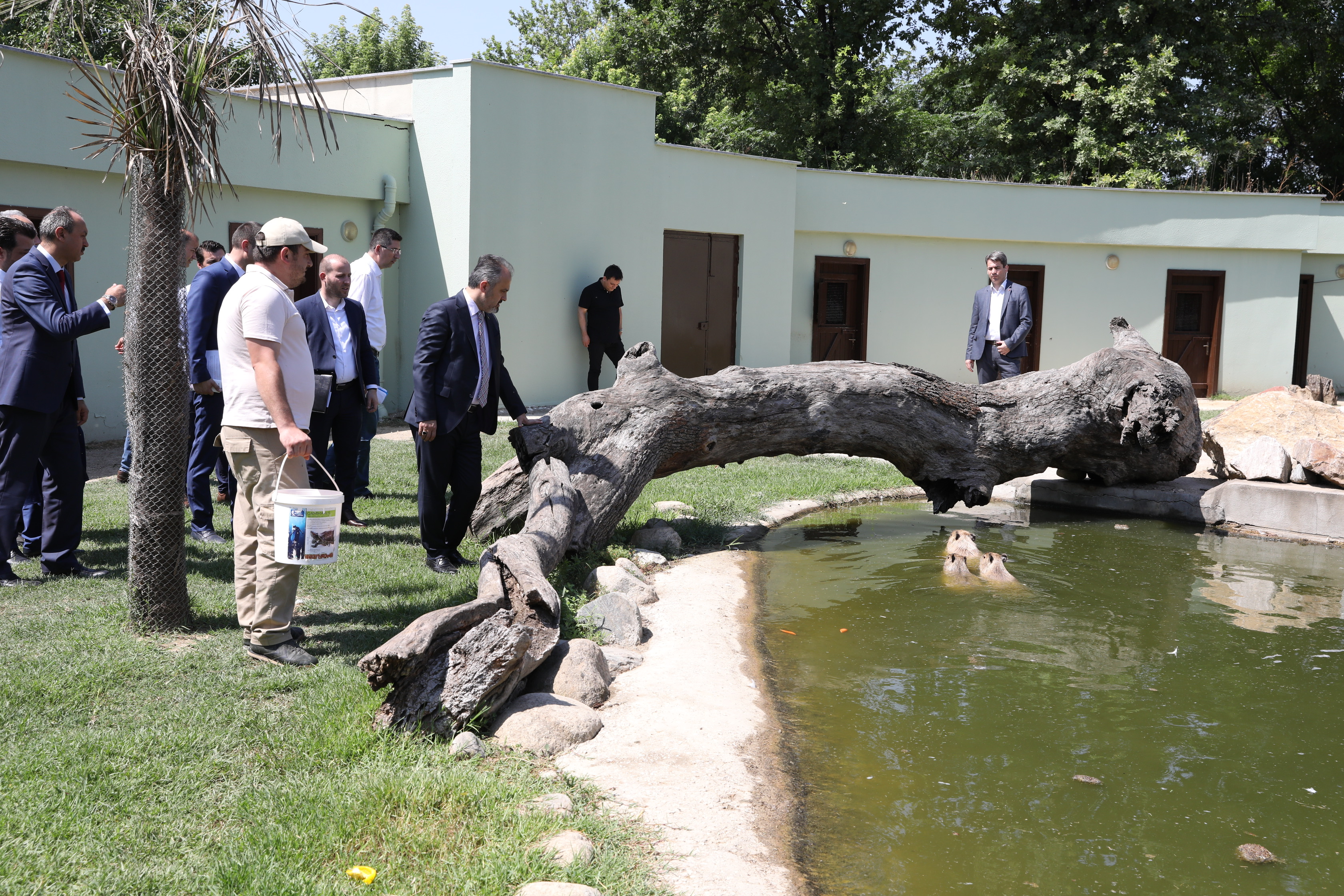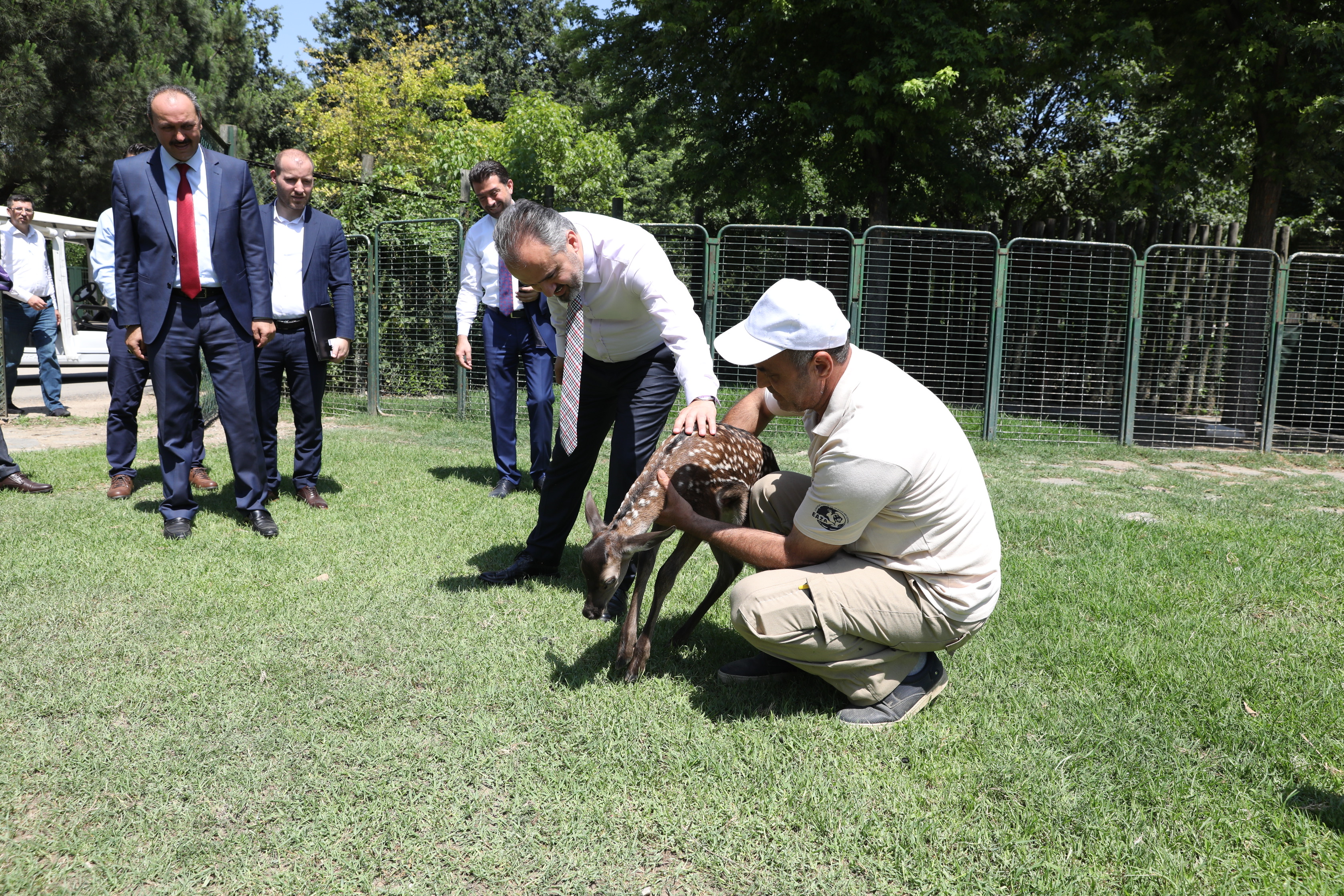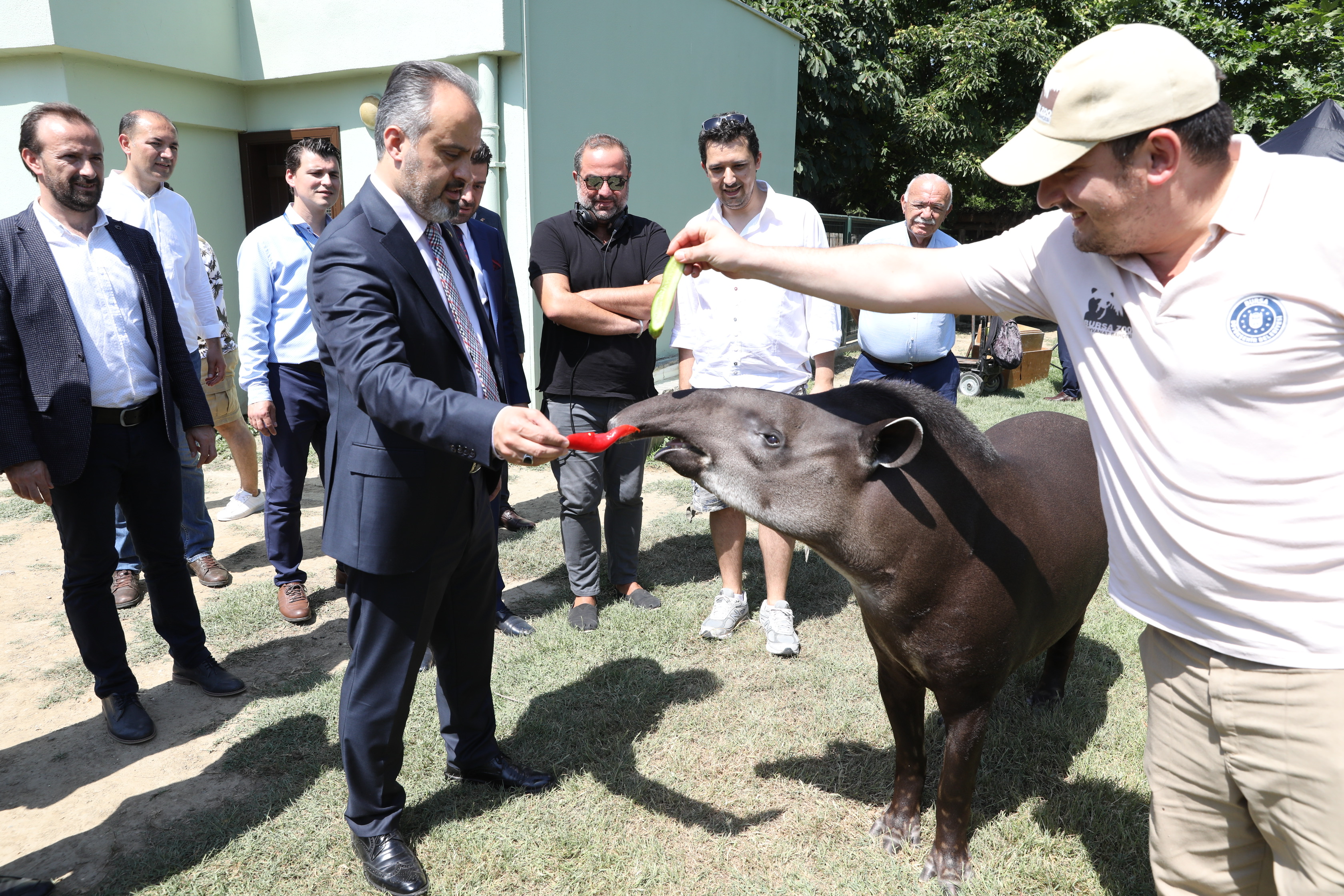 Başkan Alinur Aktaş, Bursa Hayvanat Bahçesi’nde incelemelerde bulundu. Parka gelişinde ilk olarak karıncayiyen barınağına giden Başkan Aktaş, uzun gırtlak yapısına sahip olan hayvan hakkında Büyükşehir bürokratlarından bilgiler aldı. Daha sonra anavatanı Güney Amerika olan ve en büyük fare türü olarak bilinen kapibara ile Güney Amerika ile Güneydoğu Asya’nın ormanlık bölgelerinde yaşayan tapir barınaklarına giden Başkan Aktaş, tapir’i elleriyle besledi. Başkan Aktaş, alageyiklerin bulunduğu barınakta ise yeni doğan bir hayvana ‘Alaca’ ismini koydu. Başkan Aktaş’ın Zoopark’ta son durağı ise zebralar ile zürafaların birlikte yaşadığı bölüm oldu. Burada zürafaları elleriyle besleyen Başkan Aktaş, zebraların artan nüfusu ile hayvanat bahçesinin geleceğine ilişkin açıklamalar yaptı.