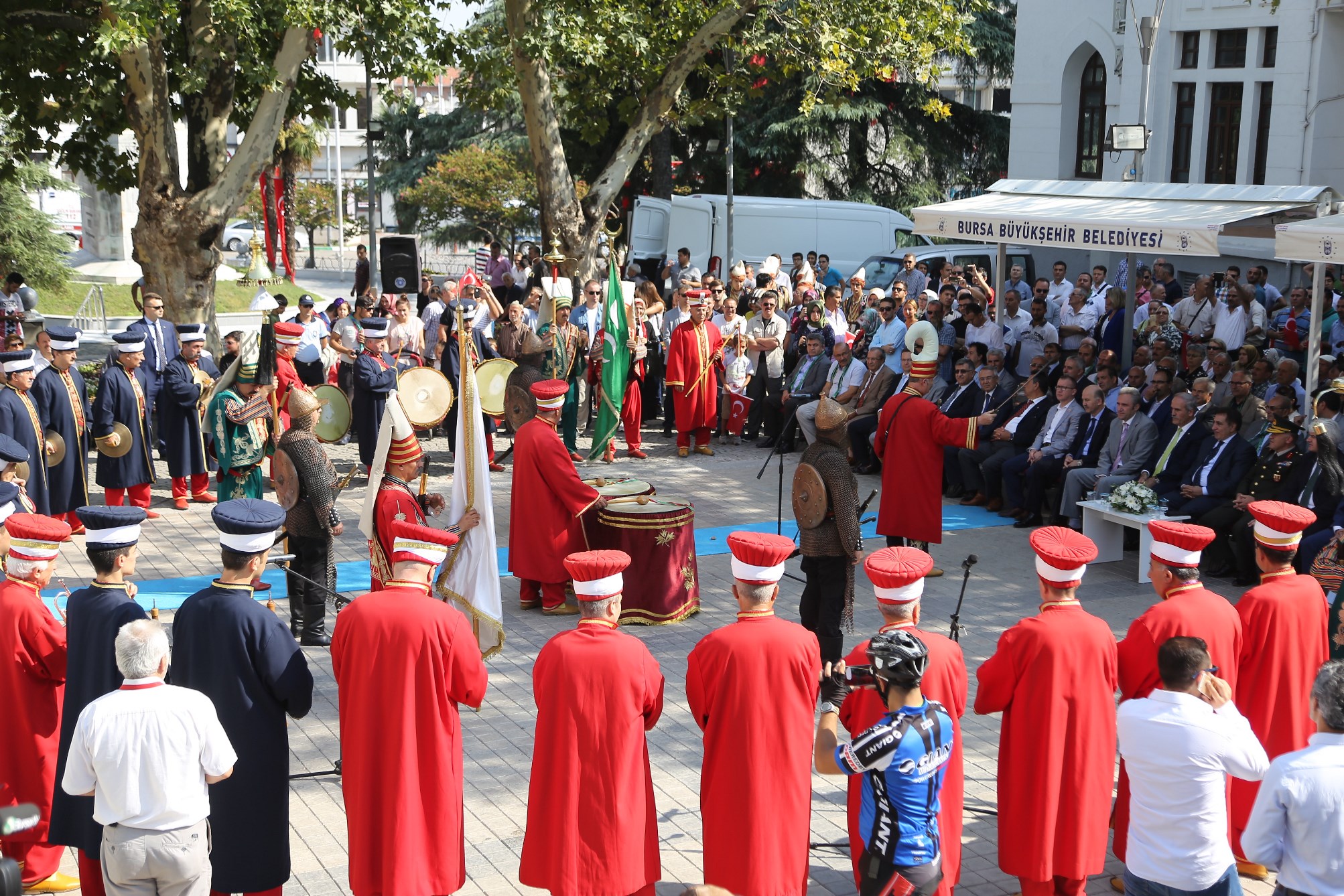 Öğrencilerin şiirler okuduğu törenlerde, Büyükşehir Belediye Bandosu, Bursa Mehter Takımı ve Tahtakıran Kılıç Kalkan Ekibi de gösterileriyle kurtuluş coşkusunu ikiye katladı.