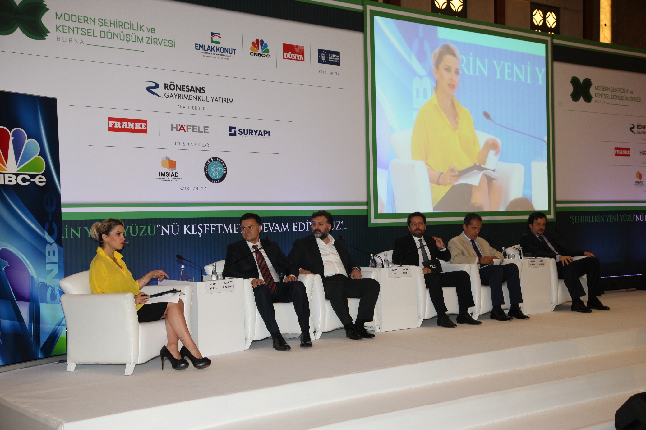 Bursa Büyükşehir Belediyesi Başkanı Recep Altepe’nin himayesinde gerçekleştirilen zirve, 3 panelden oluştu. İlk panelin moderatörlüğünü, bu önemli buluşmanın mimarlarından CNBC-E Yayın Yönetmeni Melda Yücel üstlendi. “Yüksekten Uçanlar” adını taşıyan panelde, Rönesans Gayrimenkul Yatırım Yönetim Kurulu Başkan Yardımcısı Murat Özgümüş, Sur Yapı Yönetim Kurulu Başkanı Altan Elmas, NEF Yönetim Kurulu Üyesi Erden Timur, Hafele Türkiye İcra Kurulu Başkanı Hilmi Uytun ve Franke Güneydoğu Avrupa, Kuzey Afrika, Orta Doğu Kafkasya Bölge Direktörü Özgen Özkan konuşmacı olarak yer aldı. Kentsel dönüşümde şirketlerin üstlendikleri rollerle başarı hikayelerini paylaşan panelistler, yeşil binalar, doğa ile uyum içinde tasarlanan ve enerji verimliliğini ön plana çıkaran sürdürülebilir ürünlerle geleceğin yeşil ve akıllı iş modellerini de tartışma fırsatı yakaladı.