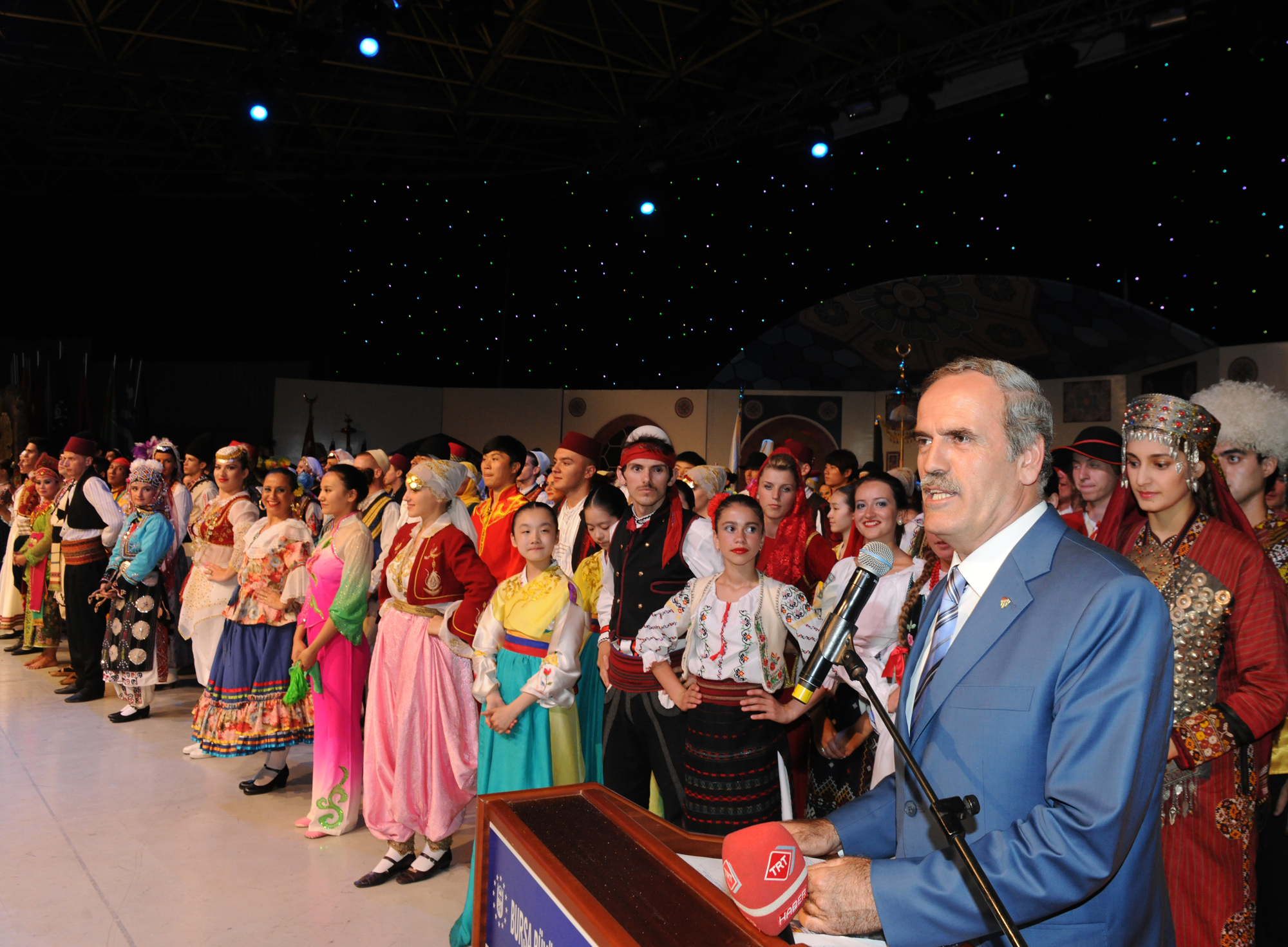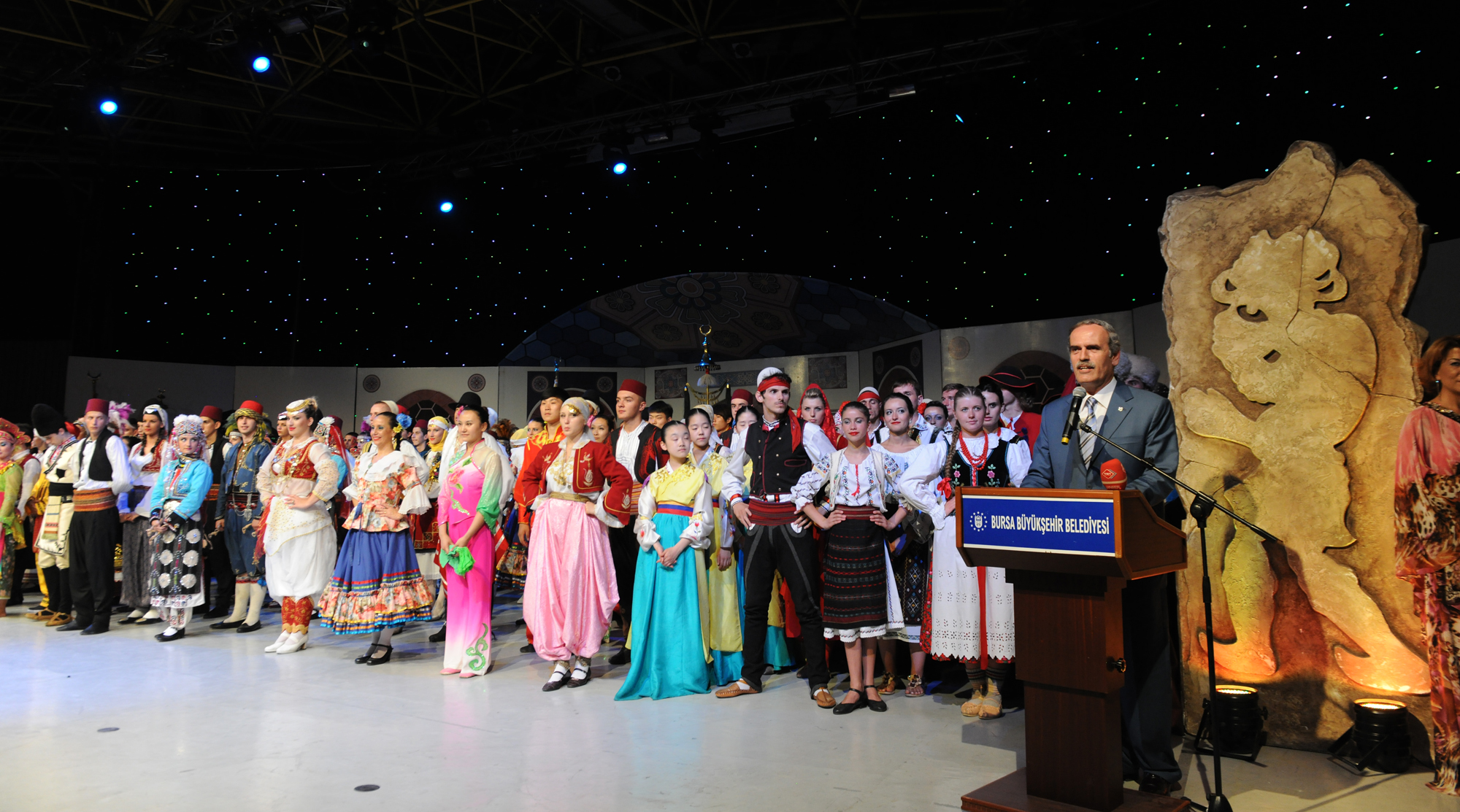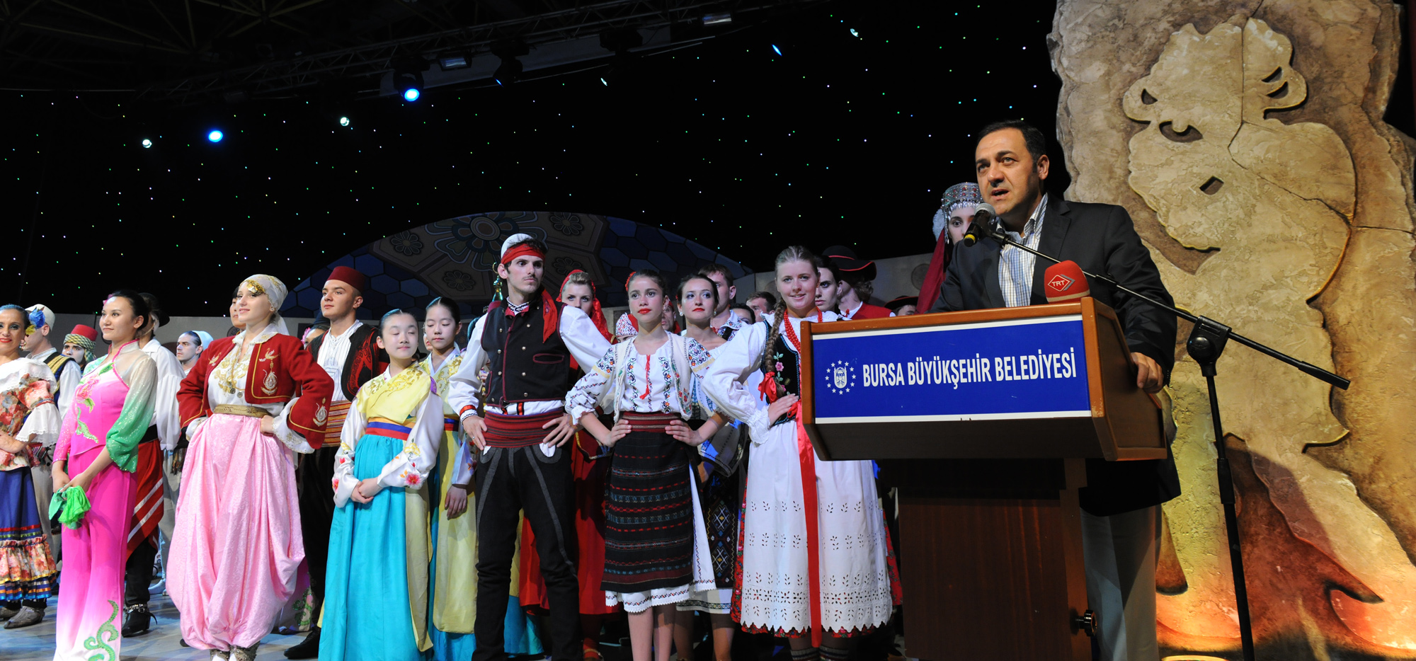 Büyükşehir Belediye Başkanı Recep Altepe, 26 yıllık geçmişi olan yarışmanın bugünlere gelmesinde emeği olanları şükranla anarak başladığı konuşmasında, “Bu organizasyon yarım asırlık bir organizasyon. Eskiden bugüne uzanan coşkuyla her yıl bu yarışmayı izliyoruz. Bursa, kültürlerin ve medeniyetlerin yatağı. Dünyanın dört bir yanından, tüm coğrafyaların insanları burada bir arada. Tüm ülkelerin dansçıları, Bursa’da güzel gülümsemeleriyle ülkelerini ve kültürlerini tanıtacaklar. Bu, büyük bir misyon. Onlar buraya kardeşlik ve dostluk kurmak, barış ve hoşgörüyü yaymak için geldiler. Barış ve hoşgörü hepimize lazım. Herşey sevgi ve barış ortamında gelişir” diye konuştu.