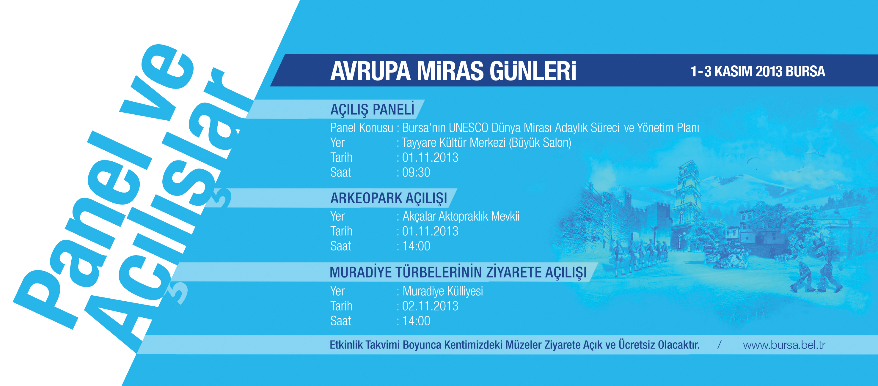 - Bursa’da, ‘Kırsal ve Kentsel Mirasın Birlikteliği’ temasıyla gerçekleştirilecek olan ‘Avrupa Miras Günleri’, 1 Kasım Cuma günü (YARIN) başlıyor.