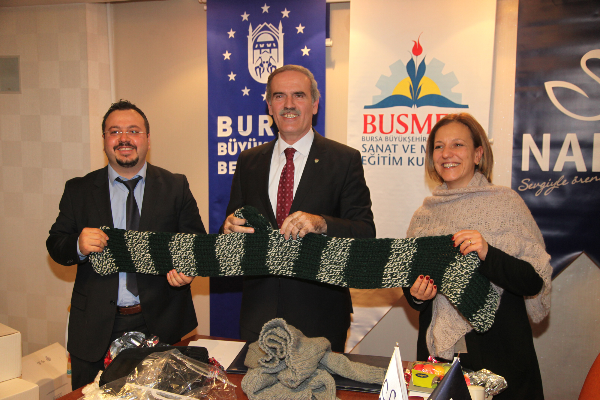 Protokol töreninin ardından Başkan Altepe, NAKO Genel Müdür Yardımcısı Özlem Karakaş´a el yapımı İznik çinisi hediye etti. Karakaş da Başkan Altepe´ye el örgüsü kazak, Bursaspor atkı ve beresi ile firma ürünlerinden oluşan bir butik takdim etti.