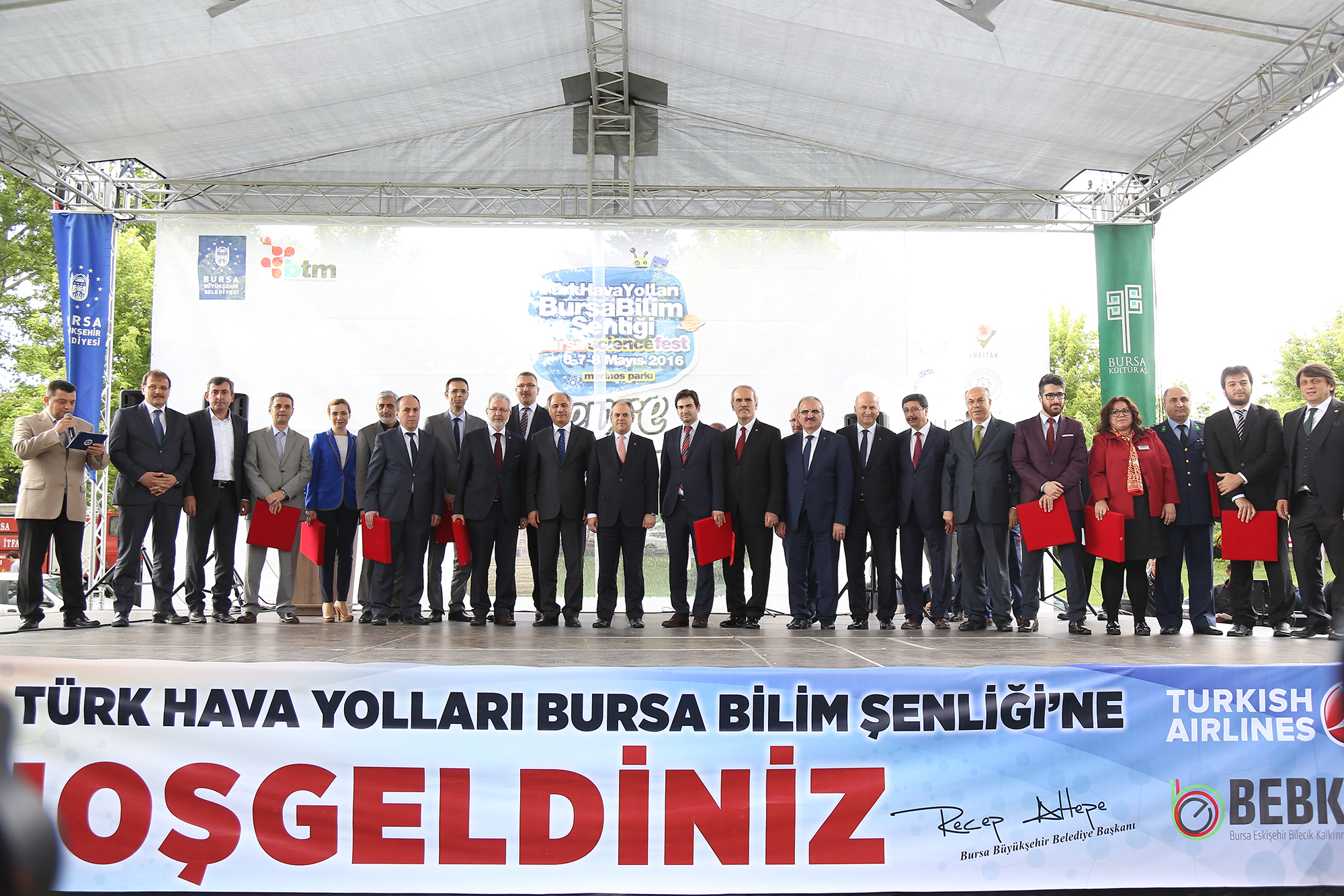 Şenliğin açılışında konuşan Büyükşehir Belediye Başkanı Recep Altepe, Bursa Bilim ve Teknoloji Merkezi kanalıyla bilim ve teknoloji alanında farkındalık oluşturmak amacıyla başlatılan organizasyonun bu yıl 5.’sini düzenlemekten büyük mutluluk duyduklarını söyledi. Geçen yıllarda gerçekleştirilen bilim şenliklerinde ortalama 150 bin genç ile vatandaşın bilimle buluştuğunu belirten Başkan Altepe, 6-7-8 Mayıs’taki organizasyonla da idealist, üretken, birikimli ve bilime meraklı gençlerin yetişmesine, bilime meraklı vatandaş kitlesinin oluşmasına katkıda bulunmak istediklerini ifade etti. Bursa Büyükşehir Belediyesi’nin, Türk Hava Yolları’nın (THY) ana sponsorluğunda BEBKA’nın desteğiyle gerçekleştirdiği şenliğin ana temasının ‘çevre ve enerji’, proje yarışması temasının da ‘bilim ve teknoloji’ olarak belirlendiğini kaydeden Başkan Altepe, “Milli Eğitim Bakanlığı aracılığı ile şenlik kapsamında Türkiye’deki okullarda proje yarışması çağrısı yaptıklarını, 67 ilden 1360 başvuru aldıklarını ve 50 projenin finale kaldığını ifade etti. 56 üniversitenin destek verdiği yarışmalarda toplam 102.000 TL’lik para ödülü vereceklerini söyleyen Başkan Altepe, “5 yaştan itibaren tüm yaş gruplarından oluşan kategorilerde dereceye girenlerin dışında finale kalan tüm projelere 500 ile 1000 TL arasında değişen mansiyon ödülleri dağıtılacak” dedi.