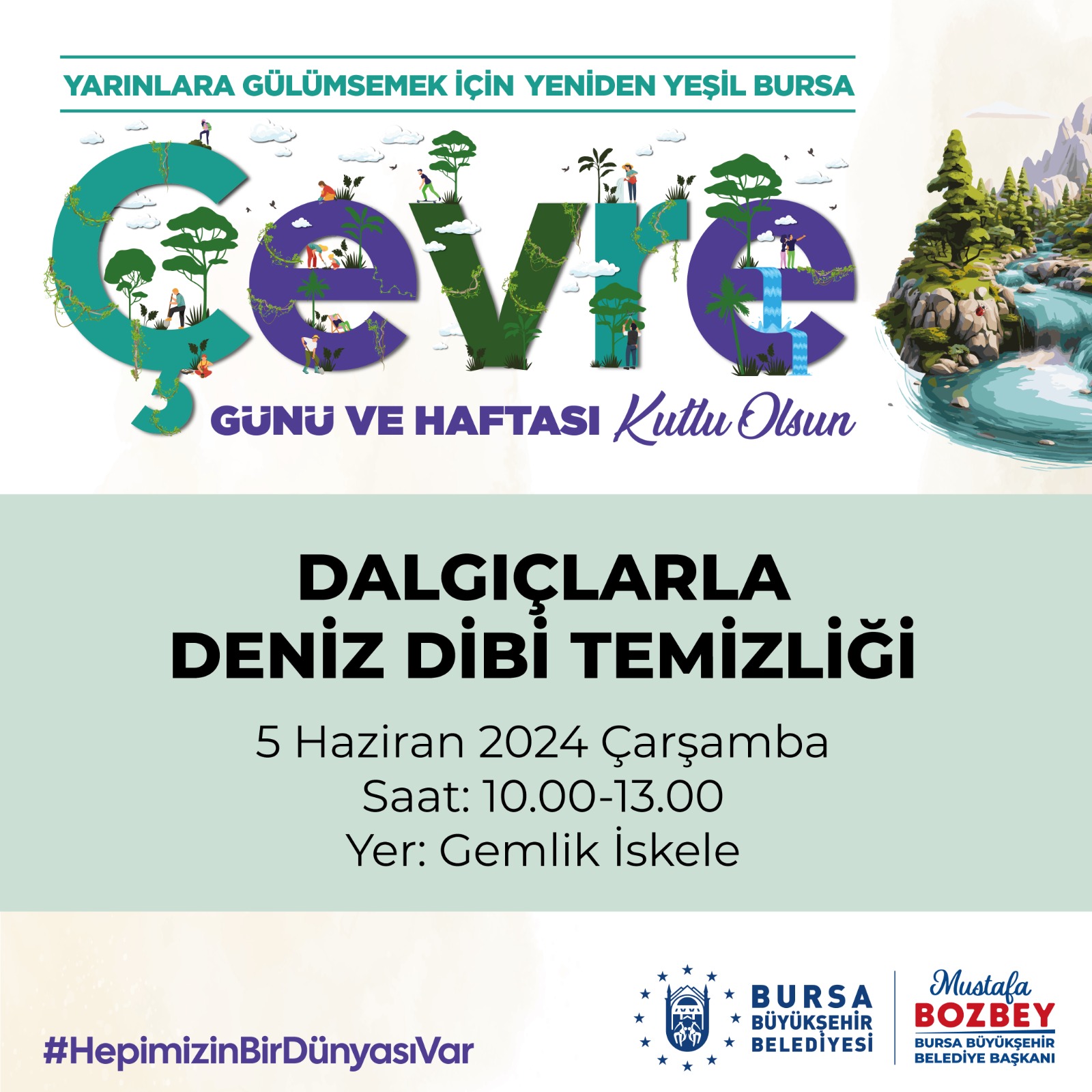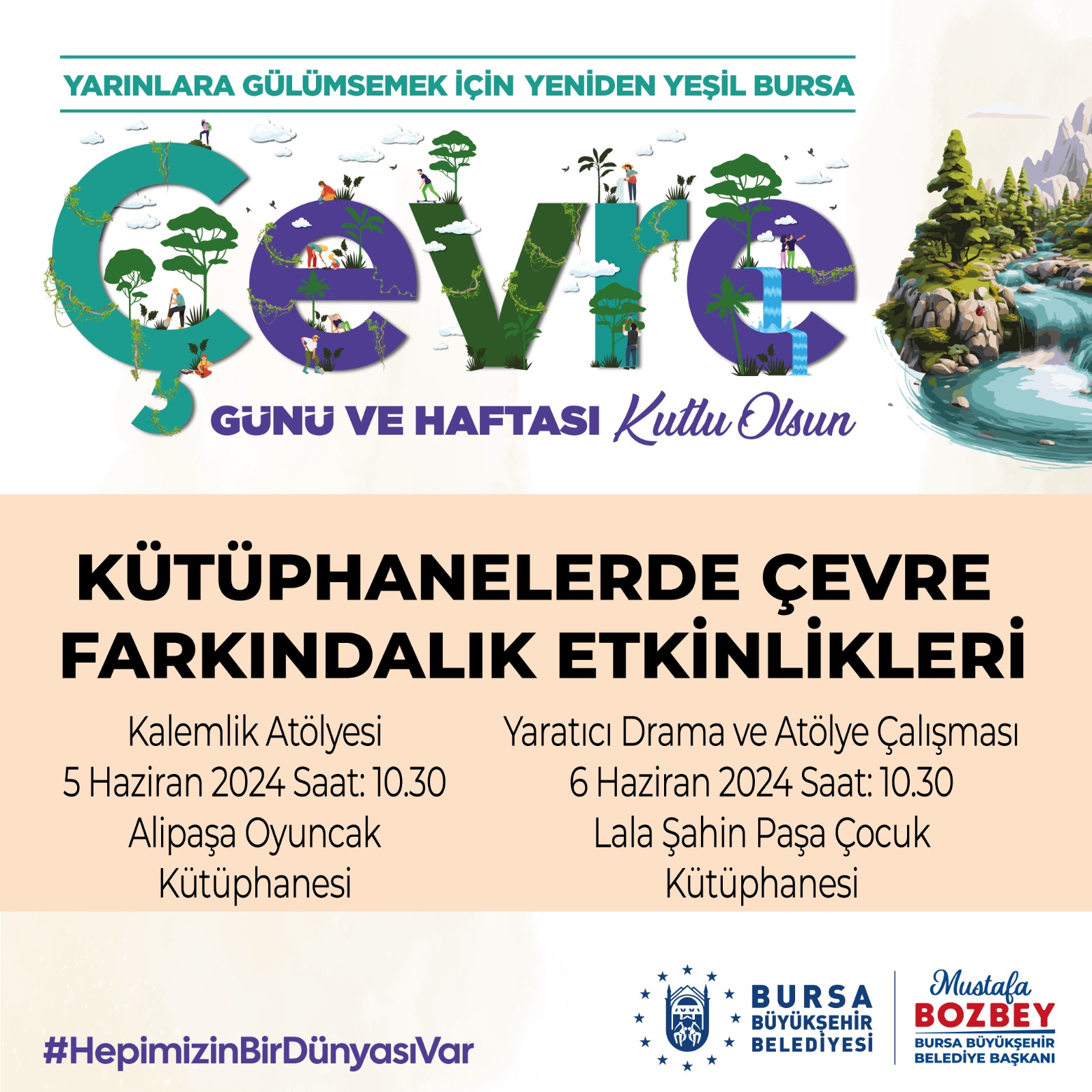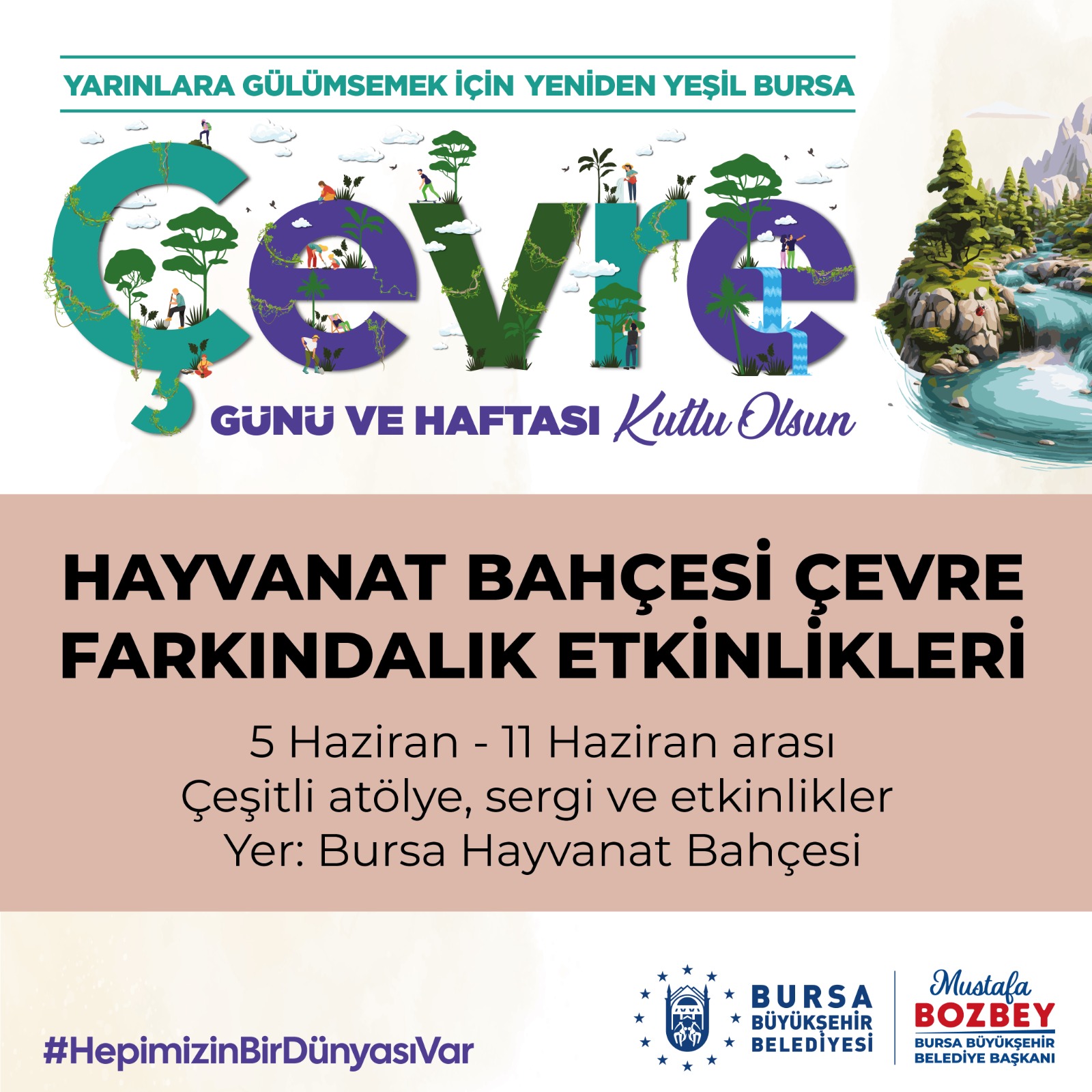 BURSA – Bursa Büyükşehir Belediyesi, 5-9 Haziran tarihleri arasındaki Dünya Çevre Günü ve Haftası kapsamında kamuoyunda çevreyle ilgili farkındalık oluşturulması amacıyla dolu dolu bir program hazırladı.