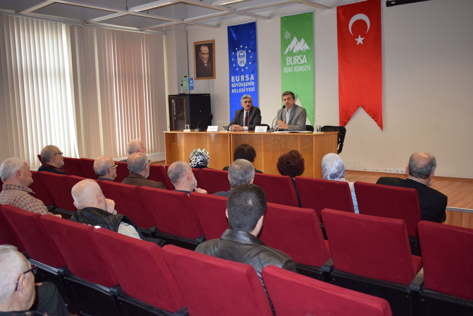 Bursa Kent Konseyi Koza Salonu’nda yapılan programda konuşan Bursa Kent Konseyi Yürütme Kurulu üyesi M. Necati Şahin, bugüne kadar farklı konuları işleyerek katılımcıları kültürel bir yolculuğa çıkarttıklarını söyledi. Son toplantıda Prof. Dr. Ali İhsan Karataş’ı ağırladıklarını ve geçmişten günümüze Bursa´da birlikte yaşama kültürü hakkında yaptığı çalışmaları paylaşacağını anlatan Şahin, çalışmalarında kendilerine destek olan Bursa Büyükşehir Belediye Başkanı Recep Altepe’ye ve Bursa Kent Konseyi Başkanı Hasan Çepni’ye teşekkür etti.