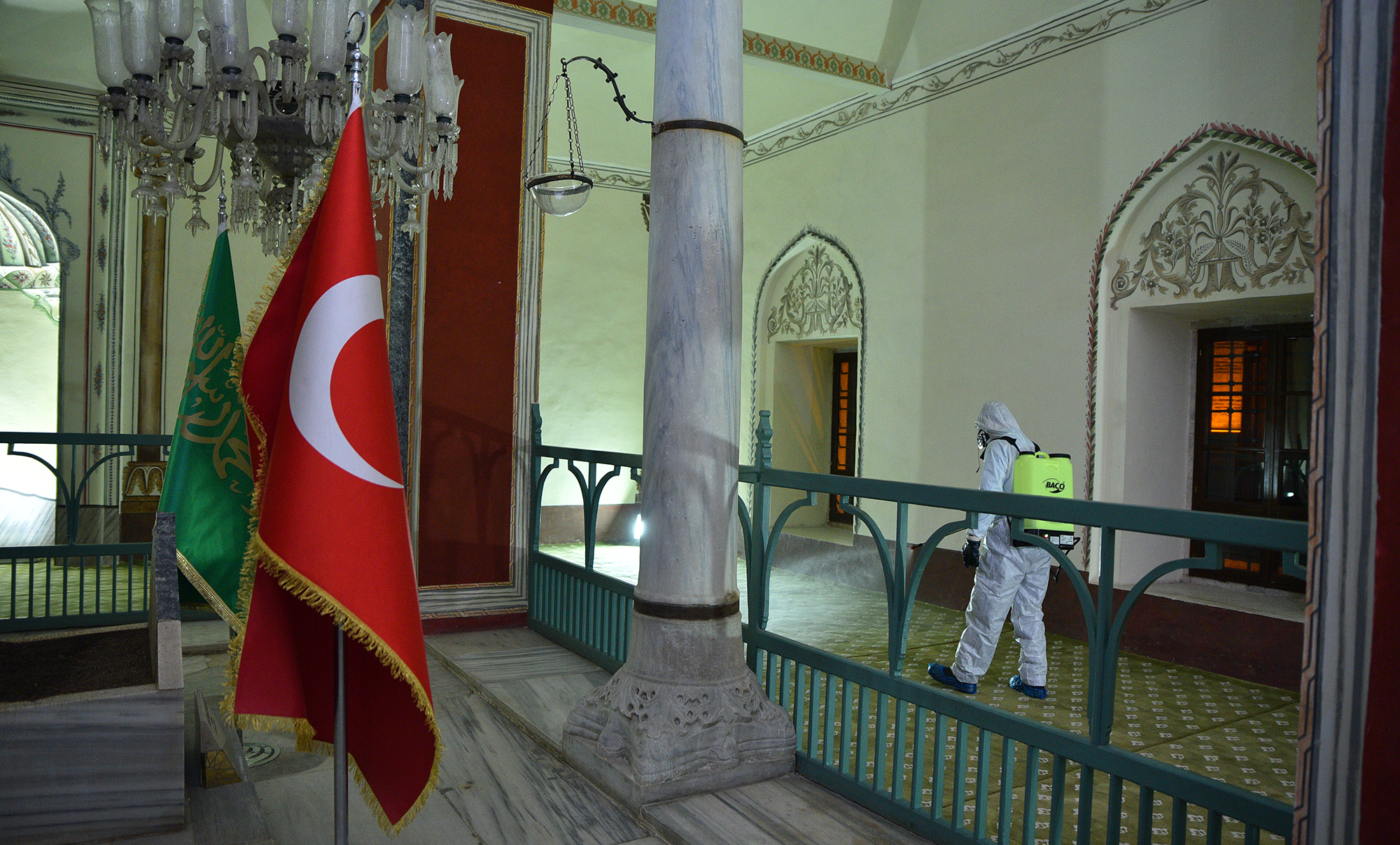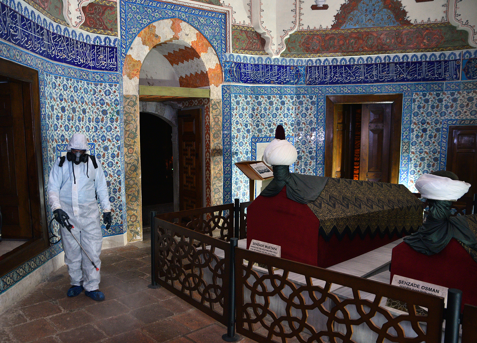 BURSA - Türkiye’de ilk corona virüsü olayının açıklanmasının ardından harekete geçen Bursa Büyükşehir Belediyesi, BursaRay vagonları, toplu taşıma araçları, T1 ve T2 tramvay hatlarının ardından cami, türbe, müzeler, halkın yoğun olarak kullandığı alt geçitler ve çarşılarda da dezenfekte çalışmasını kesintisiz sürdürüyor.